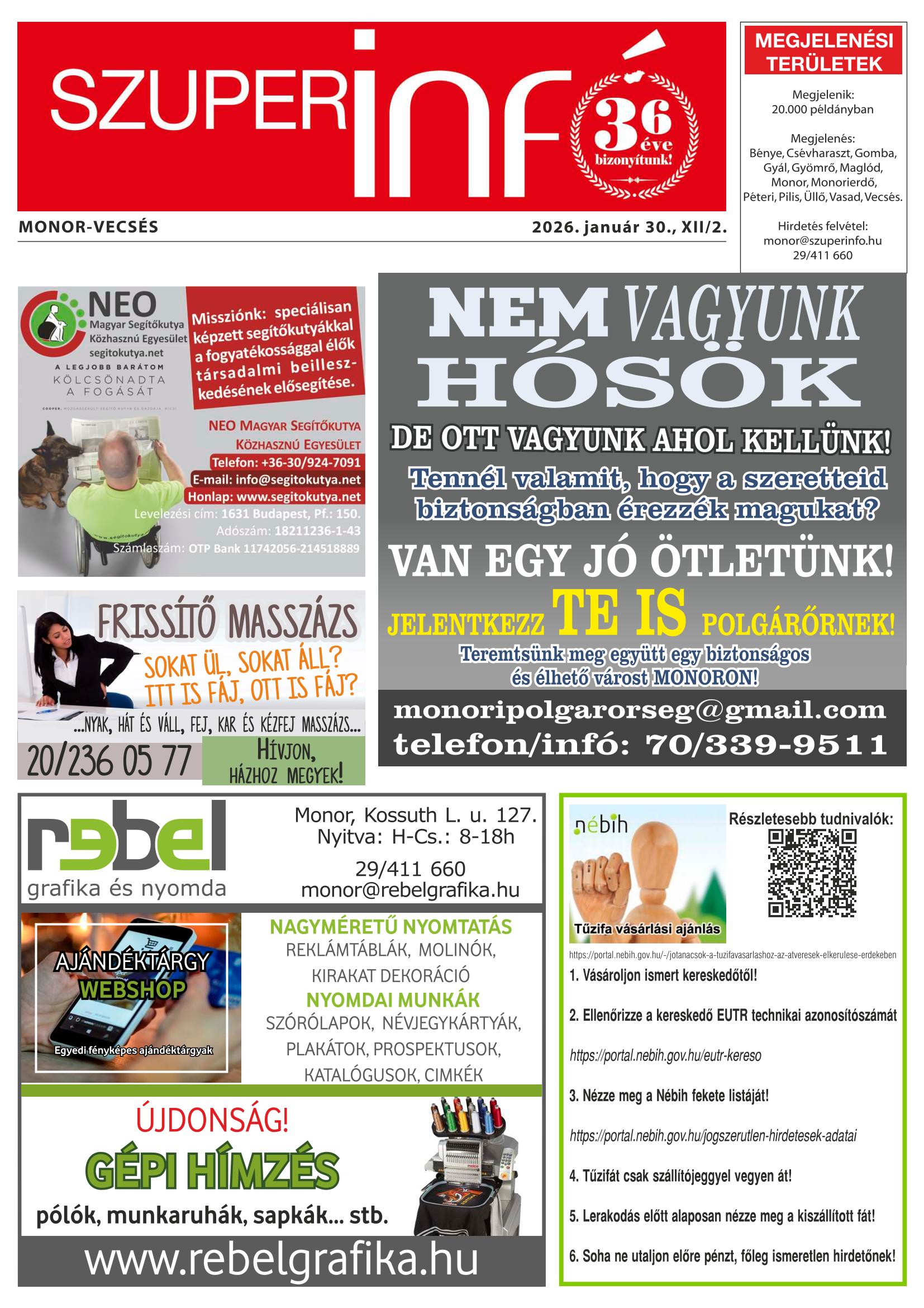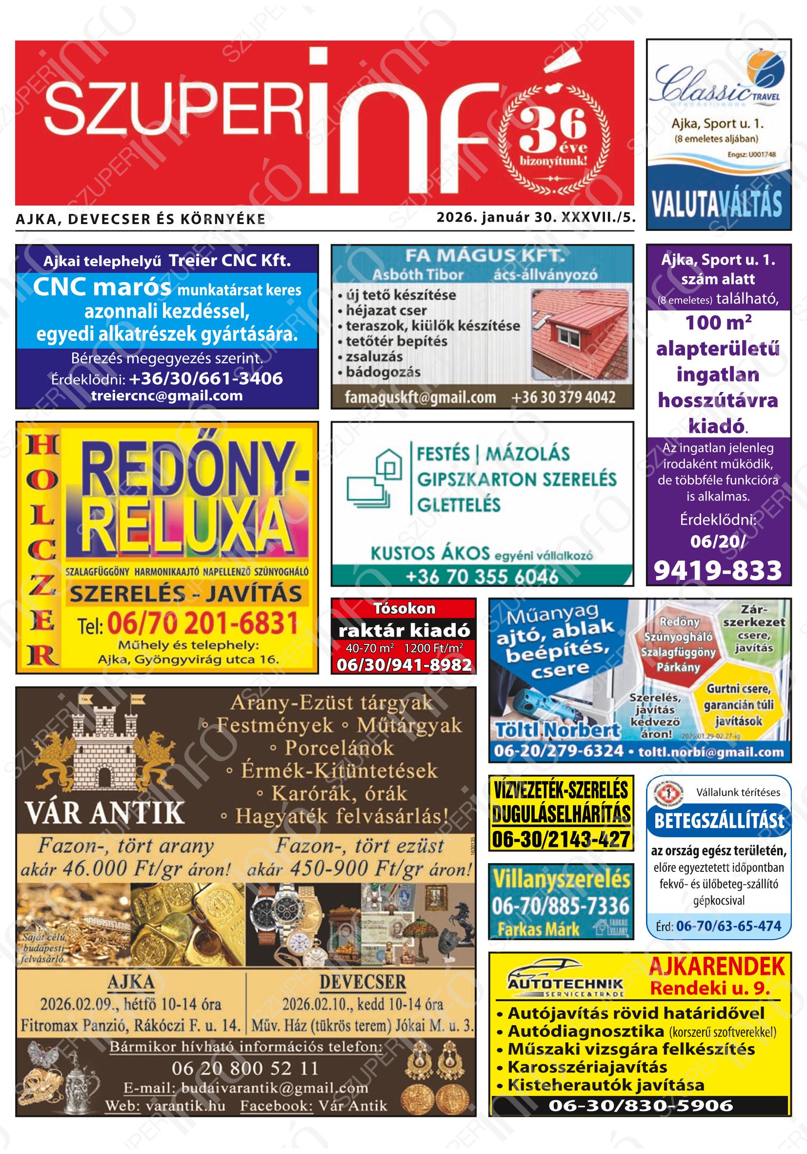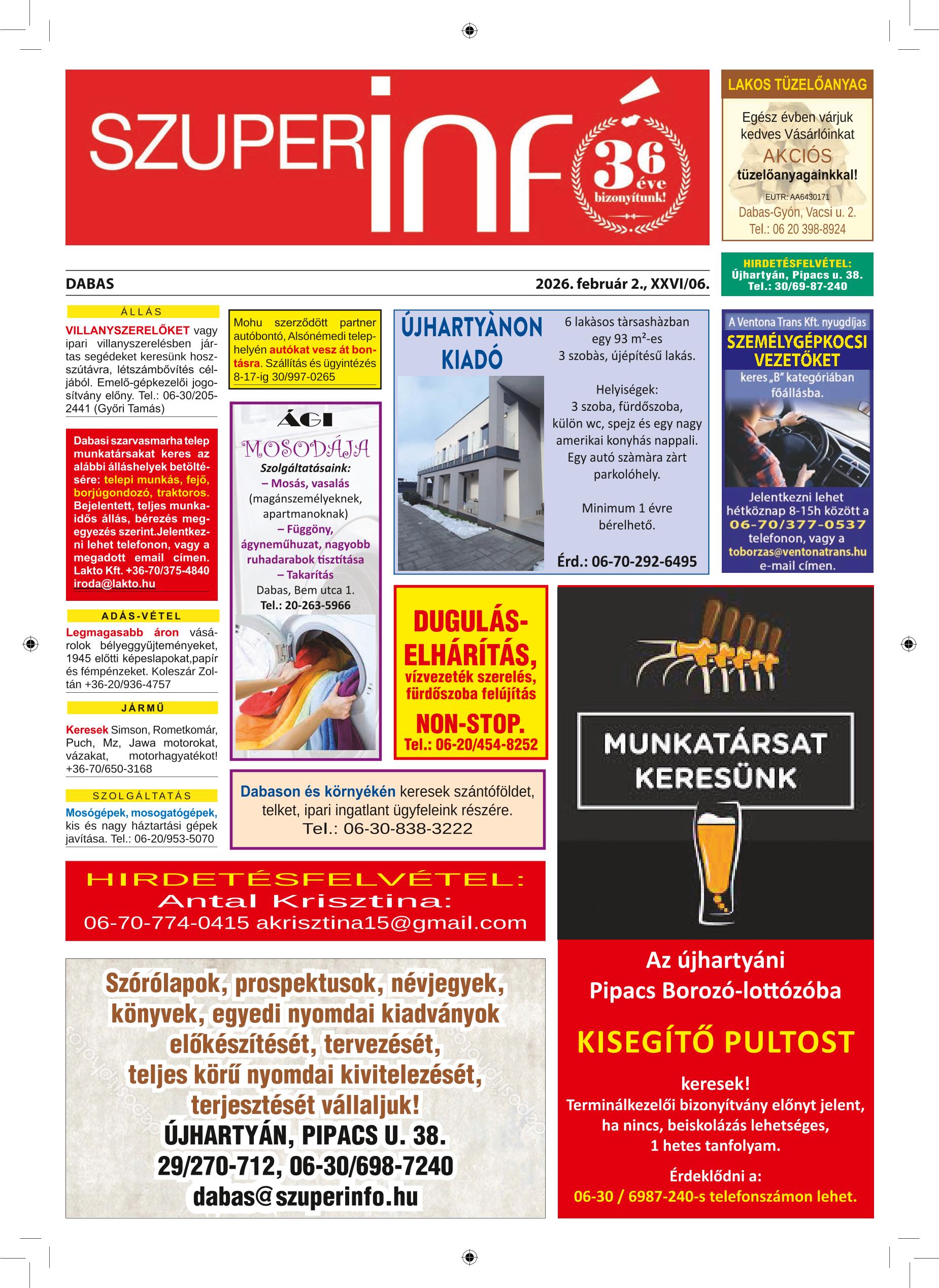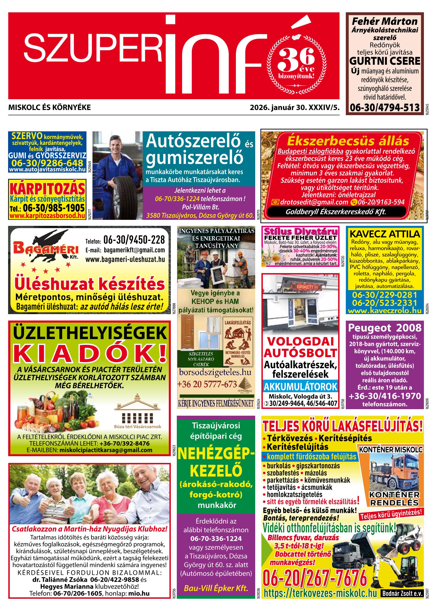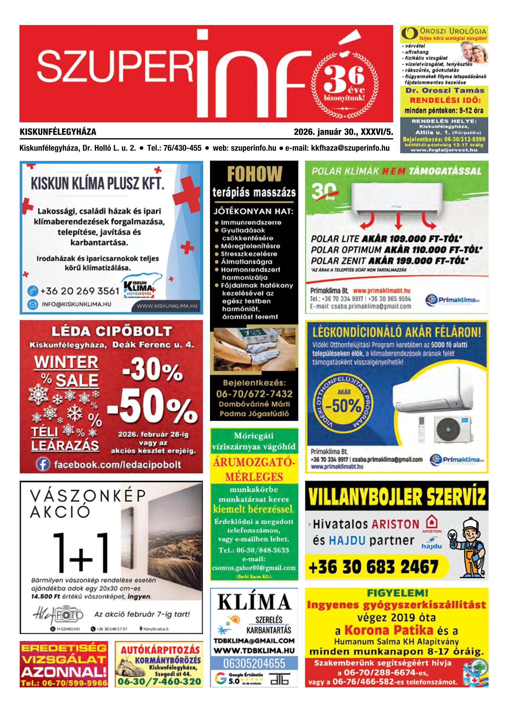 A SZUPERINFÓ online változatát már a hagyományos lap terjesztése előtt olvashatja telefonján vagy számítógépén!