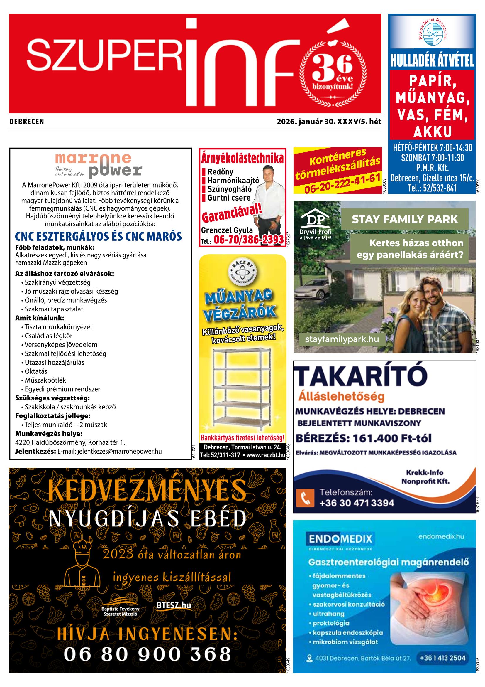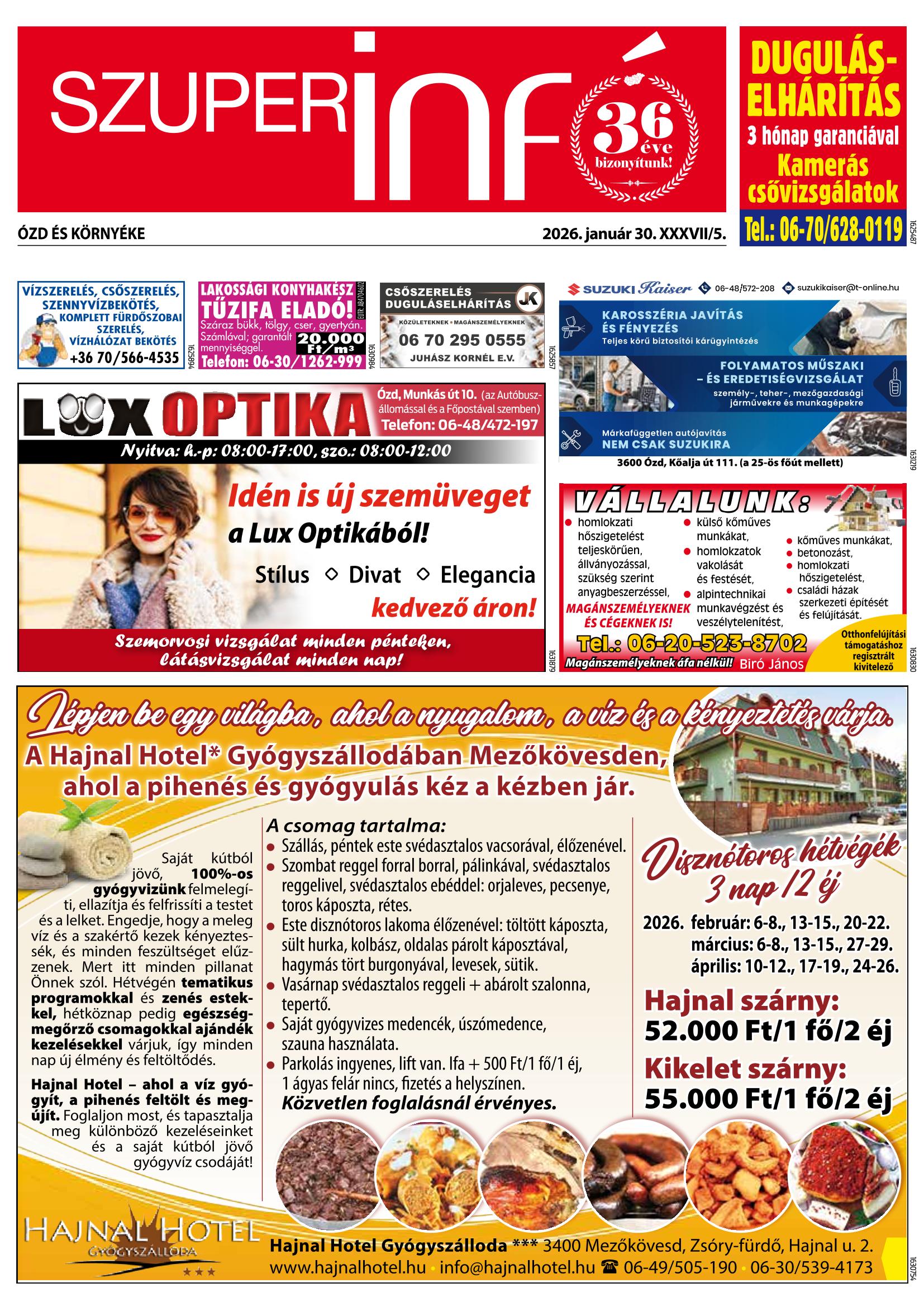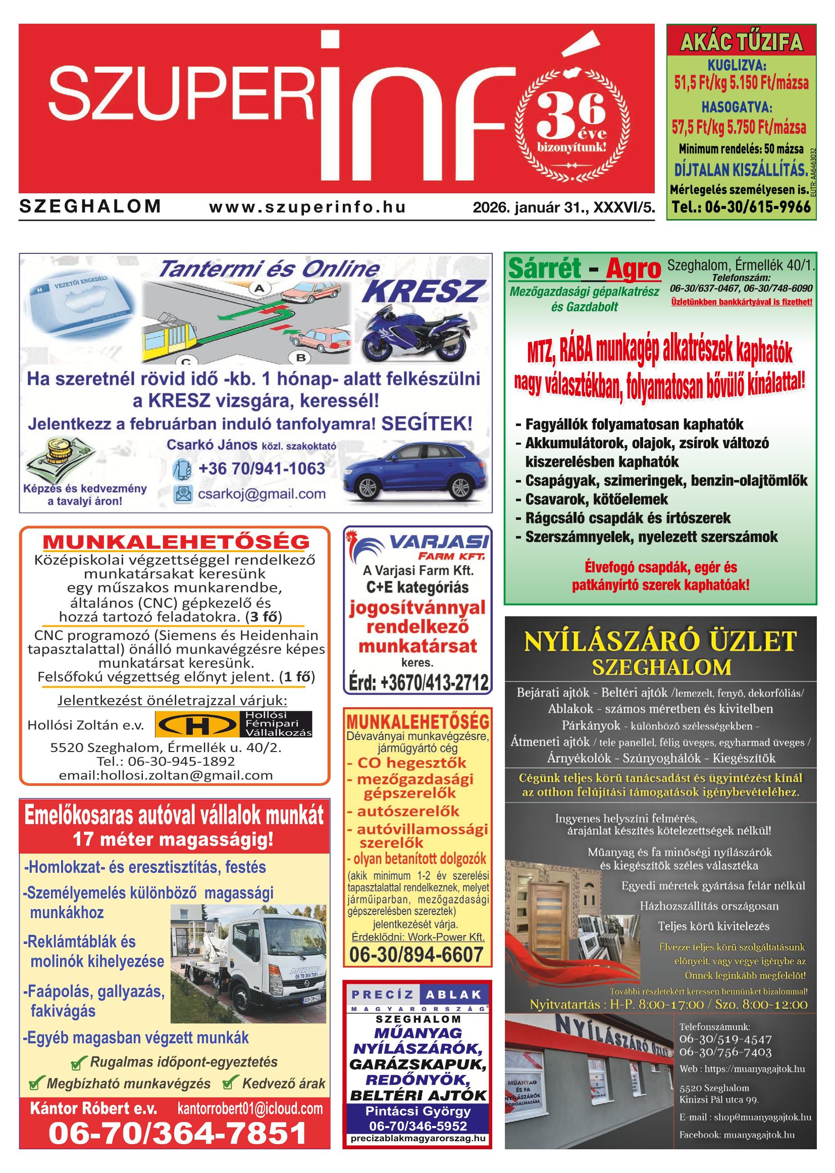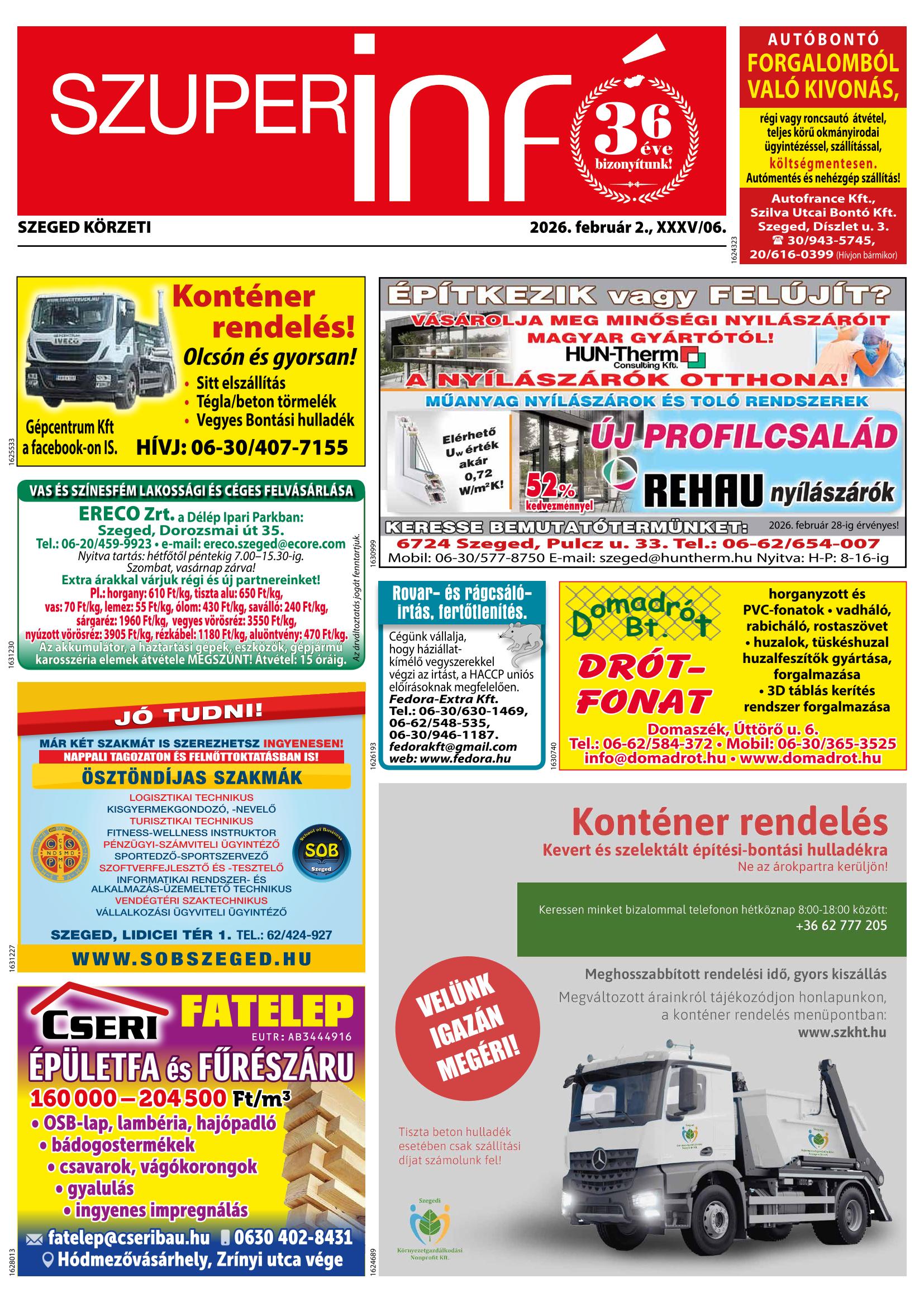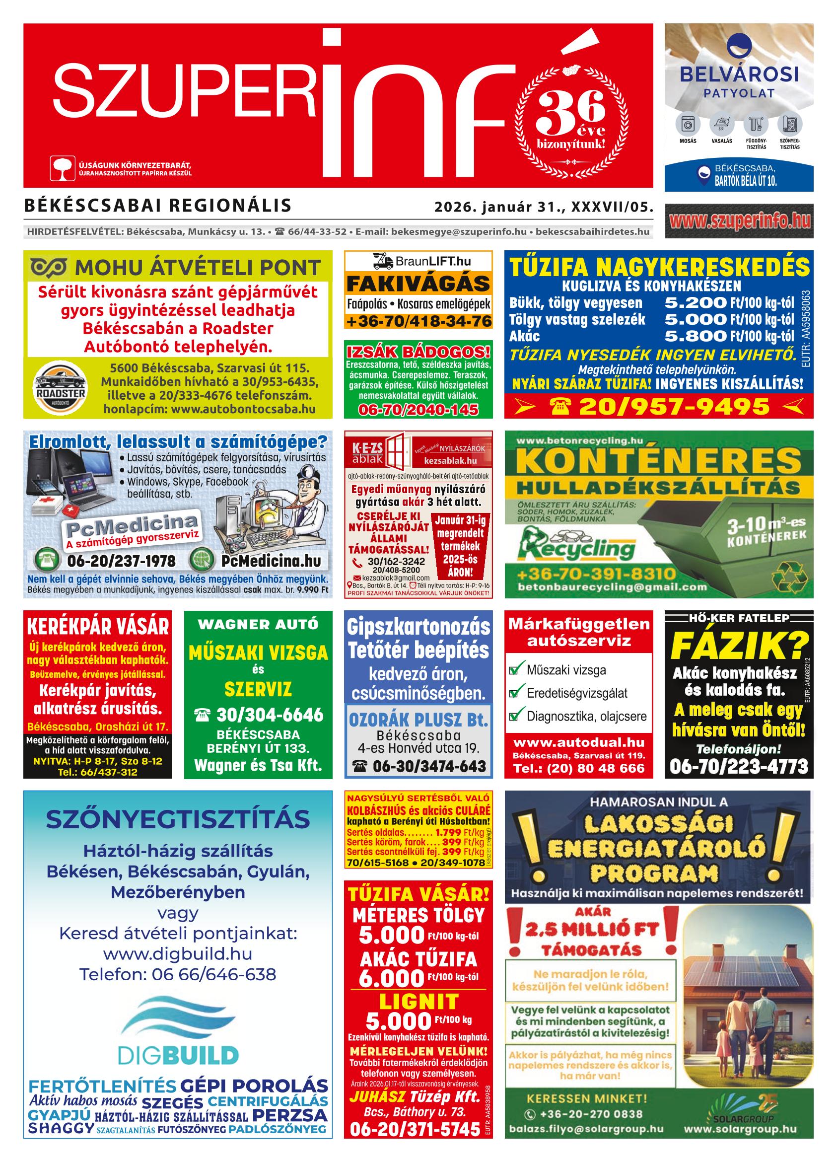 A SZUPERINFÓ online változatát már a hagyományos lap terjesztése előtt olvashatja telefonján vagy számítógépén!