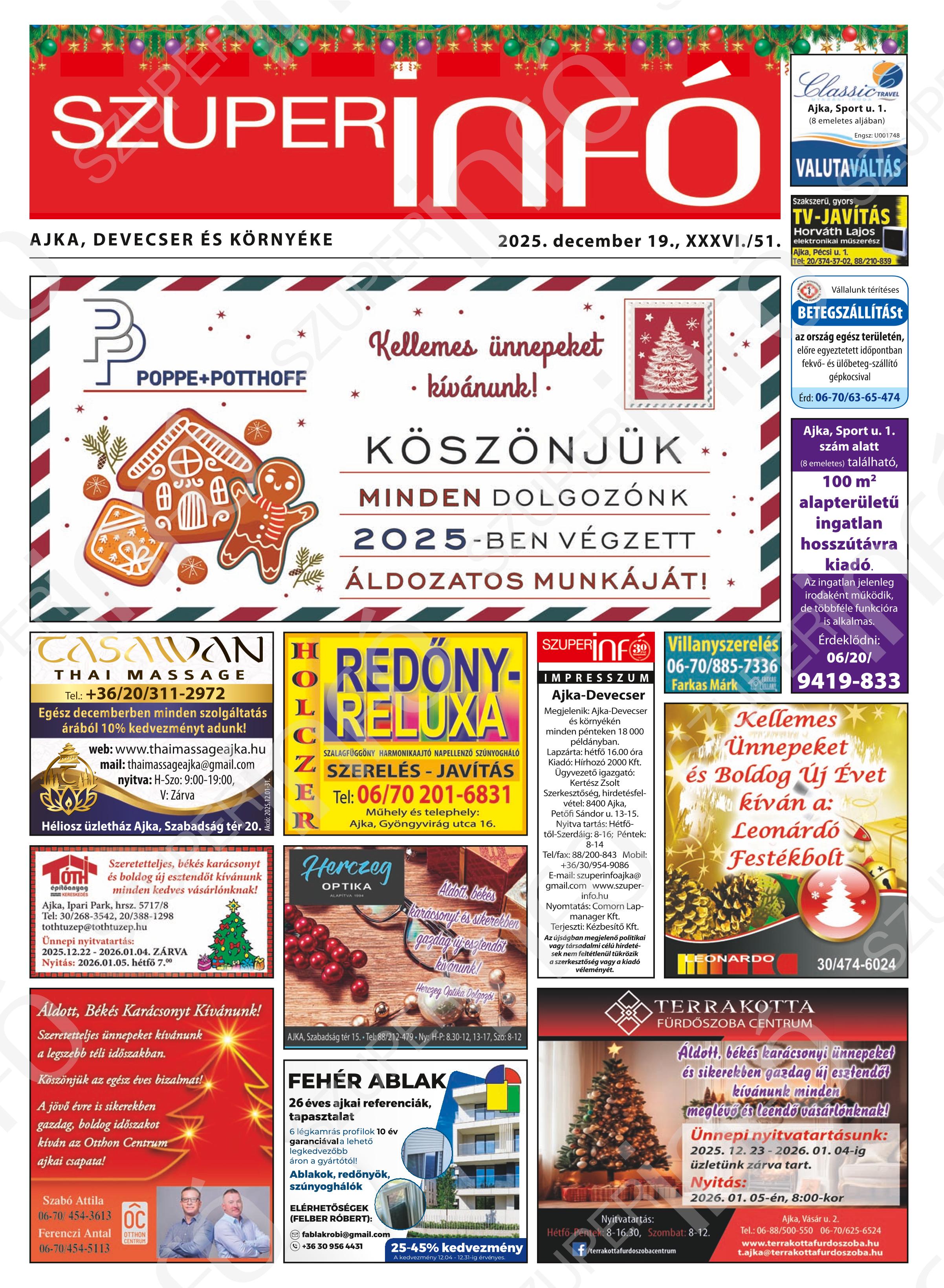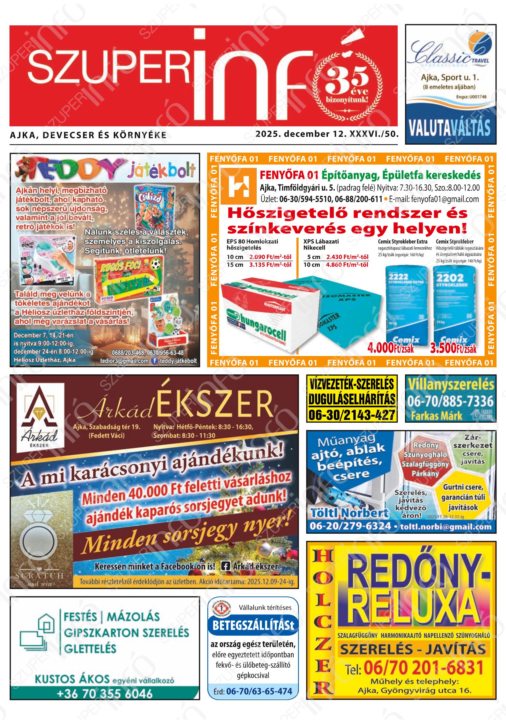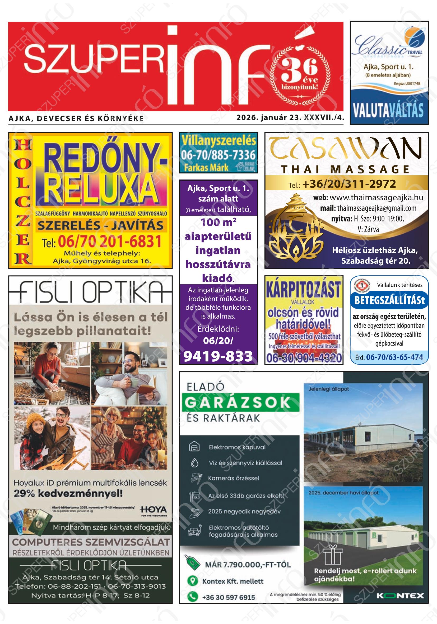 A SZUPERINFÓ online változatát már a hagyományos lap terjesztése előtt olvashatja telefonján vagy számítógépén!