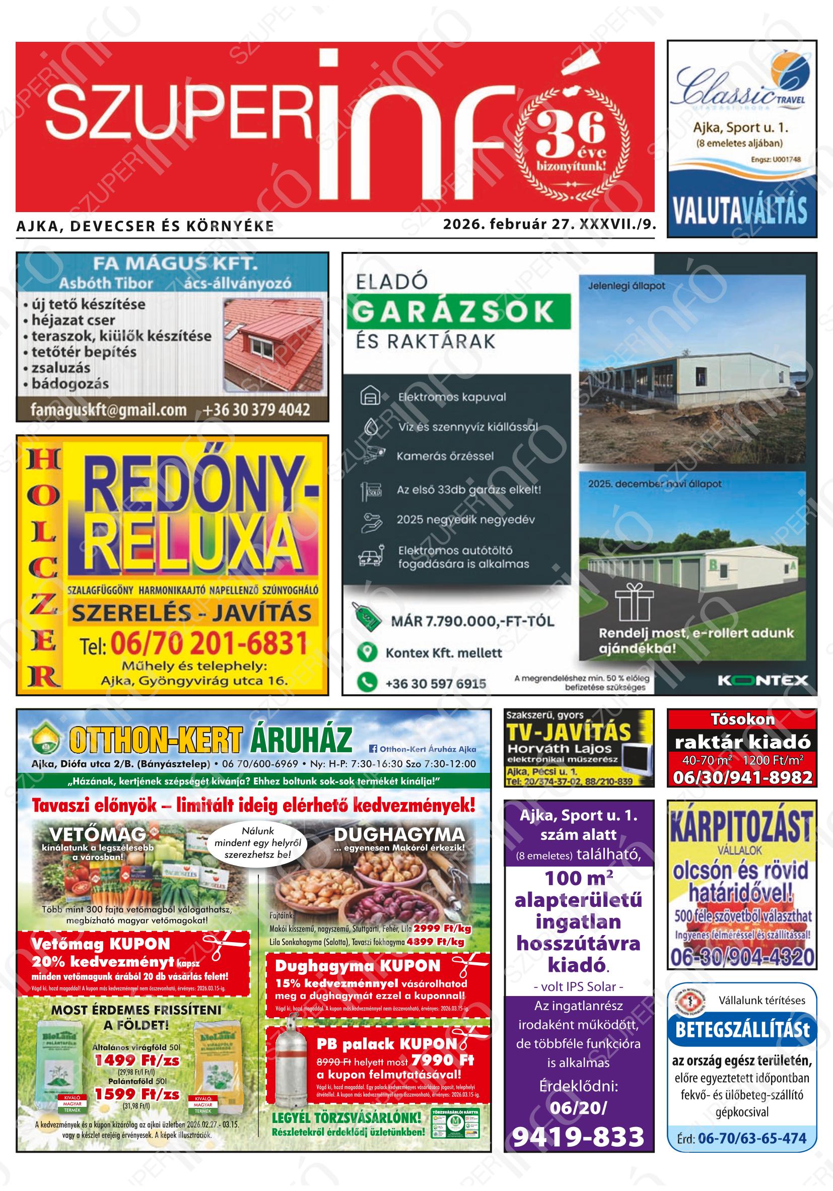 A SZUPERINFÓ online változatát már a hagyományos lap terjesztése előtt olvashatja telefonján vagy számítógépén!