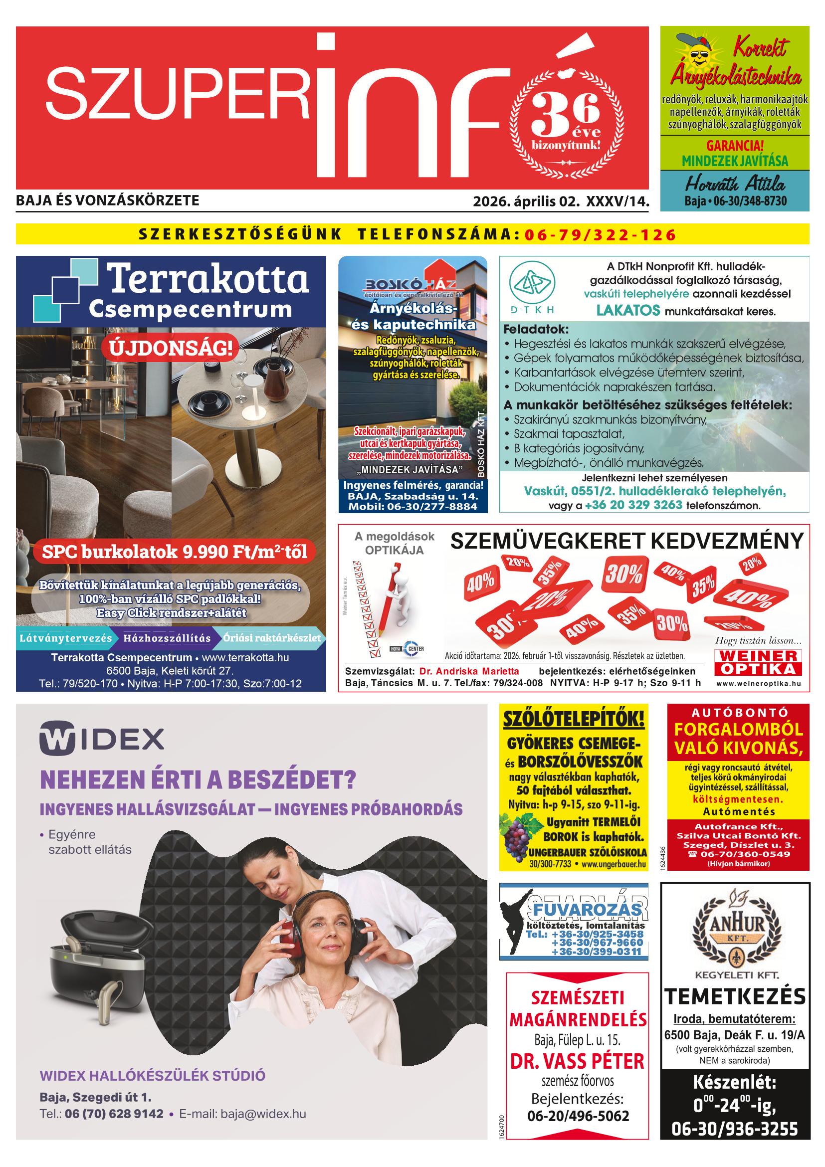 A SZUPERINFÓ online változatát már a hagyományos lap terjesztése előtt olvashatja telefonján vagy számítógépén!