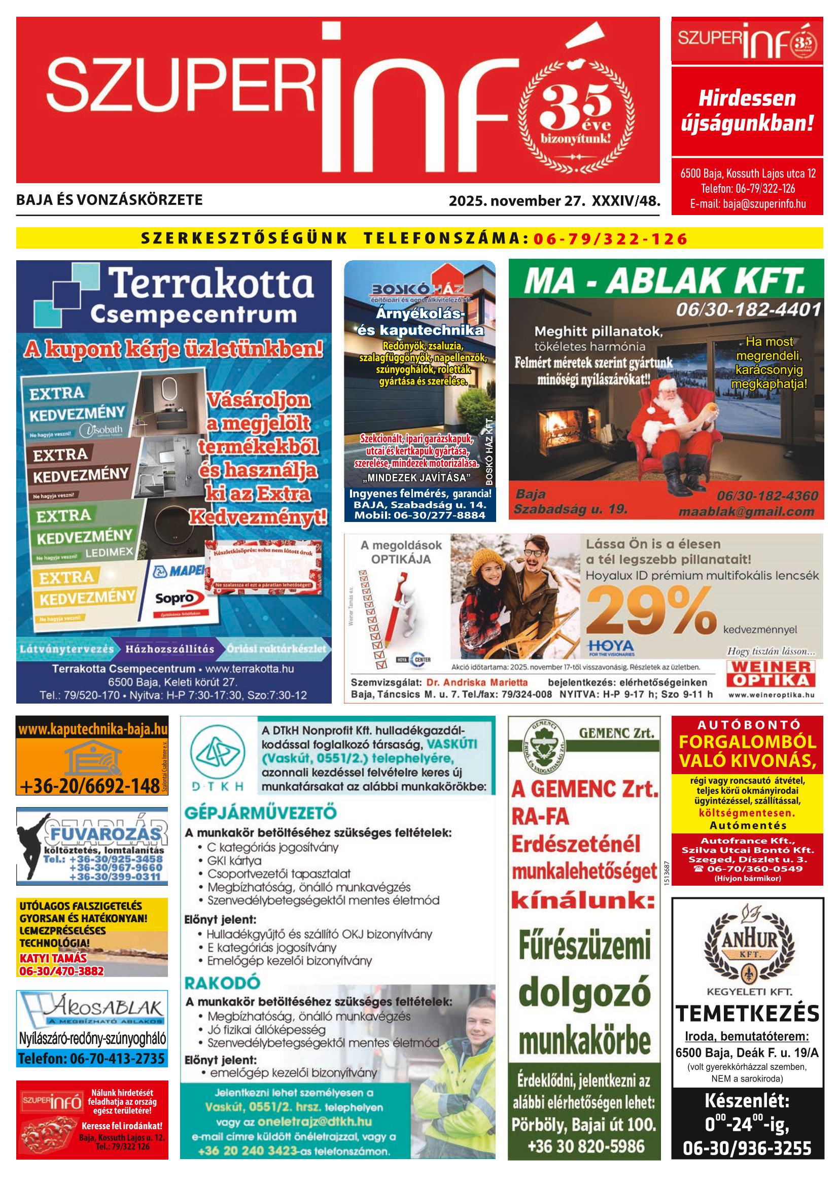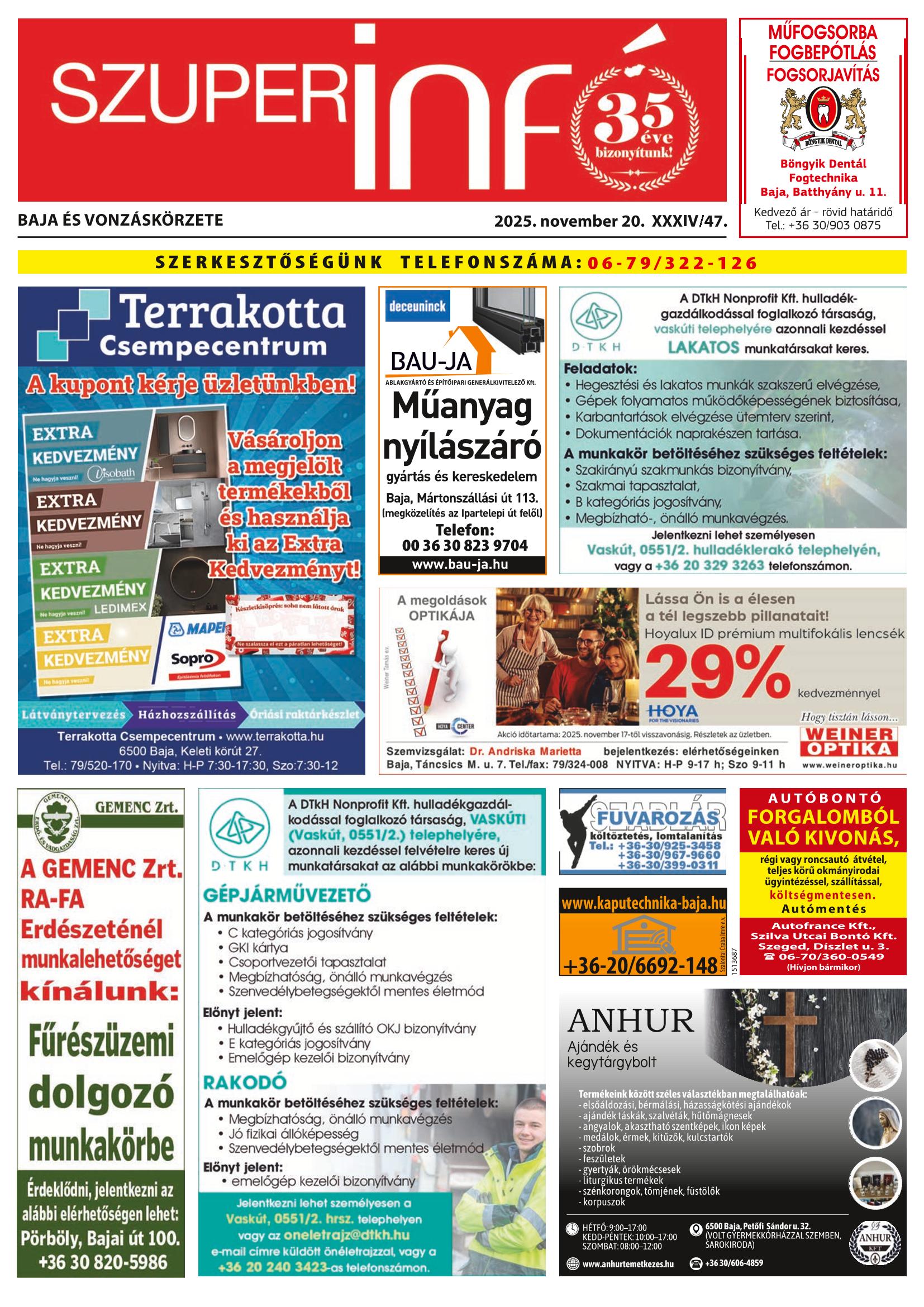 Baja és Vonzáskörzete Szuperinfó szerkesztőség elérhetőségei