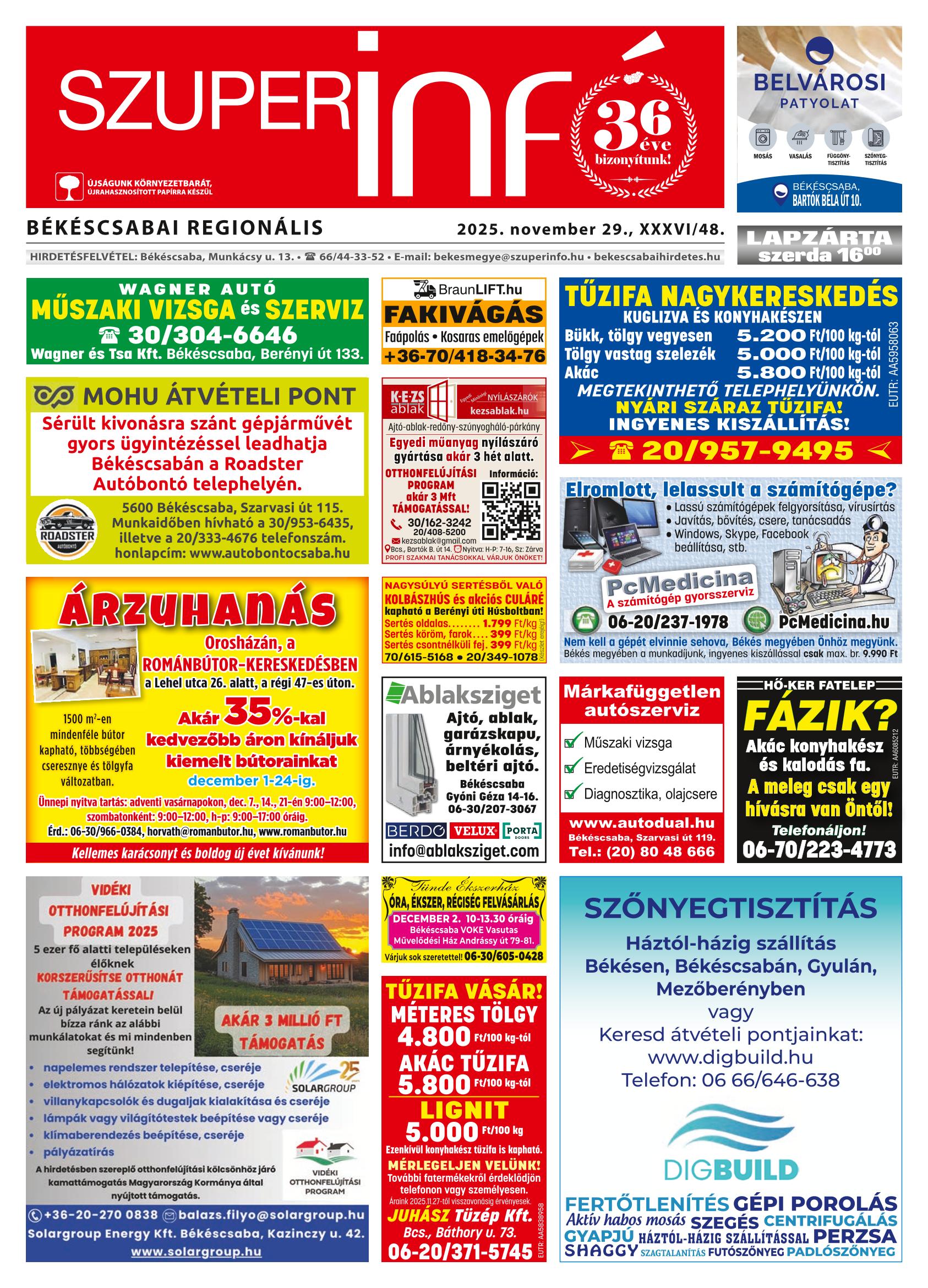 A SZUPERINFÓ online változatát már a hagyományos lap terjesztése előtt olvashatja telefonján vagy számítógépén!