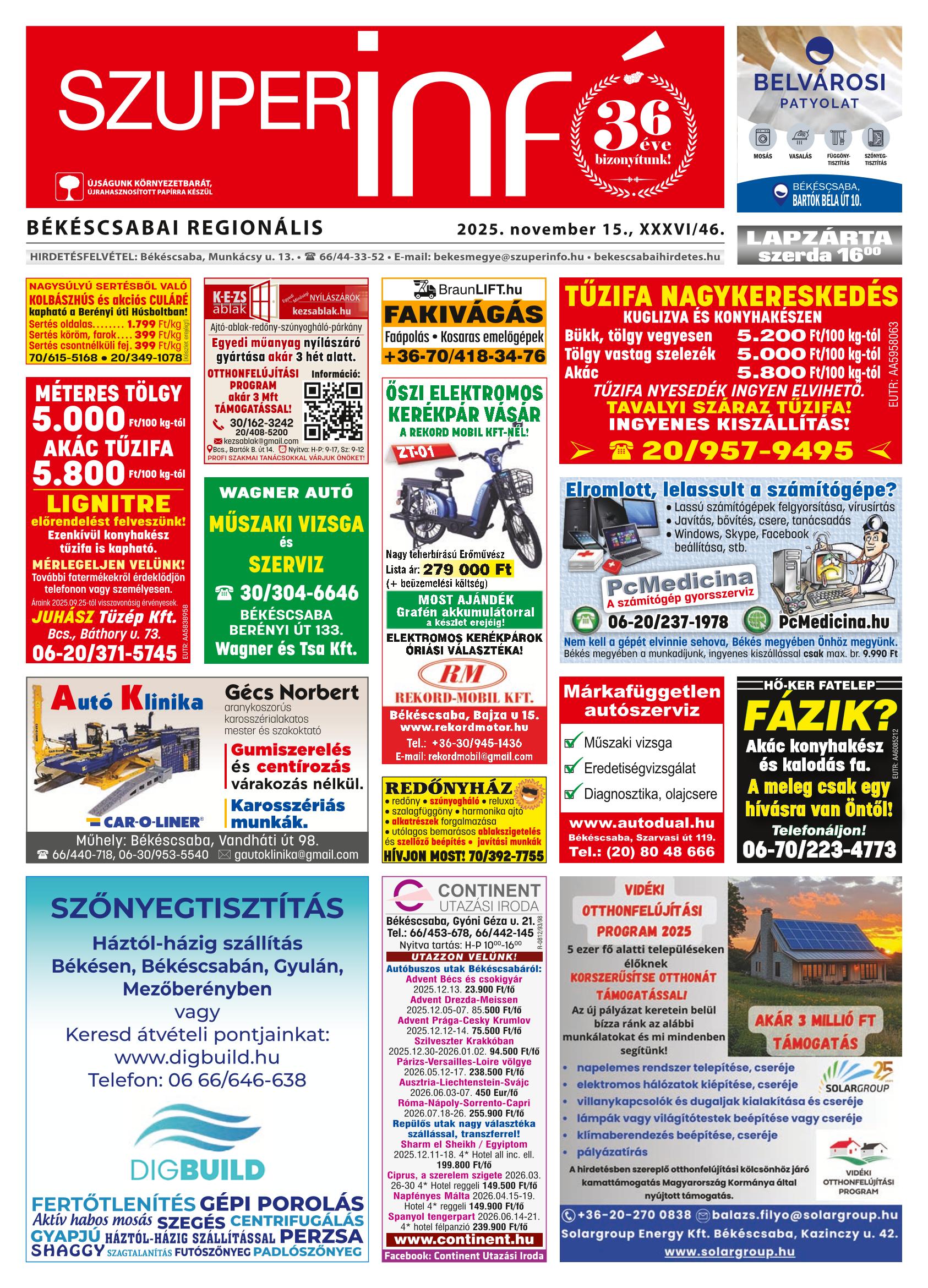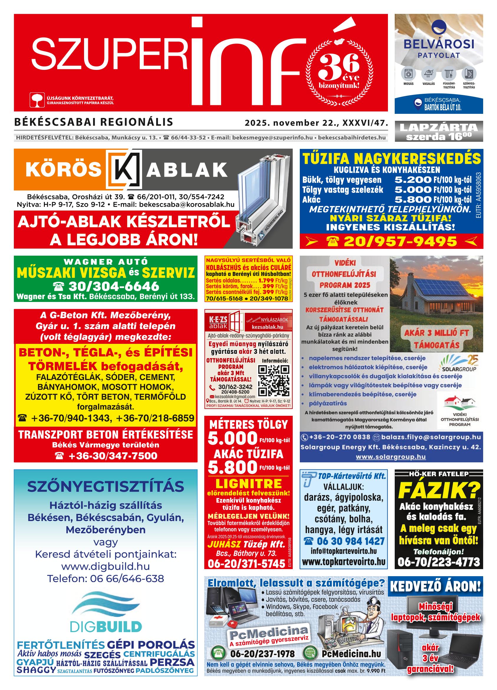 Békéscsaba Regionális Szuperinfó szerkesztőség elérhetőségei