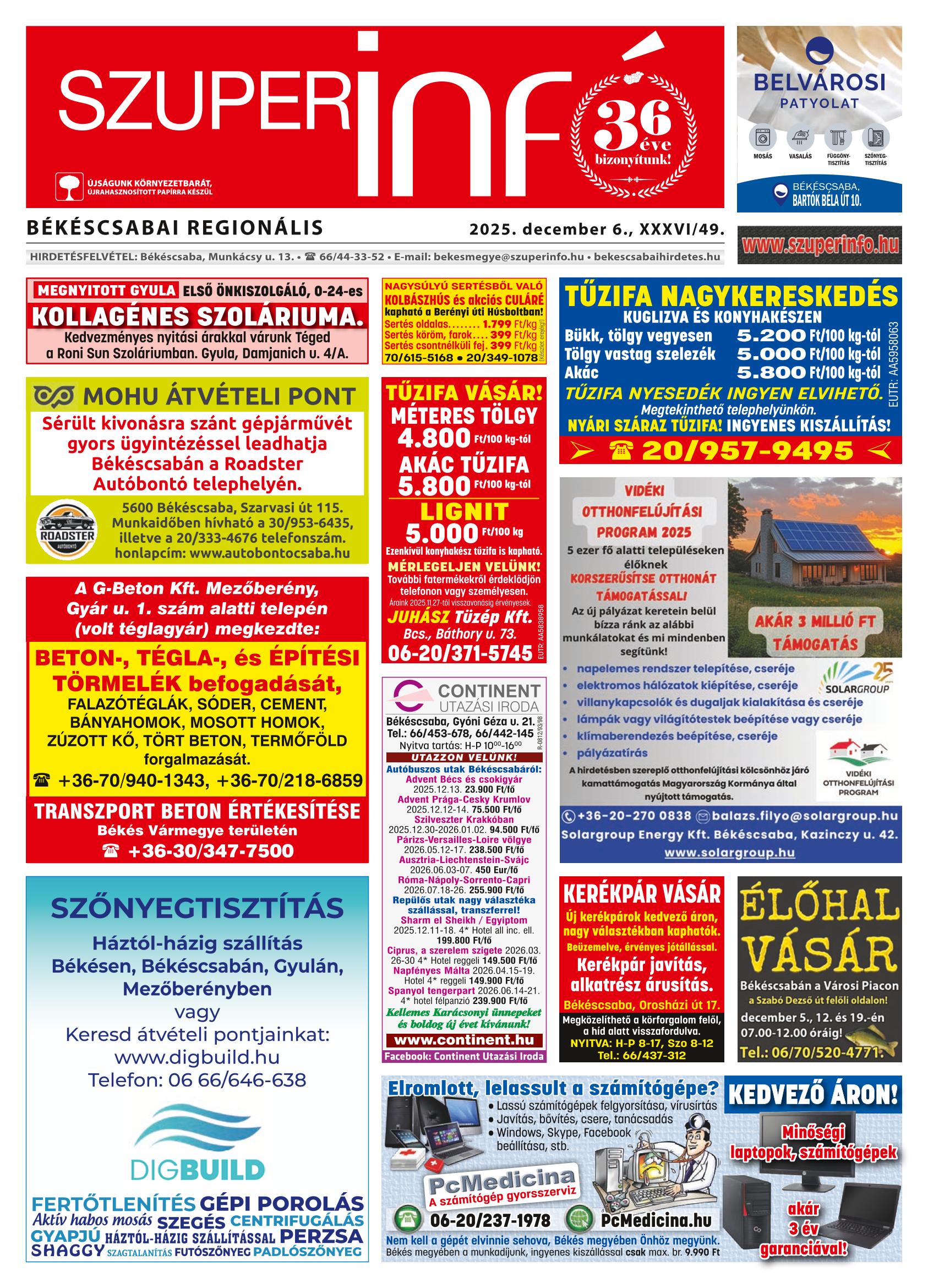 A SZUPERINFÓ online változatát már a hagyományos lap terjesztése előtt olvashatja telefonján vagy számítógépén!