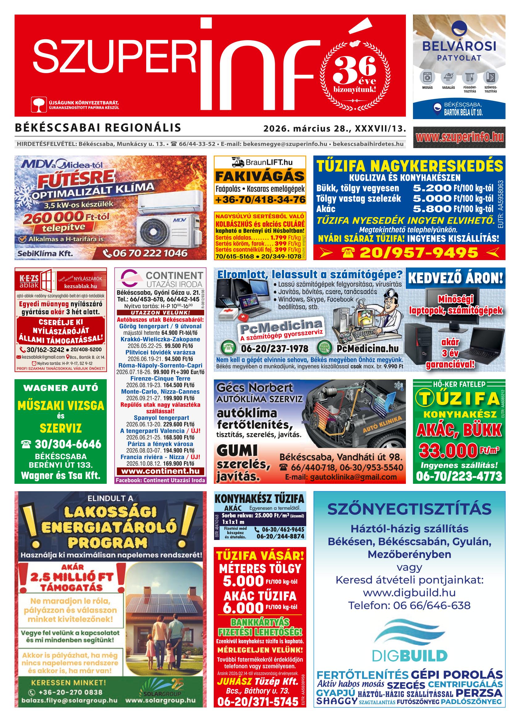 A SZUPERINFÓ online változatát már a hagyományos lap terjesztése előtt olvashatja telefonján vagy számítógépén!