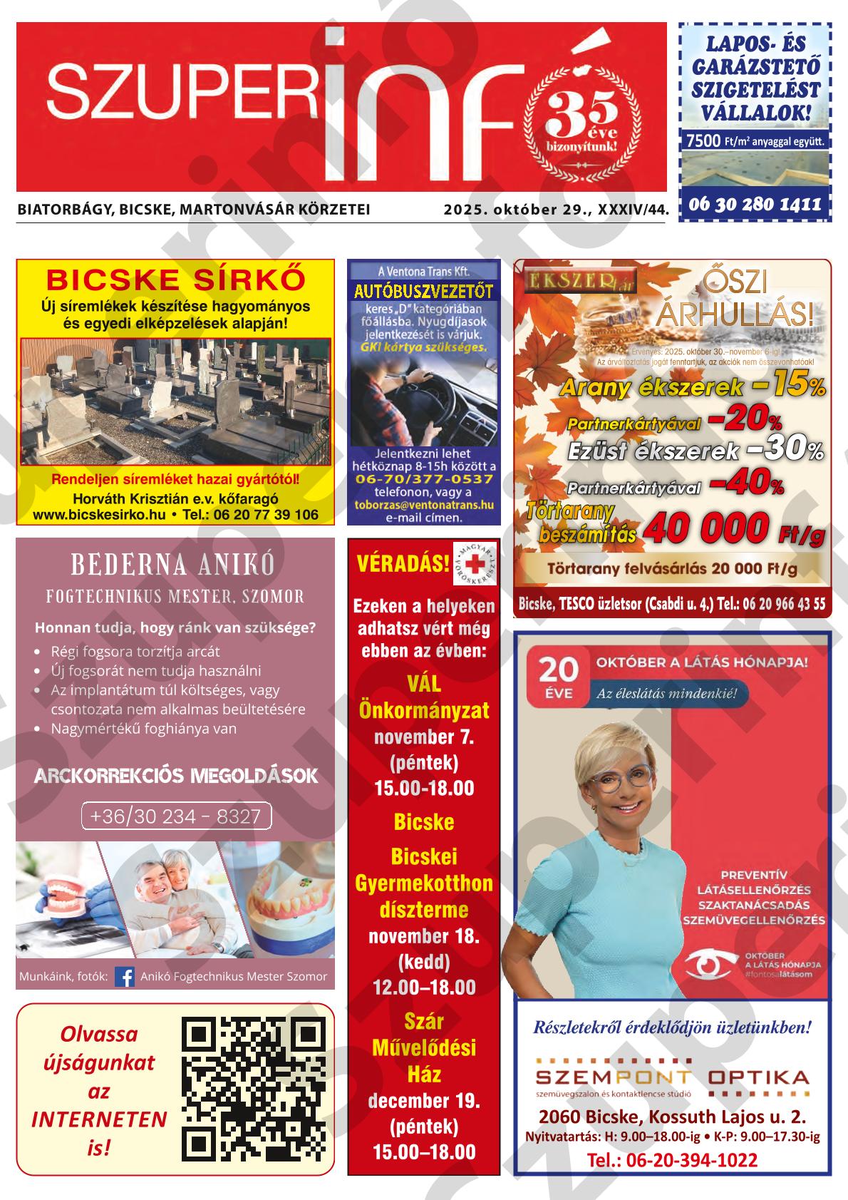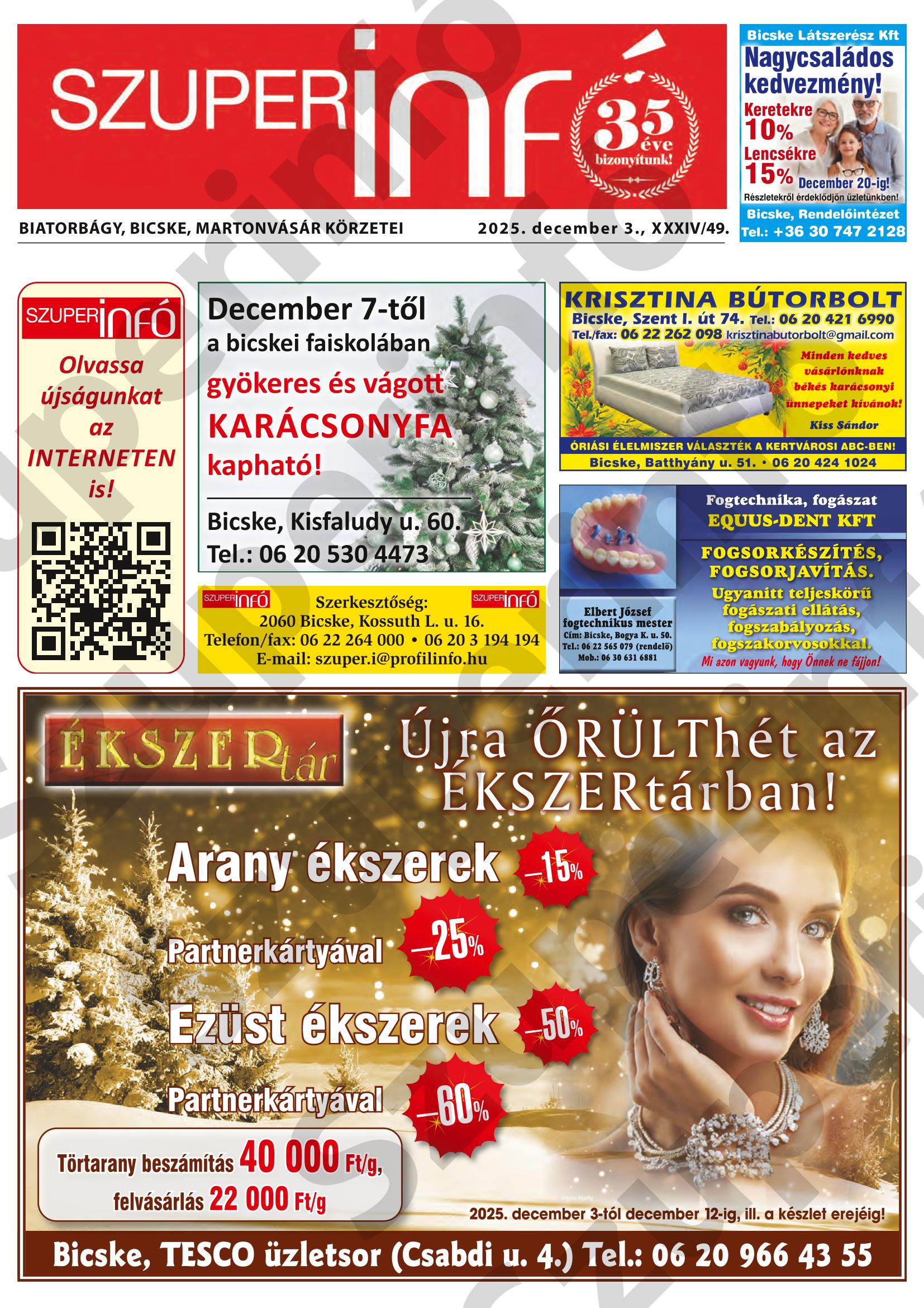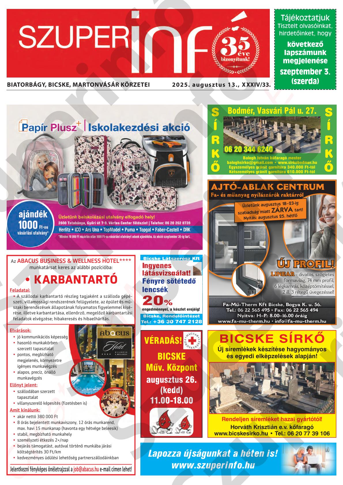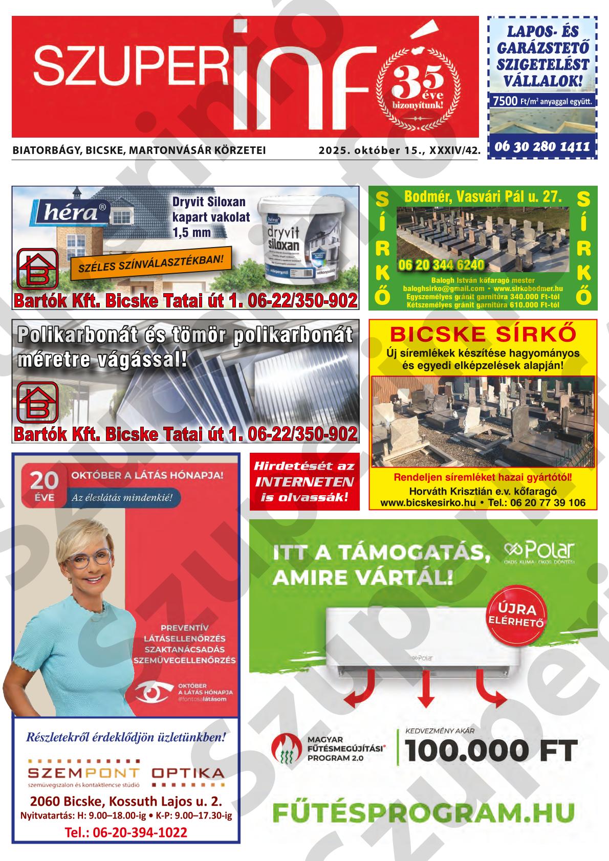 A SZUPERINFÓ online változatát már a hagyományos lap terjesztése előtt olvashatja telefonján vagy számítógépén!
