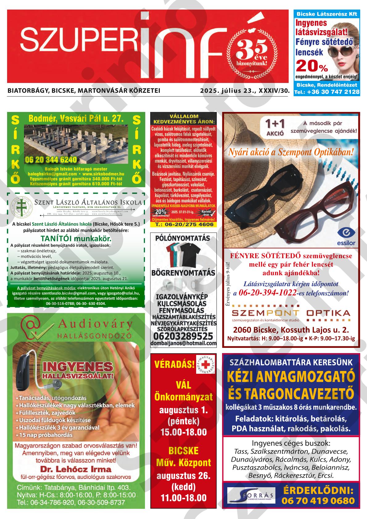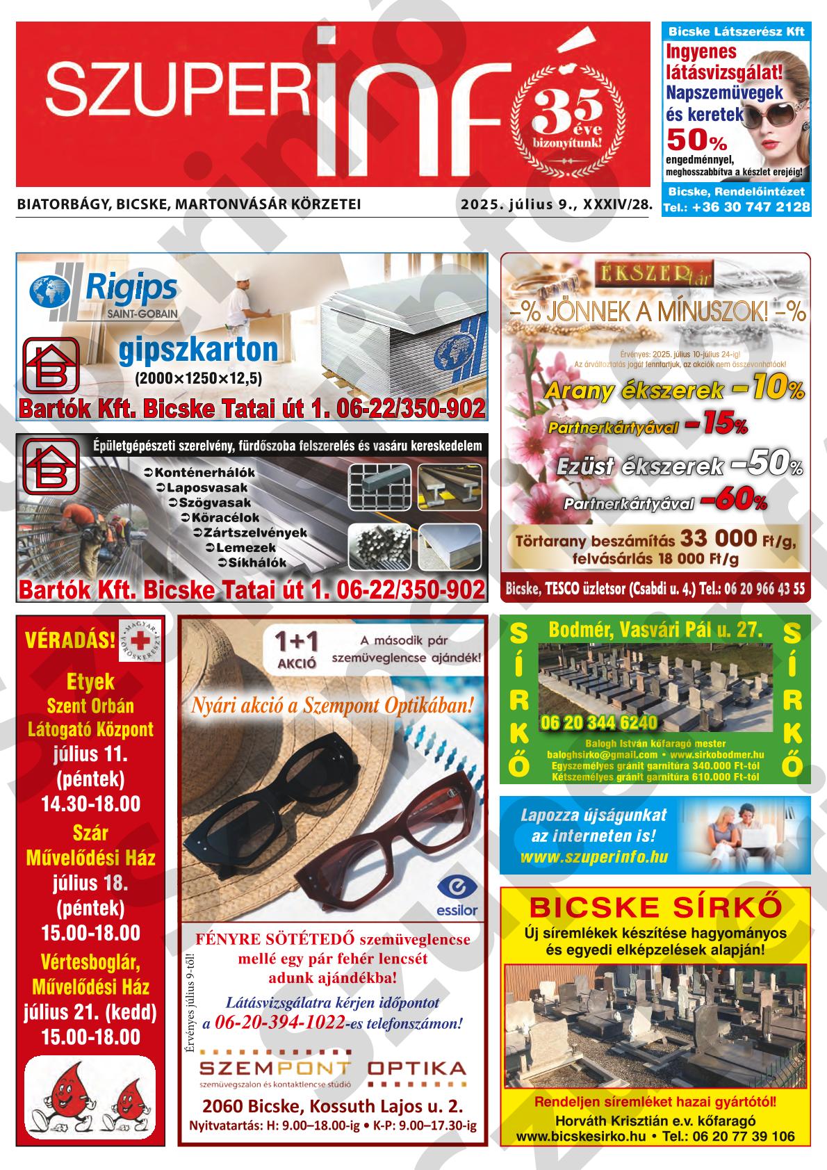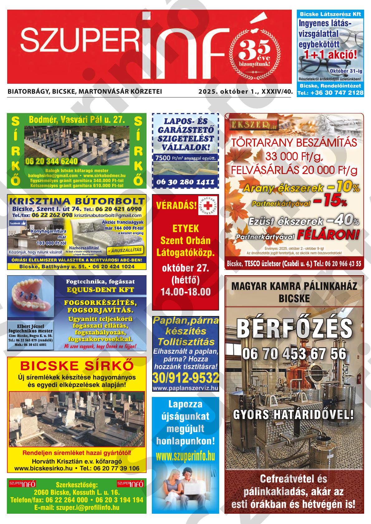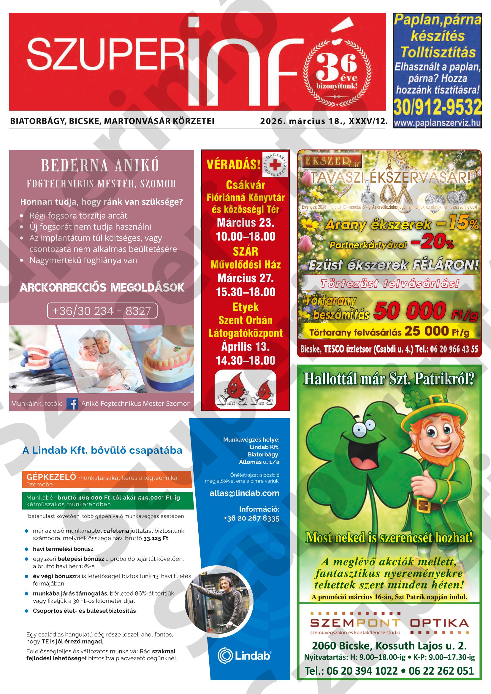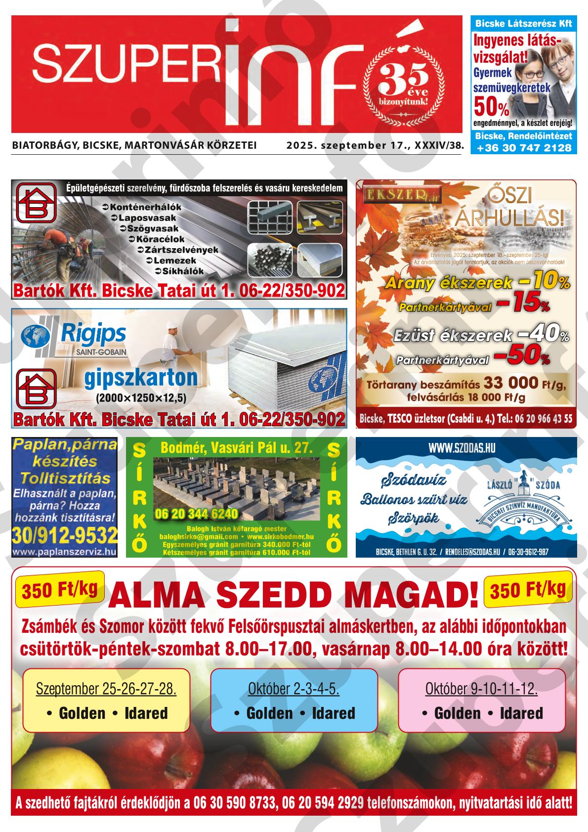 A SZUPERINFÓ online változatát már a hagyományos lap terjesztése előtt olvashatja telefonján vagy számítógépén!