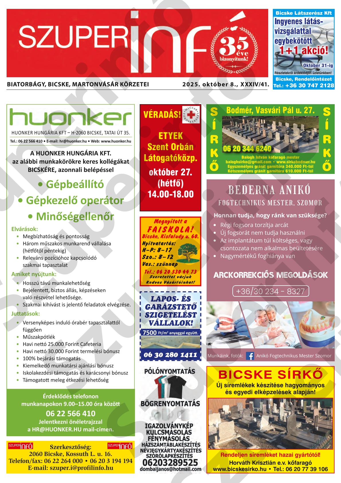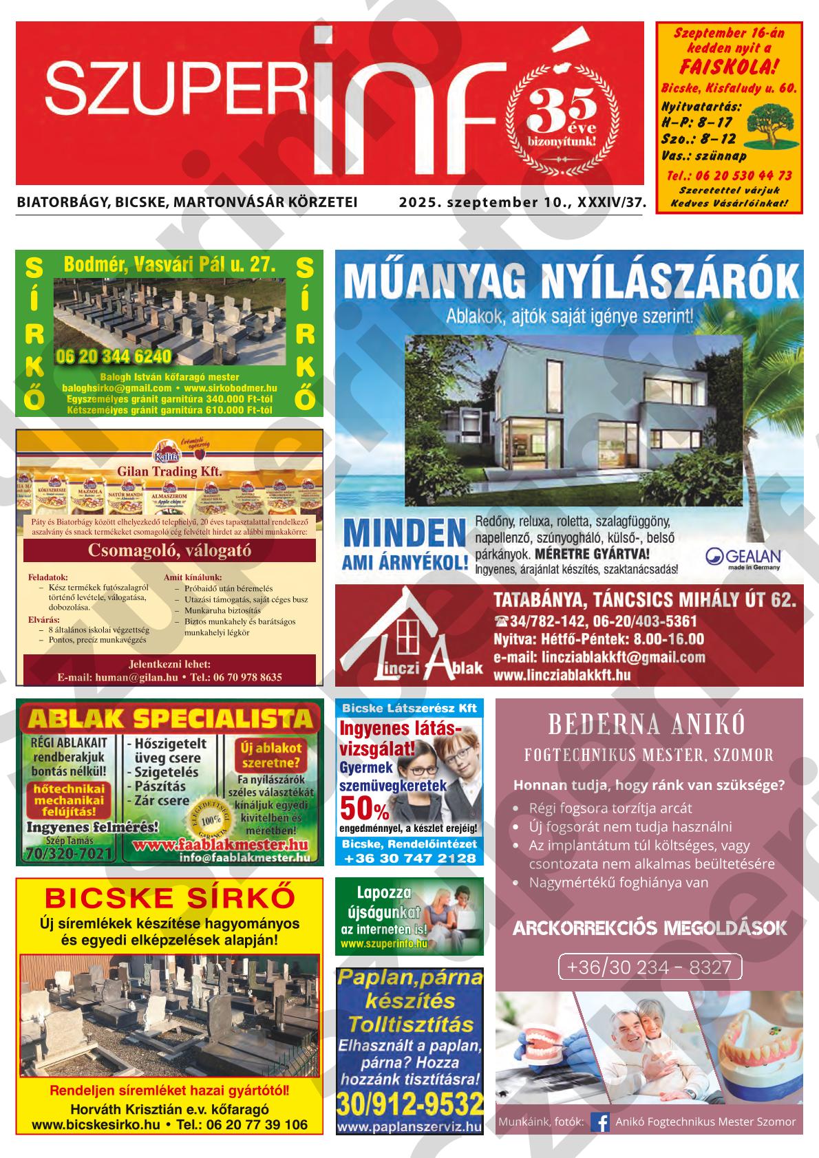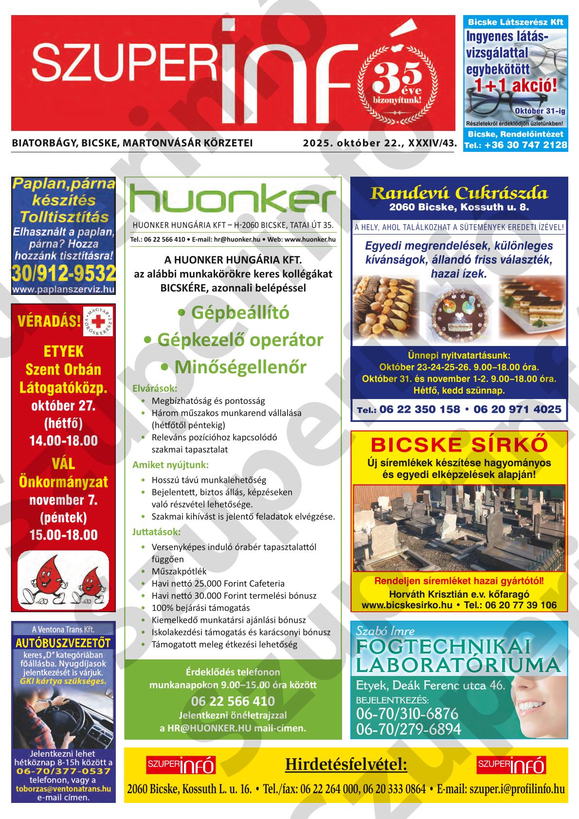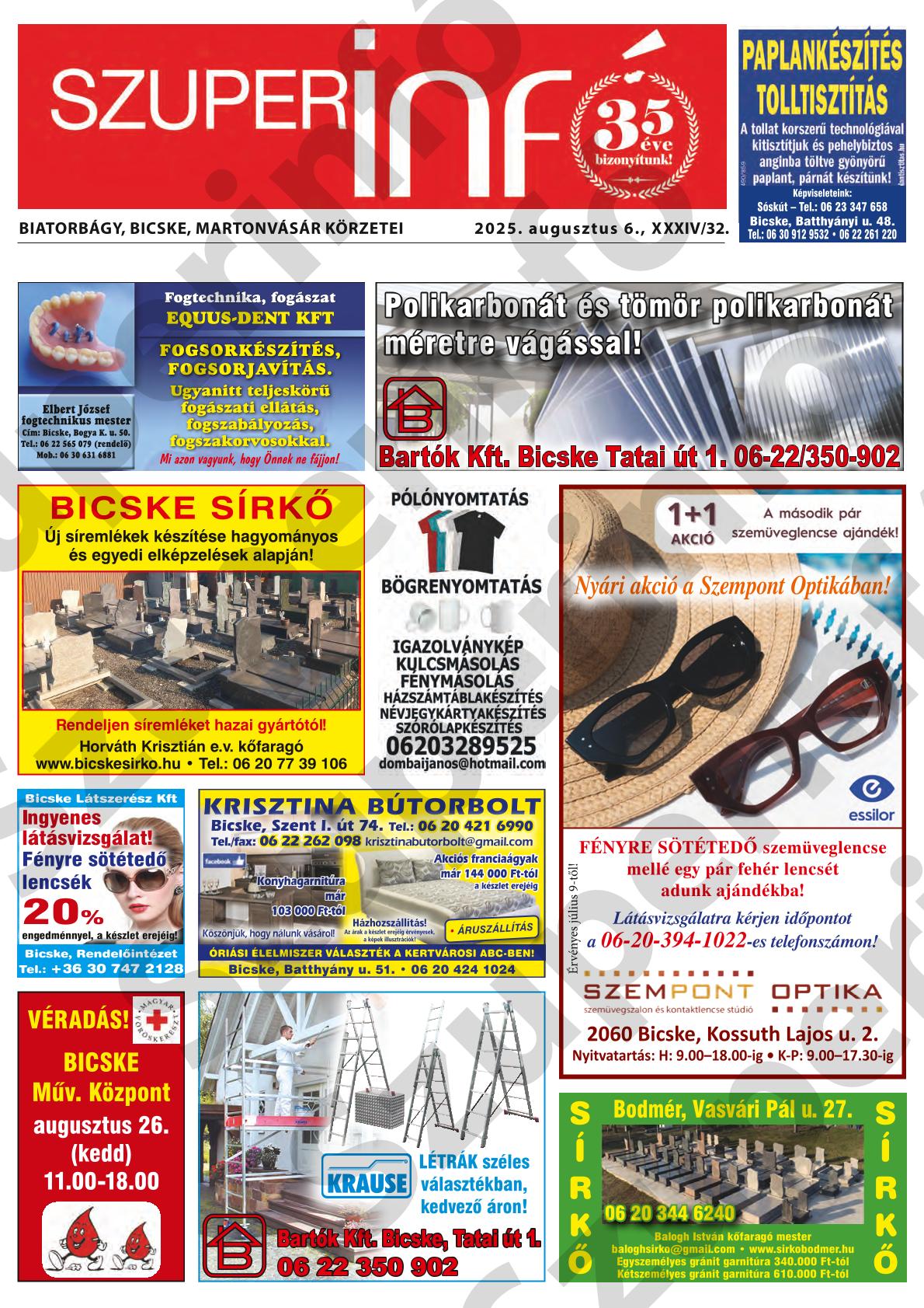 A SZUPERINFÓ online változatát már a hagyományos lap terjesztése előtt olvashatja telefonján vagy számítógépén!