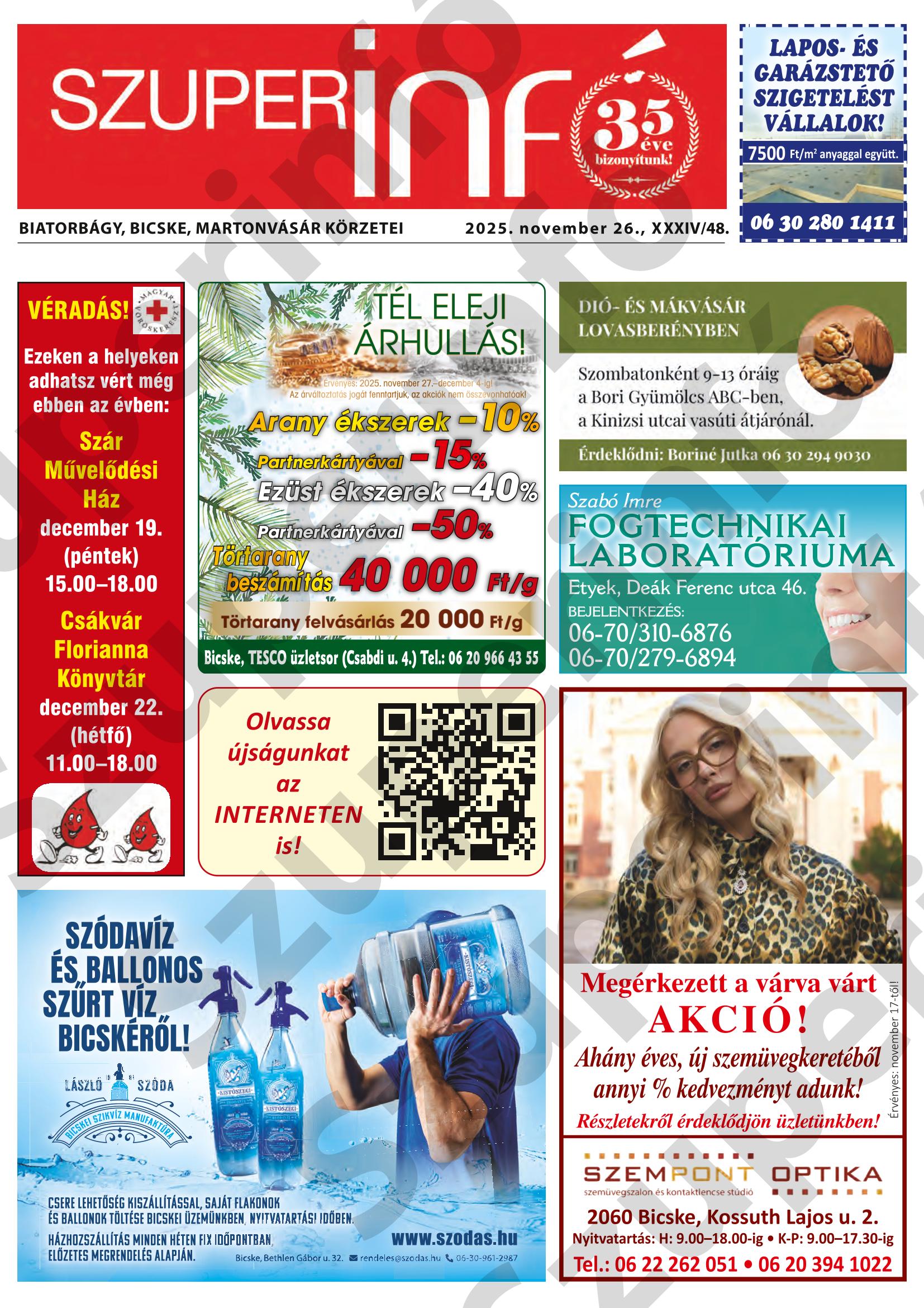 A SZUPERINFÓ online változatát már a hagyományos lap terjesztése előtt olvashatja telefonján vagy számítógépén!