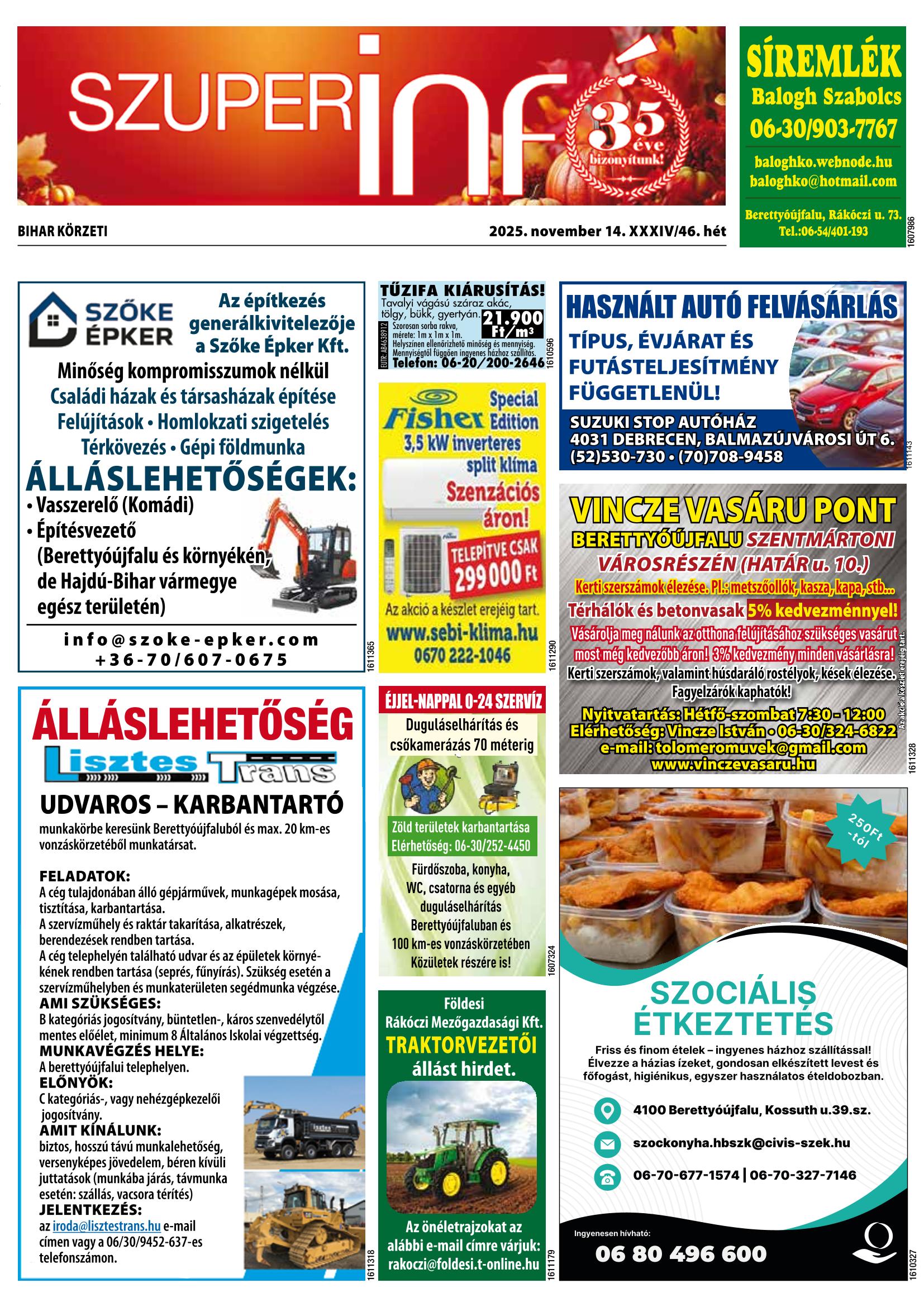 A SZUPERINFÓ online változatát már a hagyományos lap terjesztése előtt olvashatja telefonján vagy számítógépén!