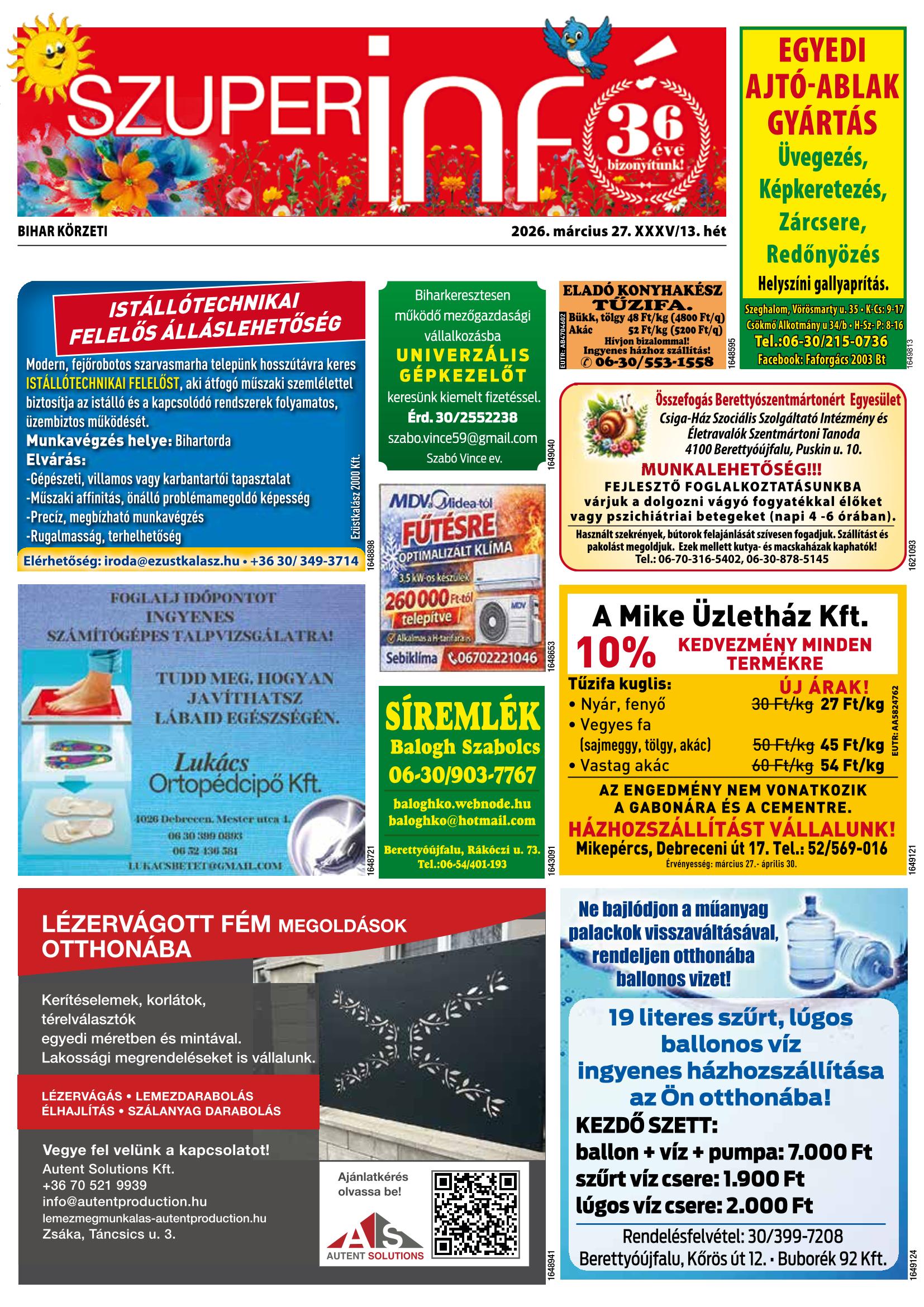 A SZUPERINFÓ online változatát már a hagyományos lap terjesztése előtt olvashatja telefonján vagy számítógépén!