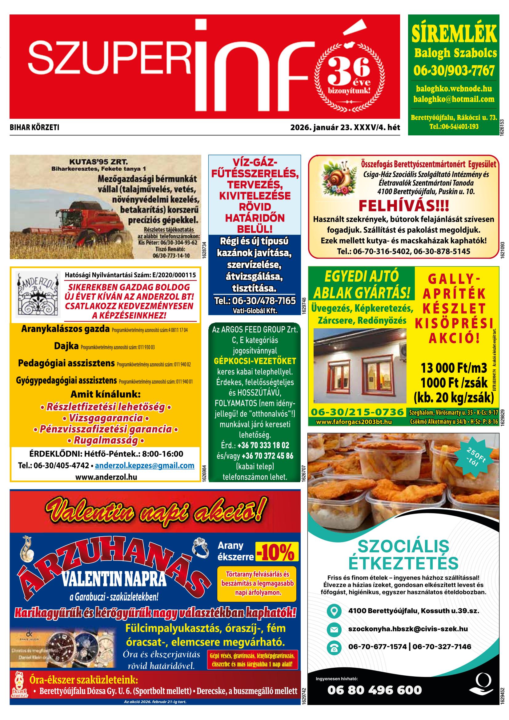 Iratkozzon fel, és megküldjük Önnek a FRISS SZUPERINFÓ újságot!