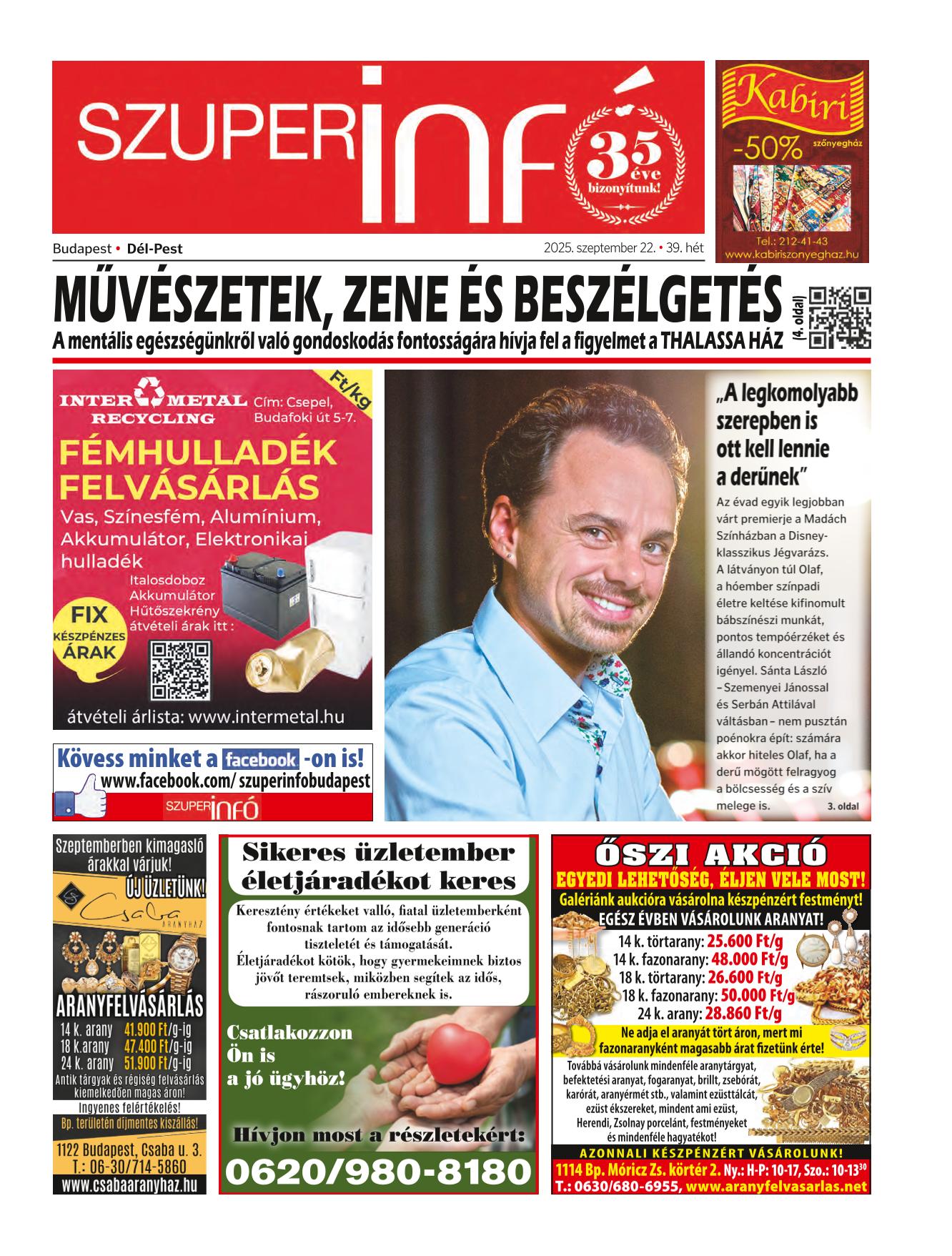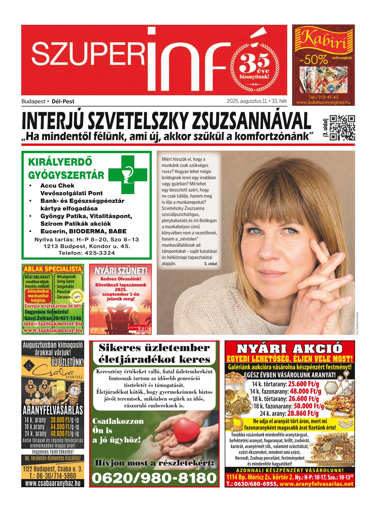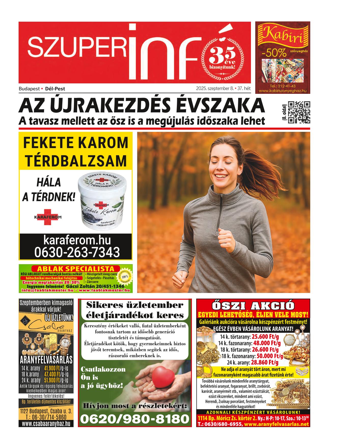 A SZUPERINFÓ online változatát már a hagyományos lap terjesztése előtt olvashatja telefonján vagy számítógépén!