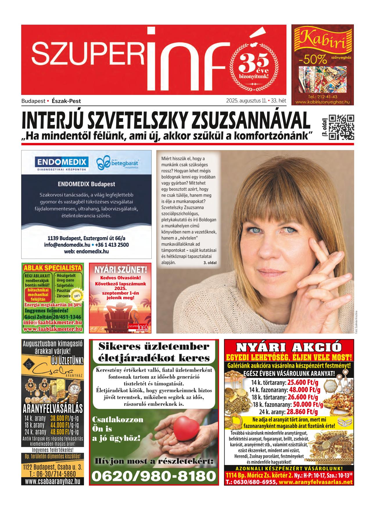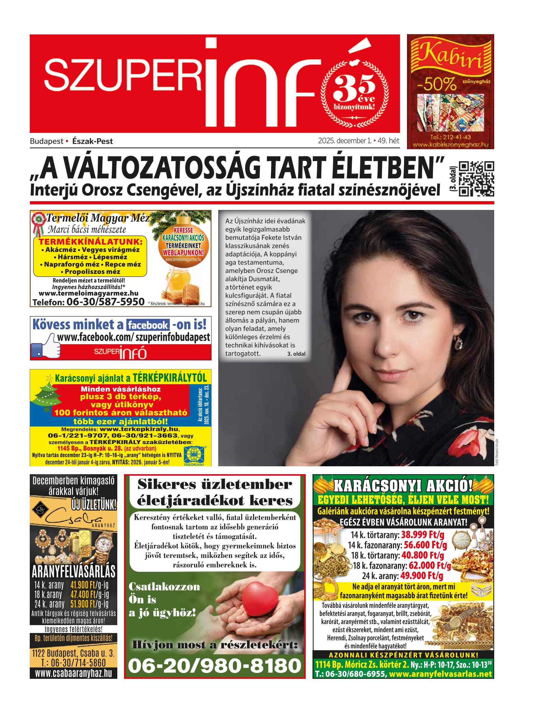 A SZUPERINFÓ online változatát már a hagyományos lap terjesztése előtt olvashatja telefonján vagy számítógépén!