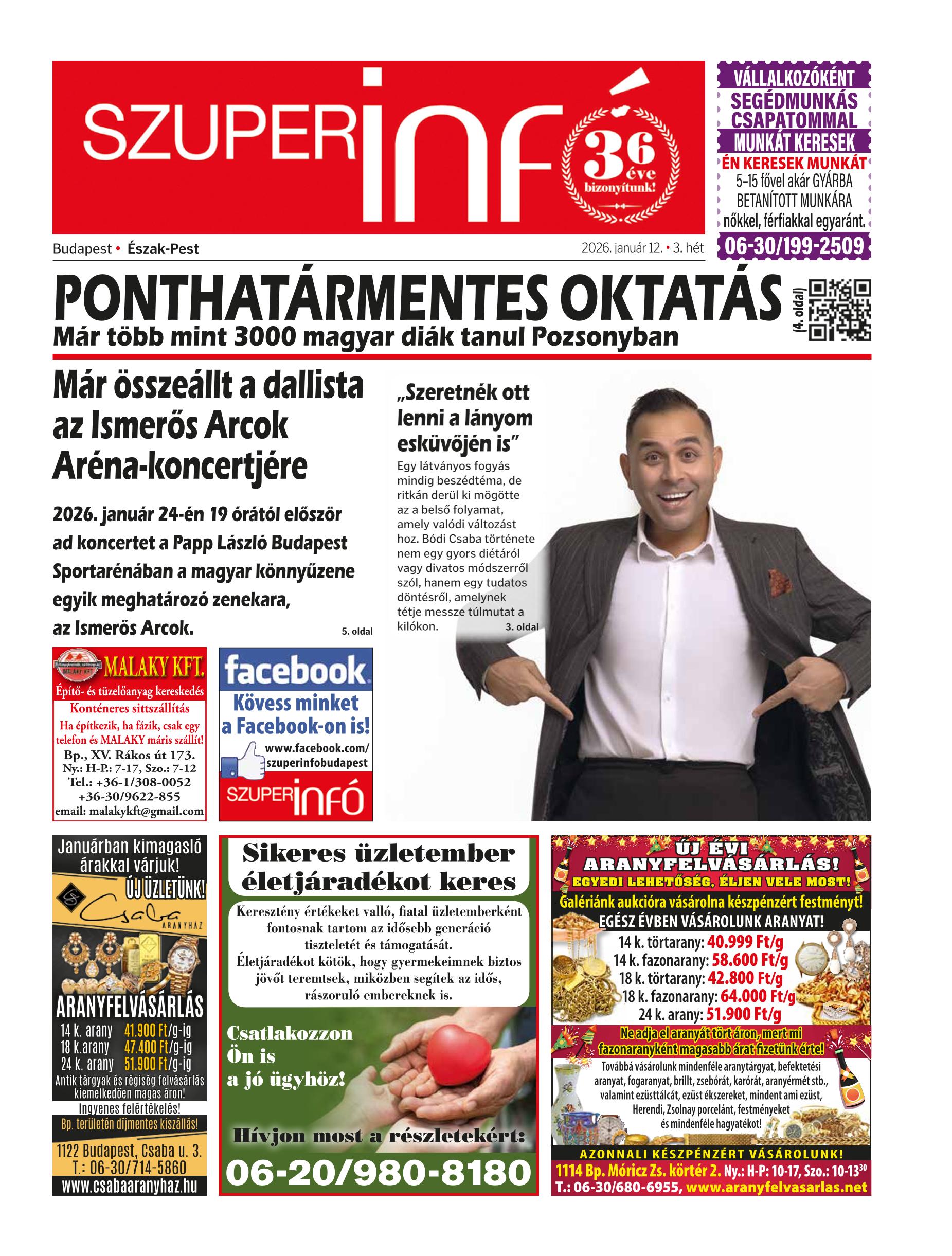 A SZUPERINFÓ online változatát már a hagyományos lap terjesztése előtt olvashatja telefonján vagy számítógépén!
