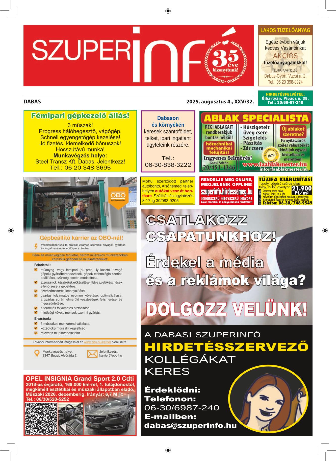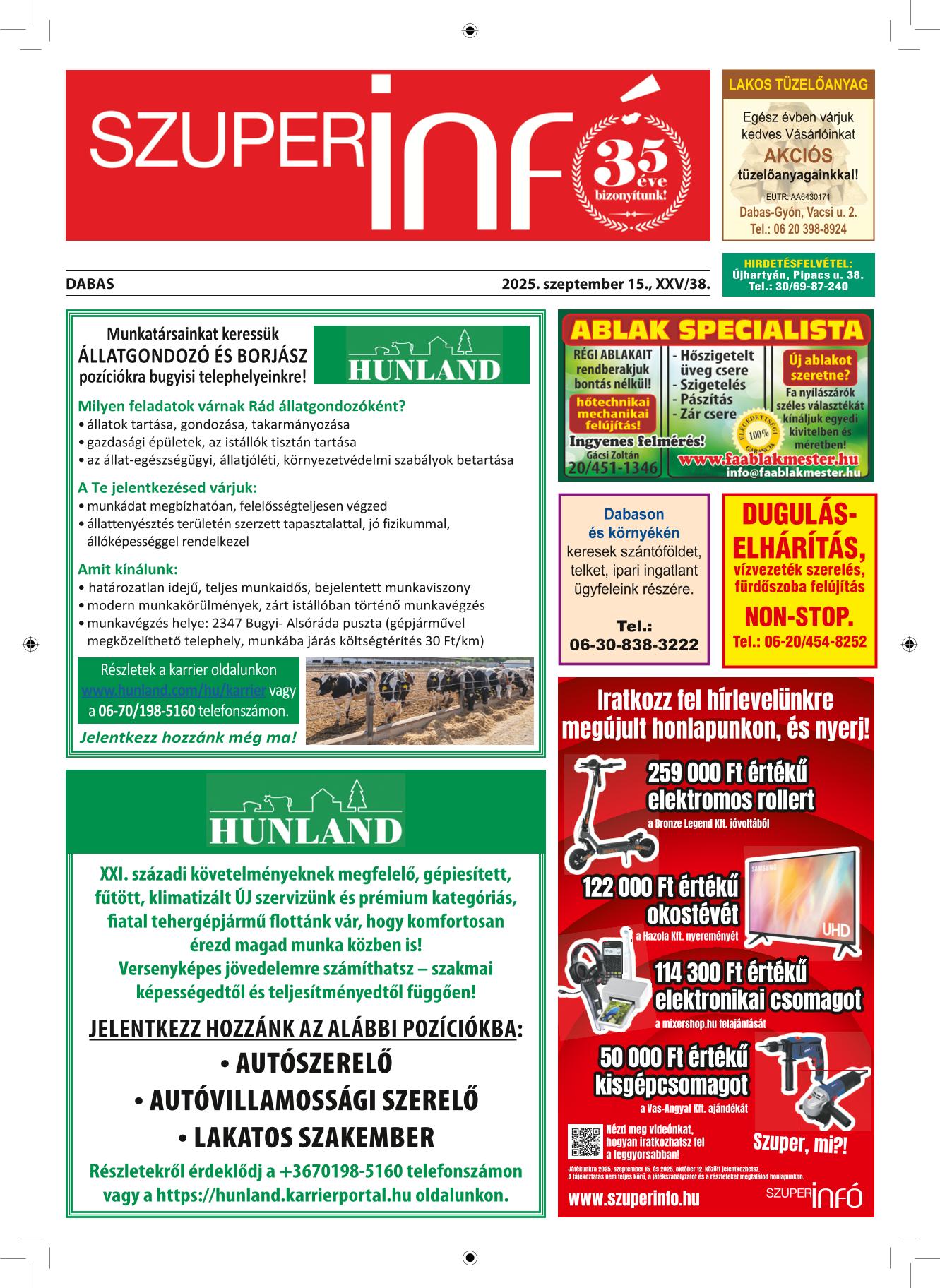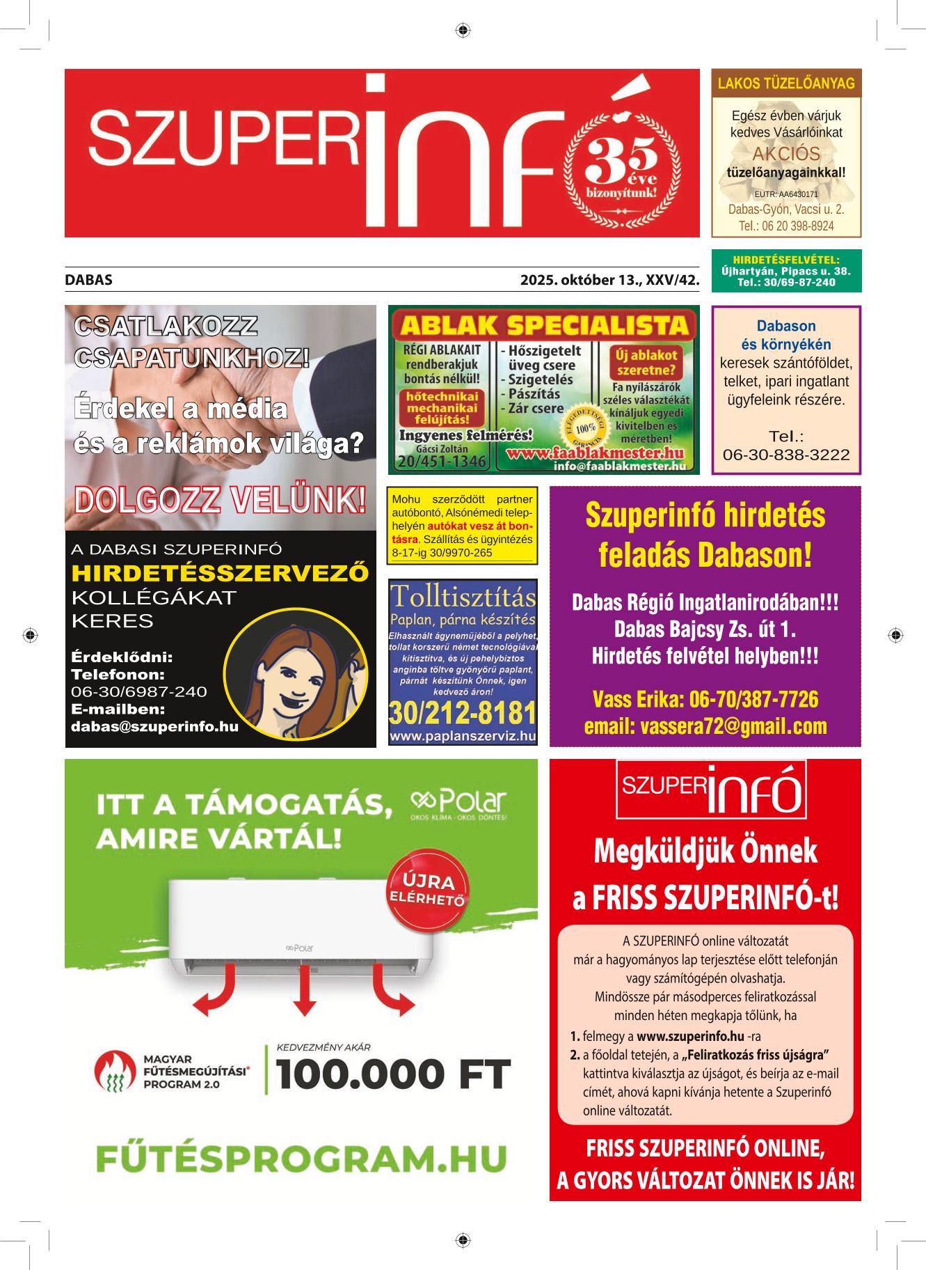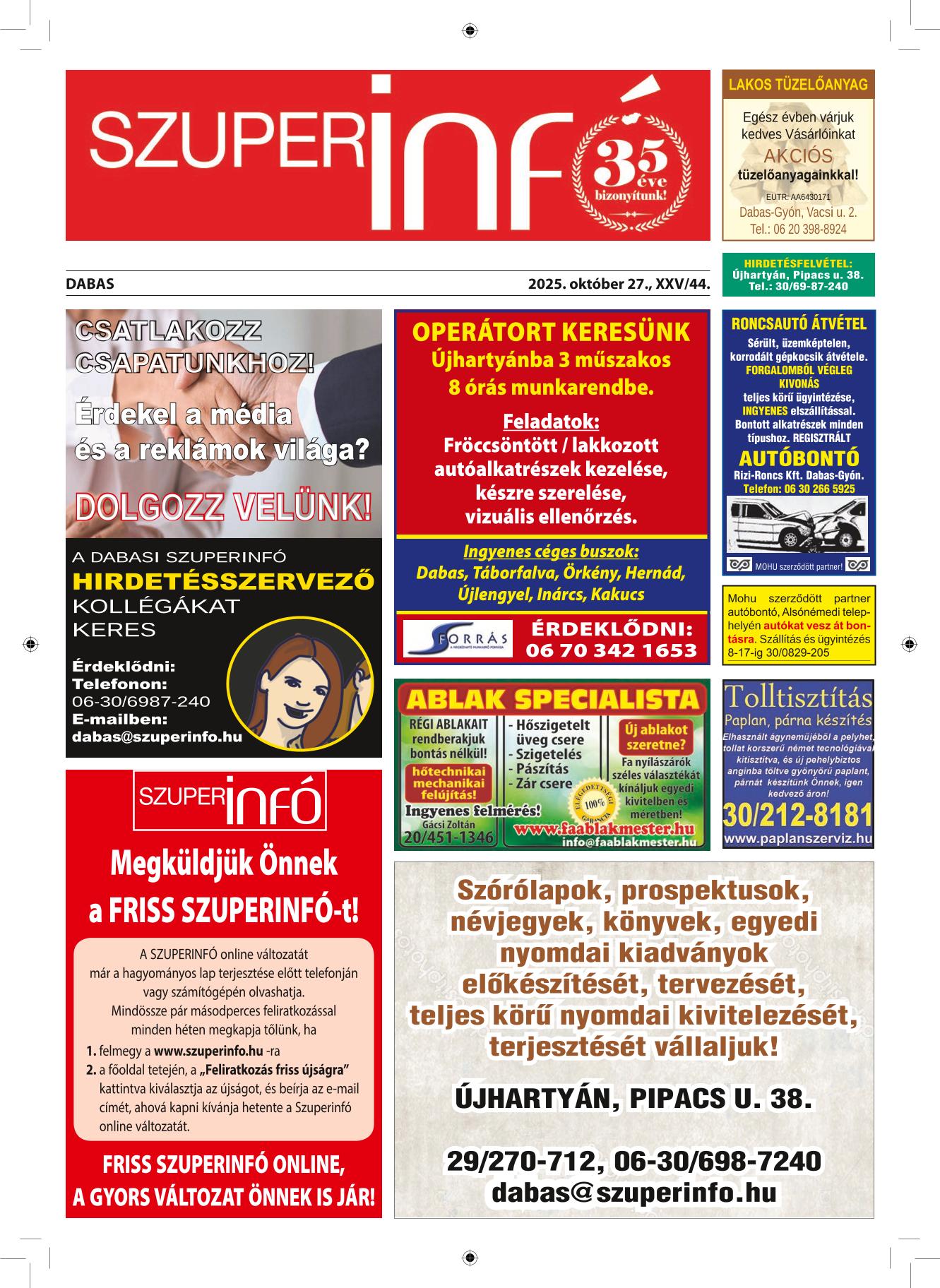 A SZUPERINFÓ online változatát már a hagyományos lap terjesztése előtt olvashatja telefonján vagy számítógépén!