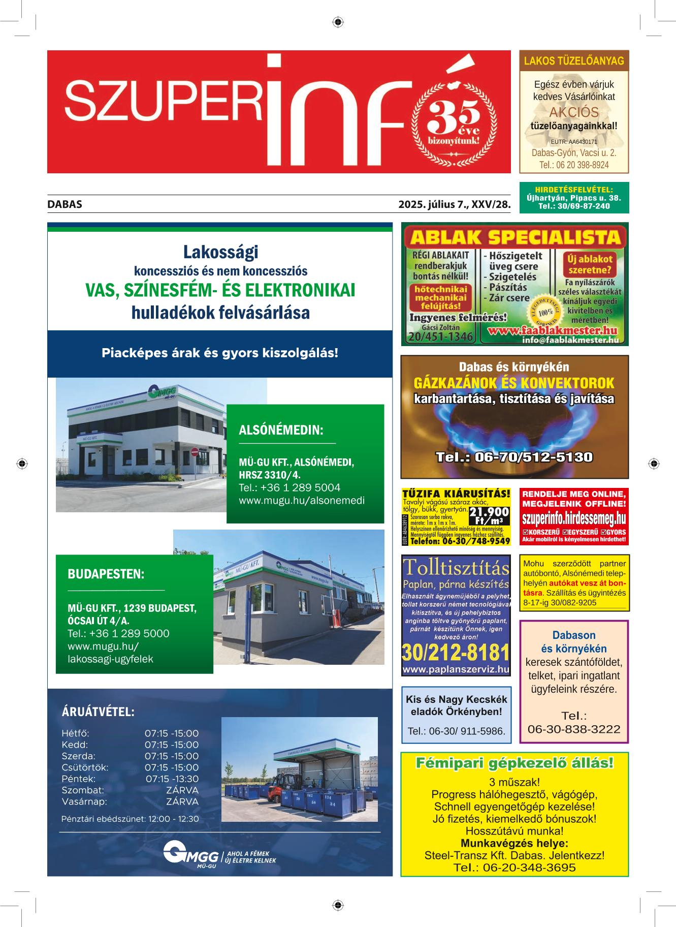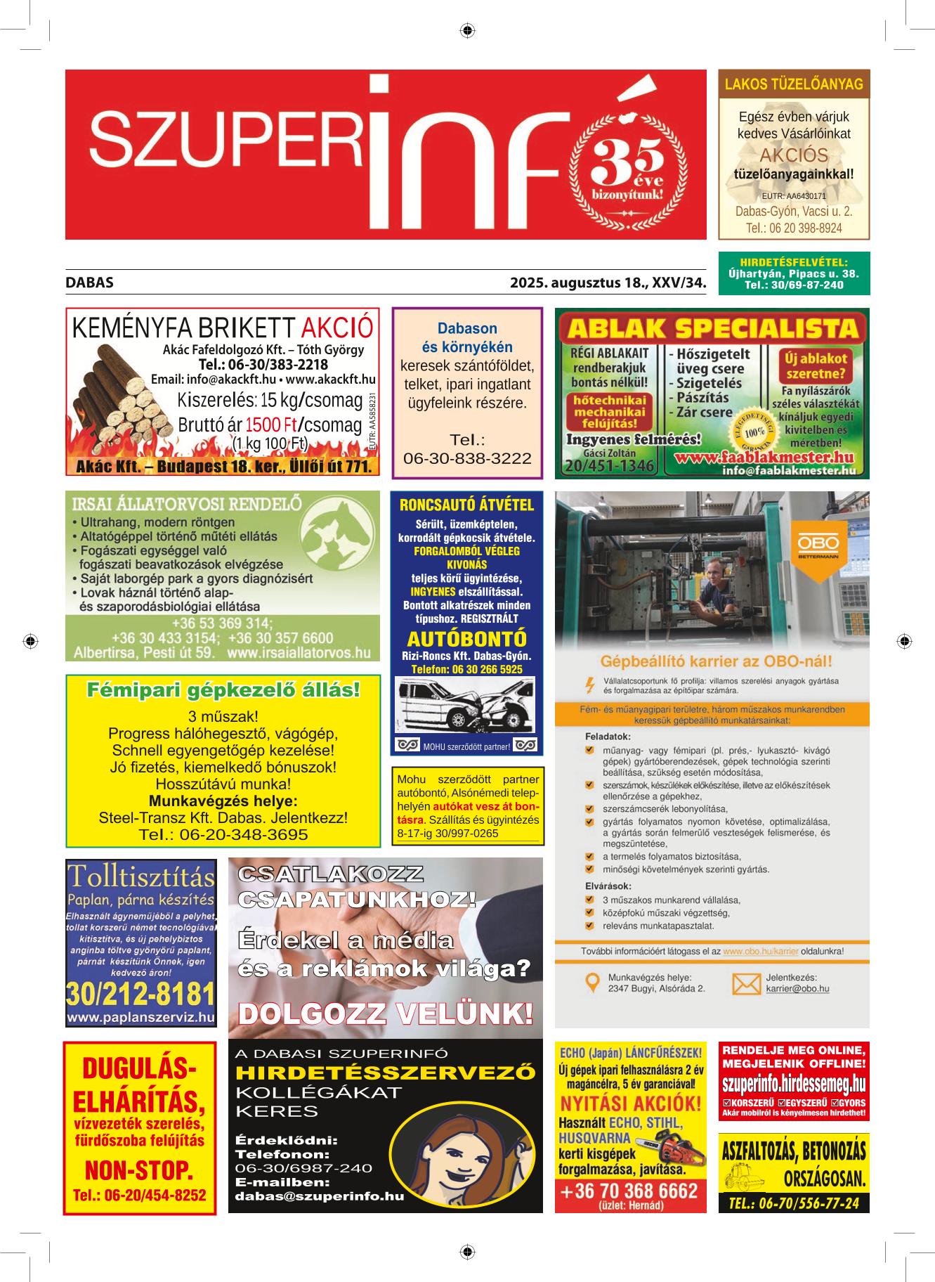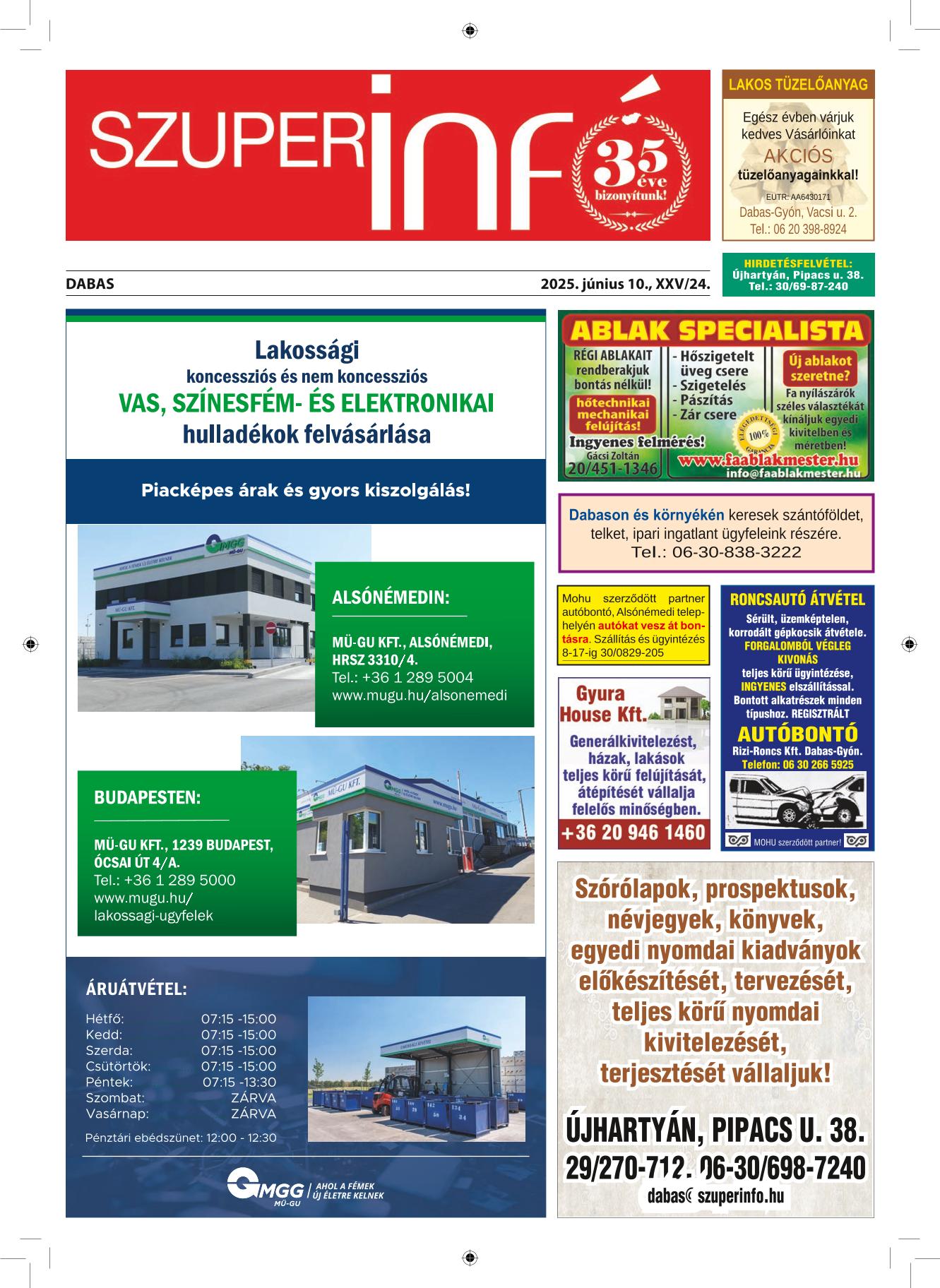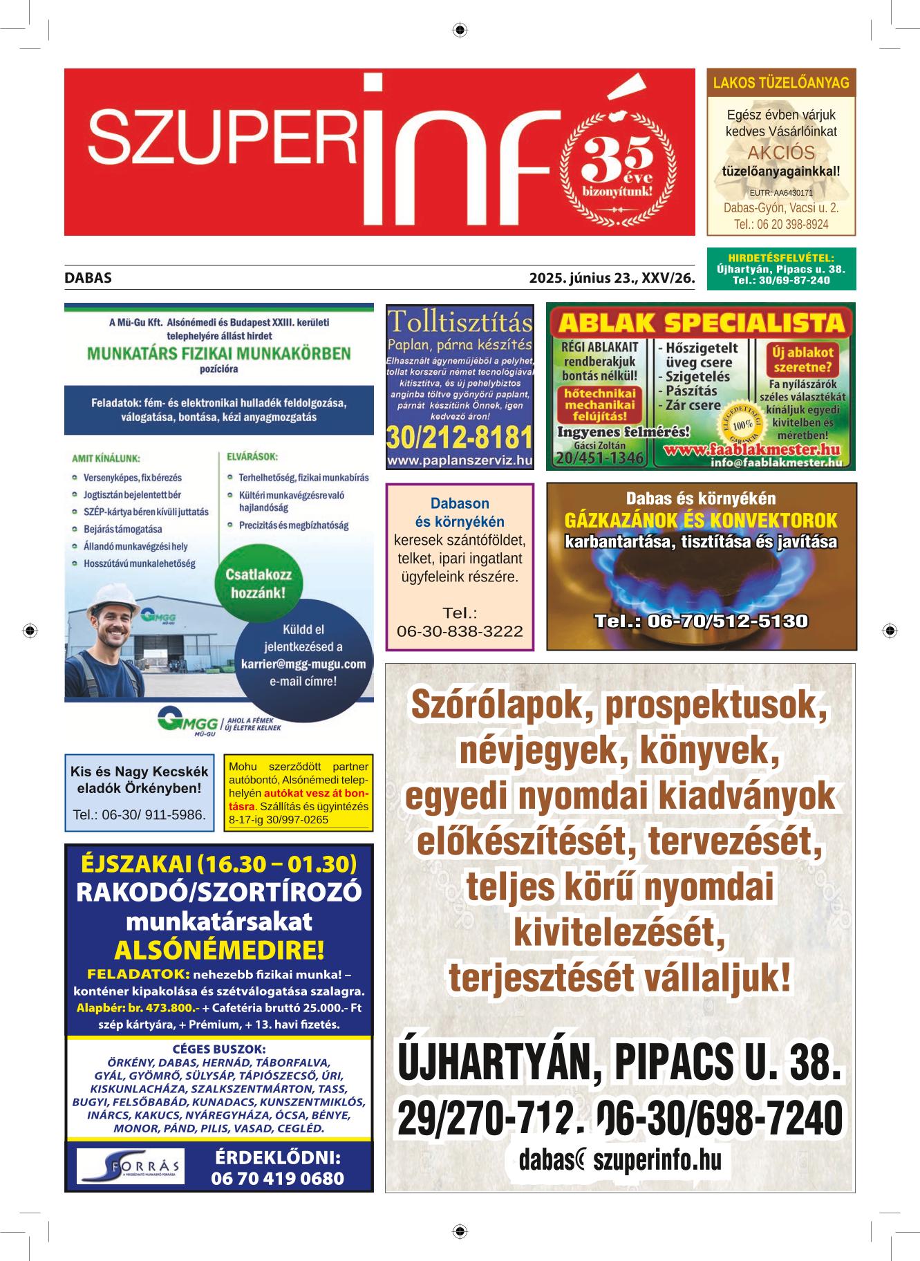 A SZUPERINFÓ online változatát már a hagyományos lap terjesztése előtt olvashatja telefonján vagy számítógépén!