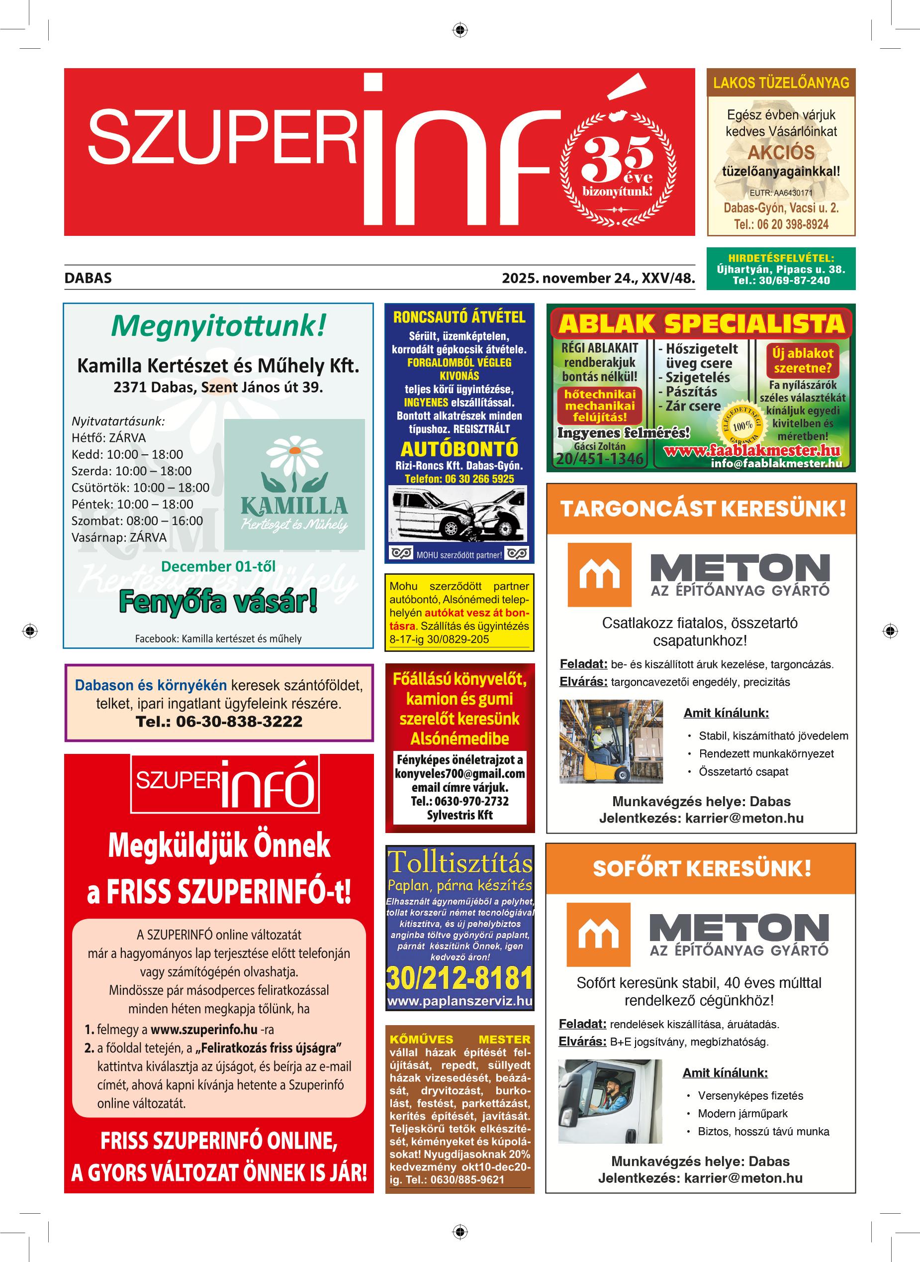 A SZUPERINFÓ online változatát már a hagyományos lap terjesztése előtt olvashatja telefonján vagy számítógépén!