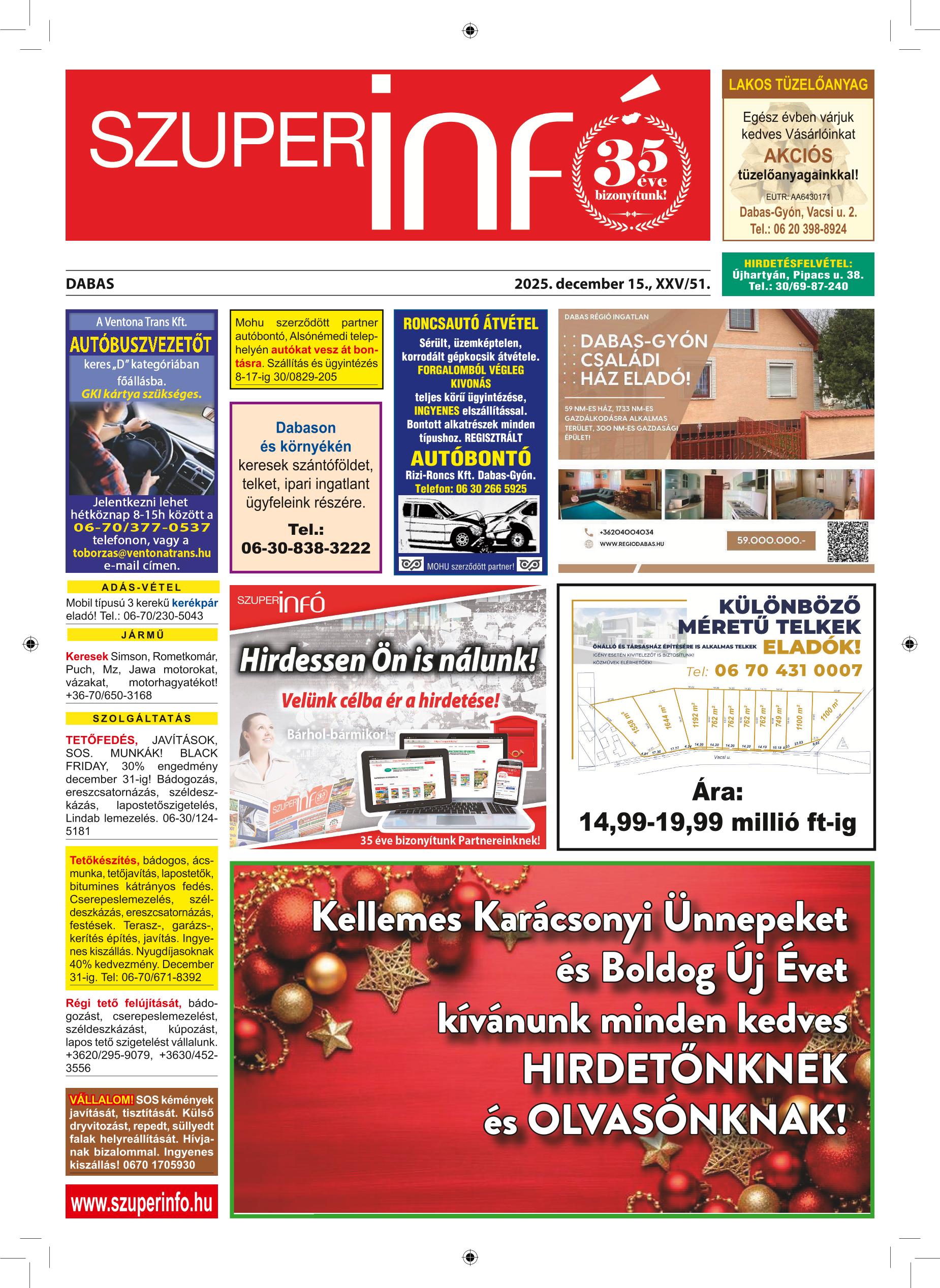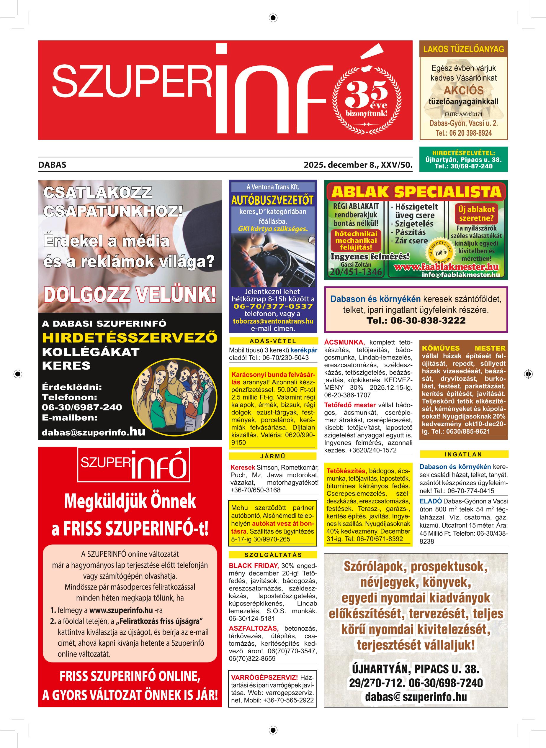A SZUPERINFÓ online változatát már a hagyományos lap terjesztése előtt olvashatja telefonján vagy számítógépén!