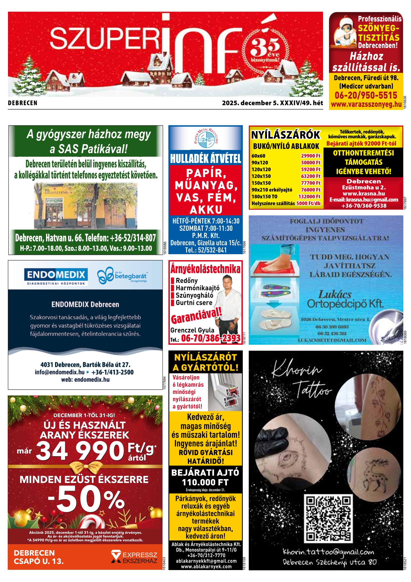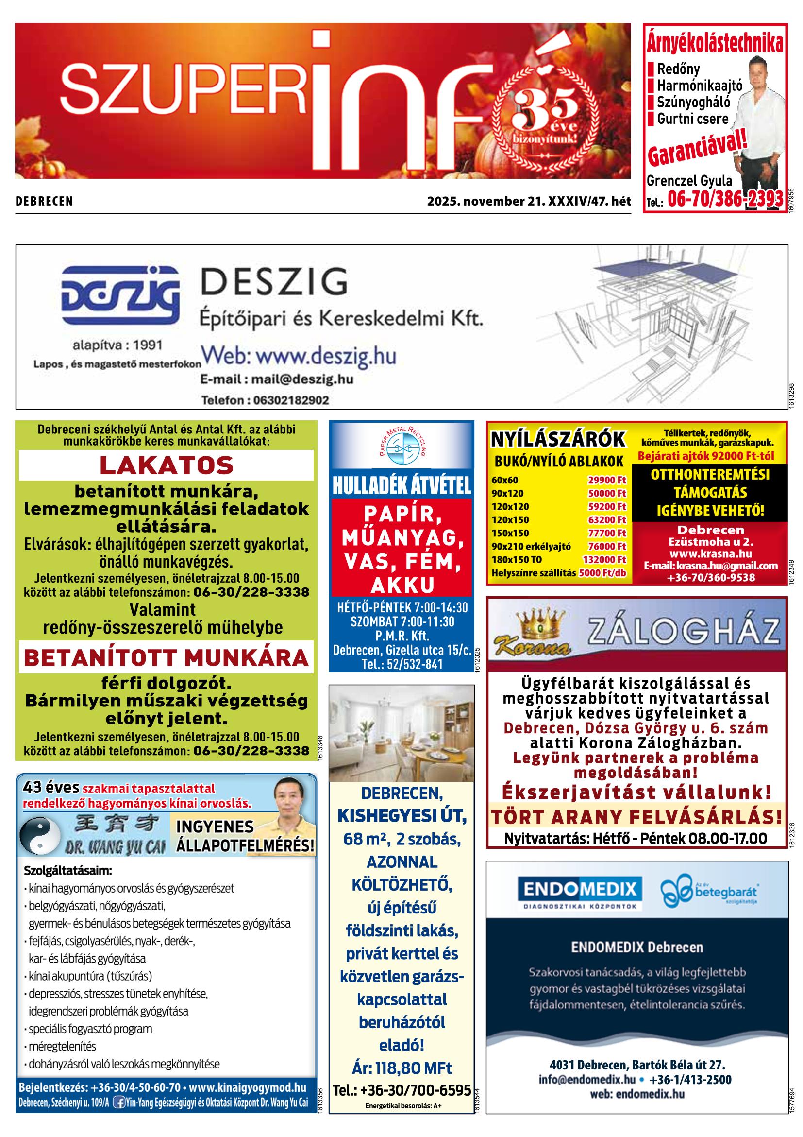 A SZUPERINFÓ online változatát már a hagyományos lap terjesztése előtt olvashatja telefonján vagy számítógépén!