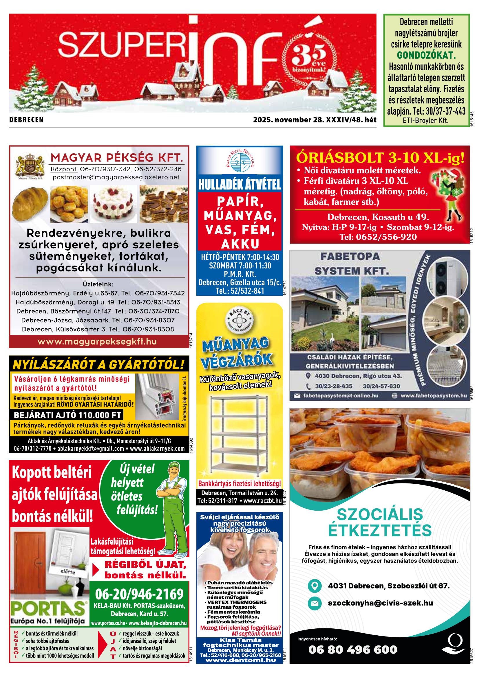 Cím: Szerkesztőség: 4024 Debrecen, Szent Anna u 39-41., Ügyfélszolgálat: 4024 Debrecen, Kálvin tér 6.