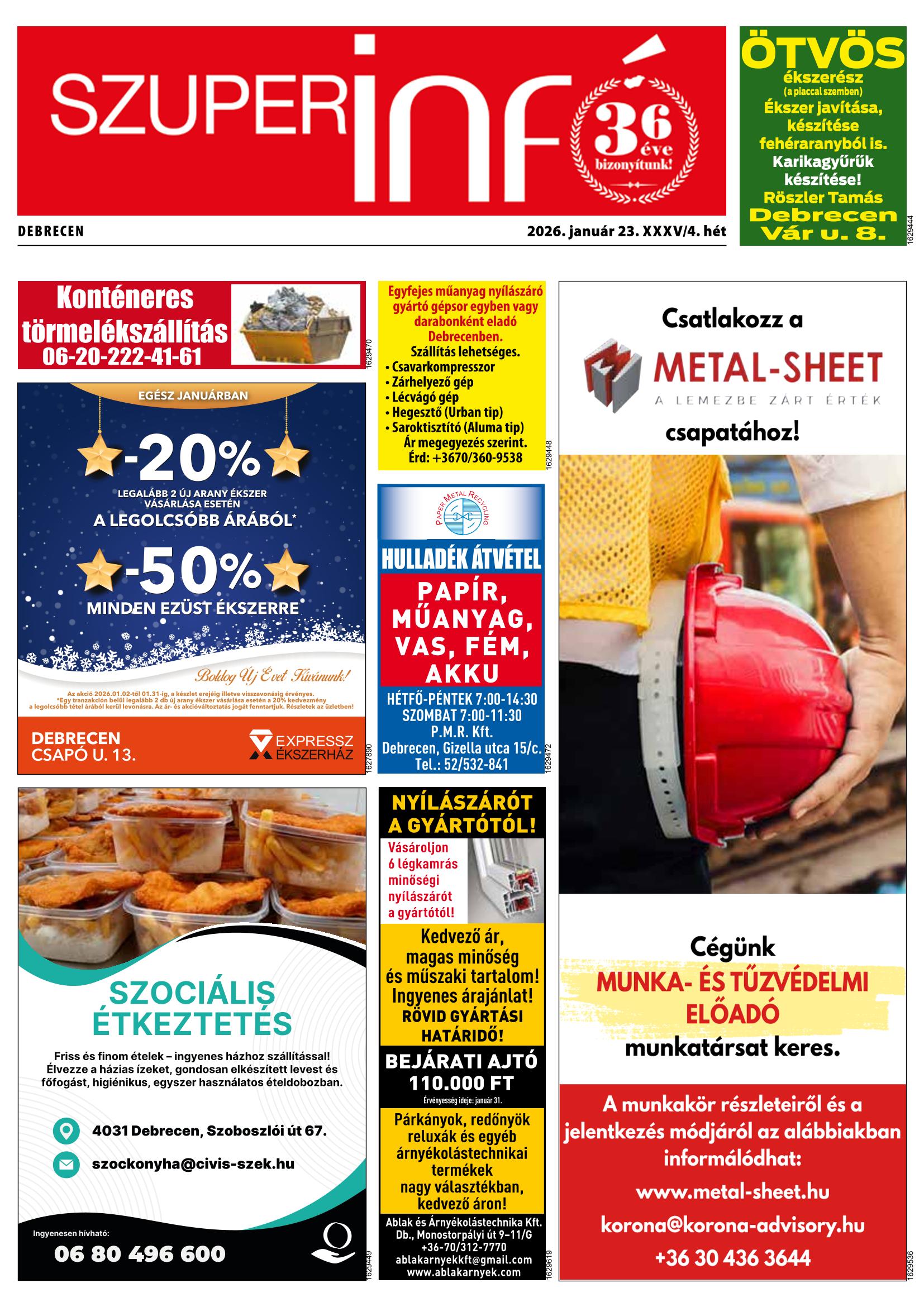 Cím: Szerkesztőség: 4024 Debrecen, Szent Anna u 39-41., Ügyfélszolgálat: 4024 Debrecen, Kálvin tér 6.