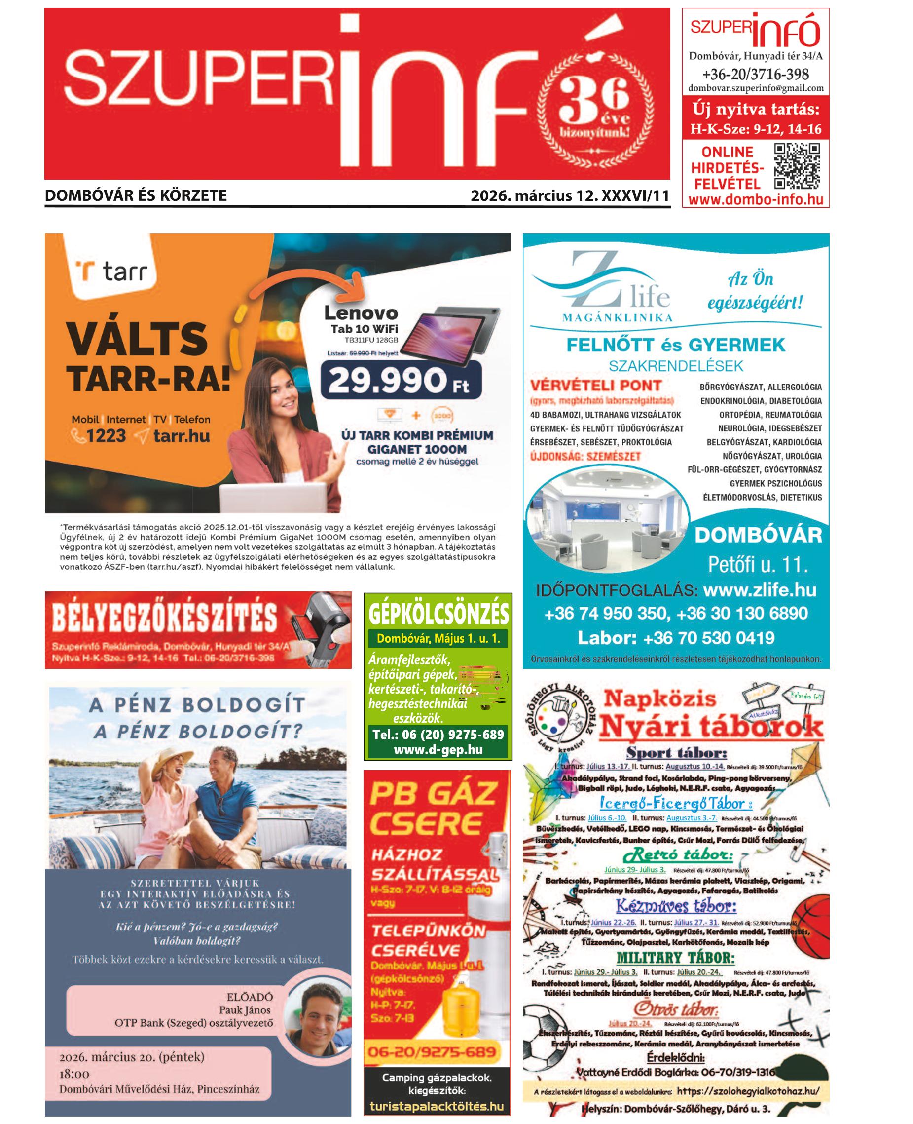 A SZUPERINFÓ online változatát már a hagyományos lap terjesztése előtt olvashatja telefonján vagy számítógépén!