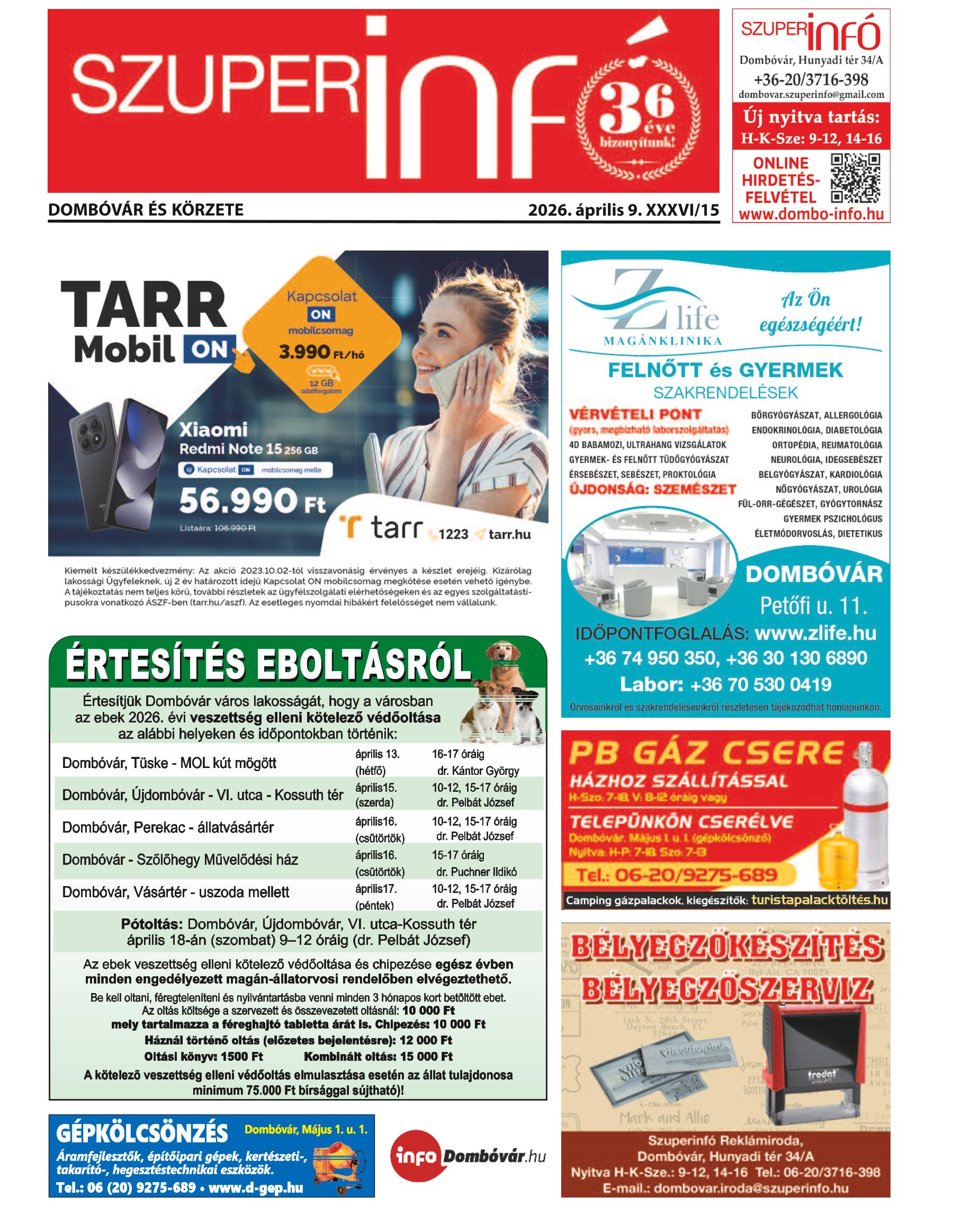A SZUPERINFÓ online változatát már a hagyományos lap terjesztése előtt olvashatja telefonján vagy számítógépén!