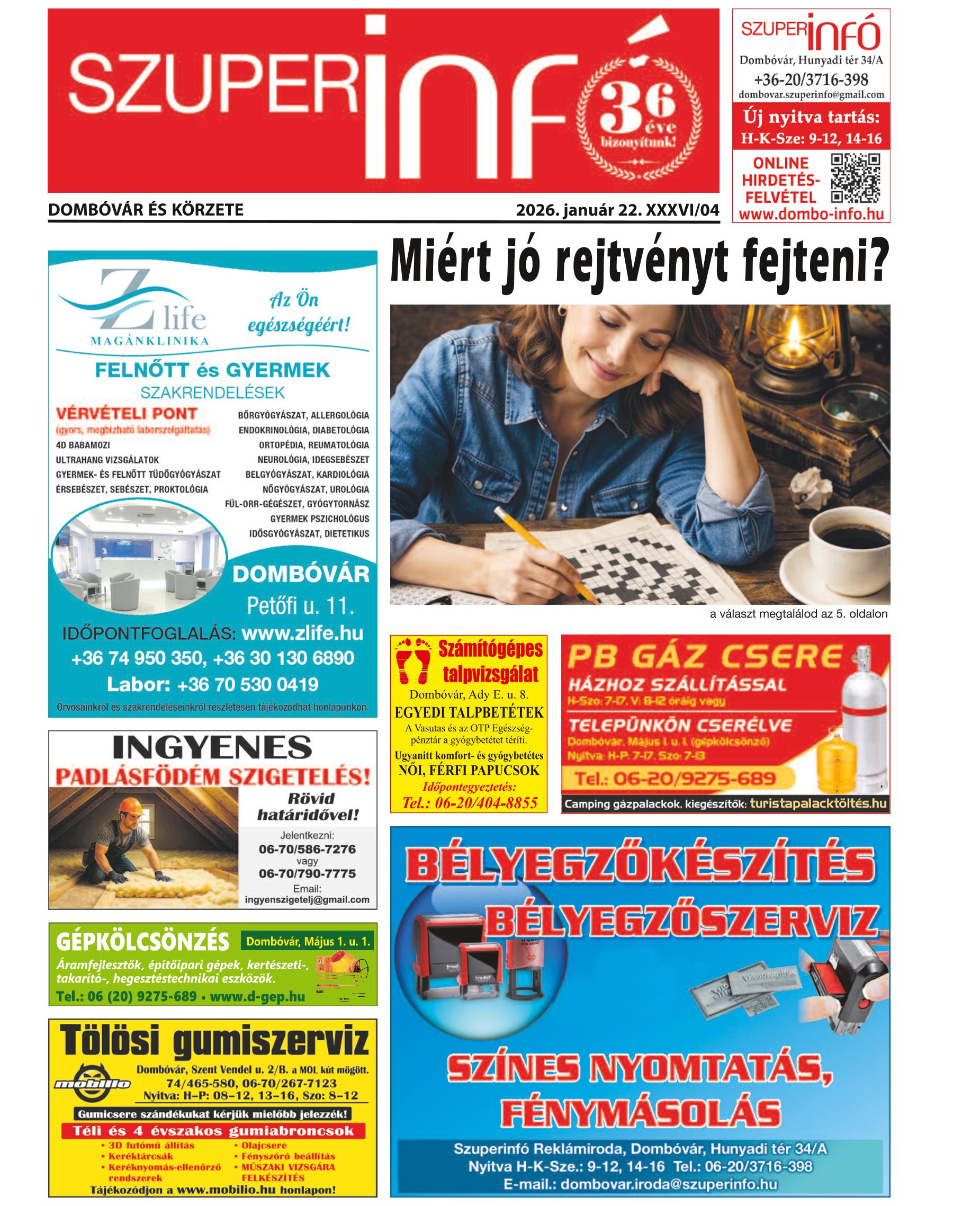 A SZUPERINFÓ online változatát már a hagyományos lap terjesztése előtt olvashatja telefonján vagy számítógépén!