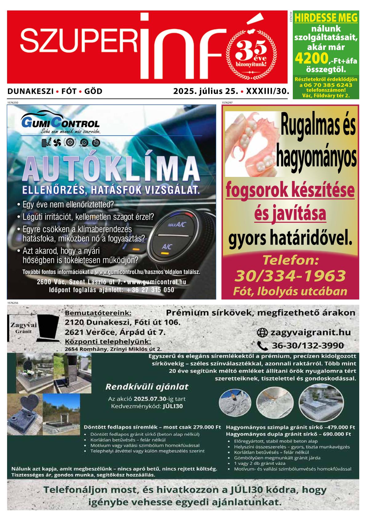 Dunakeszi Fót Göd Szuperinfó