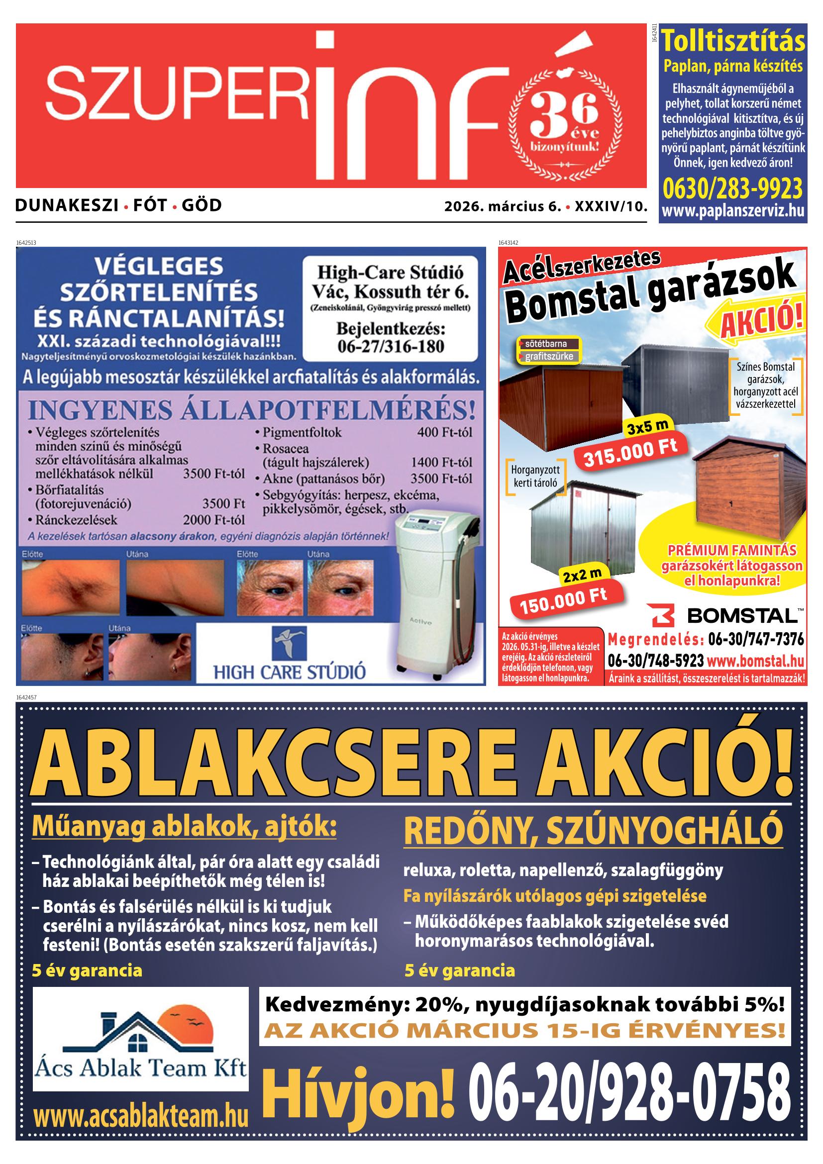 A SZUPERINFÓ online változatát már a hagyományos lap terjesztése előtt olvashatja telefonján vagy számítógépén!