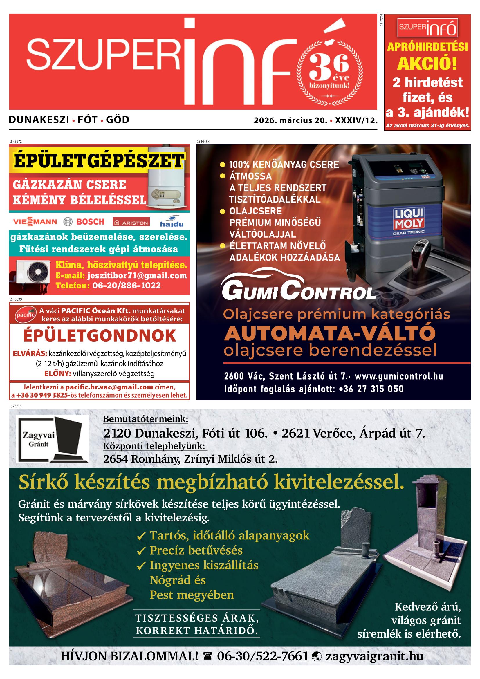 A SZUPERINFÓ online változatát már a hagyományos lap terjesztése előtt olvashatja telefonján vagy számítógépén!