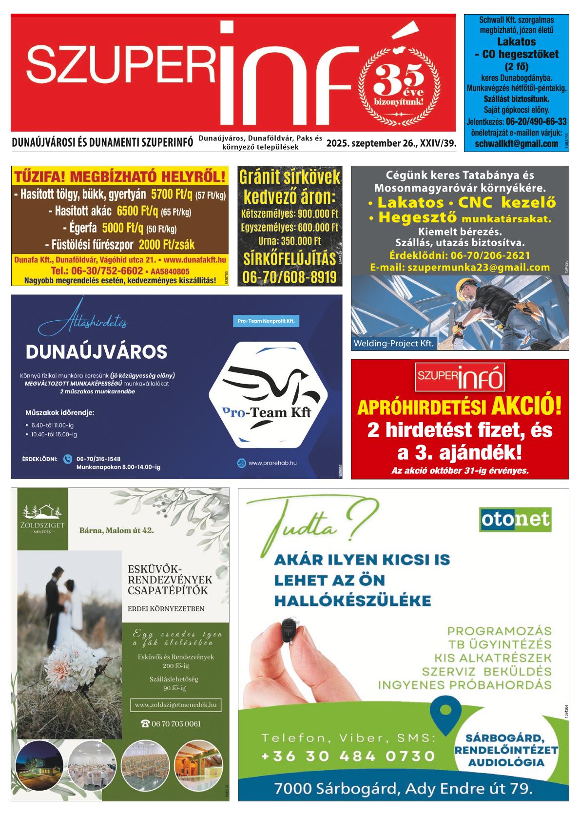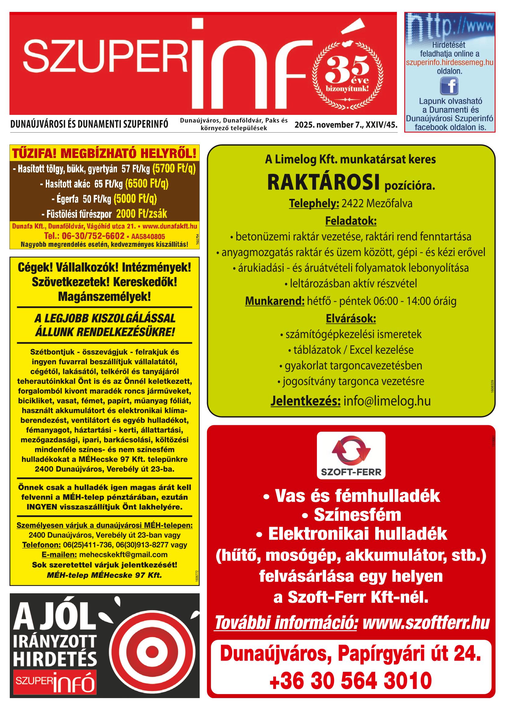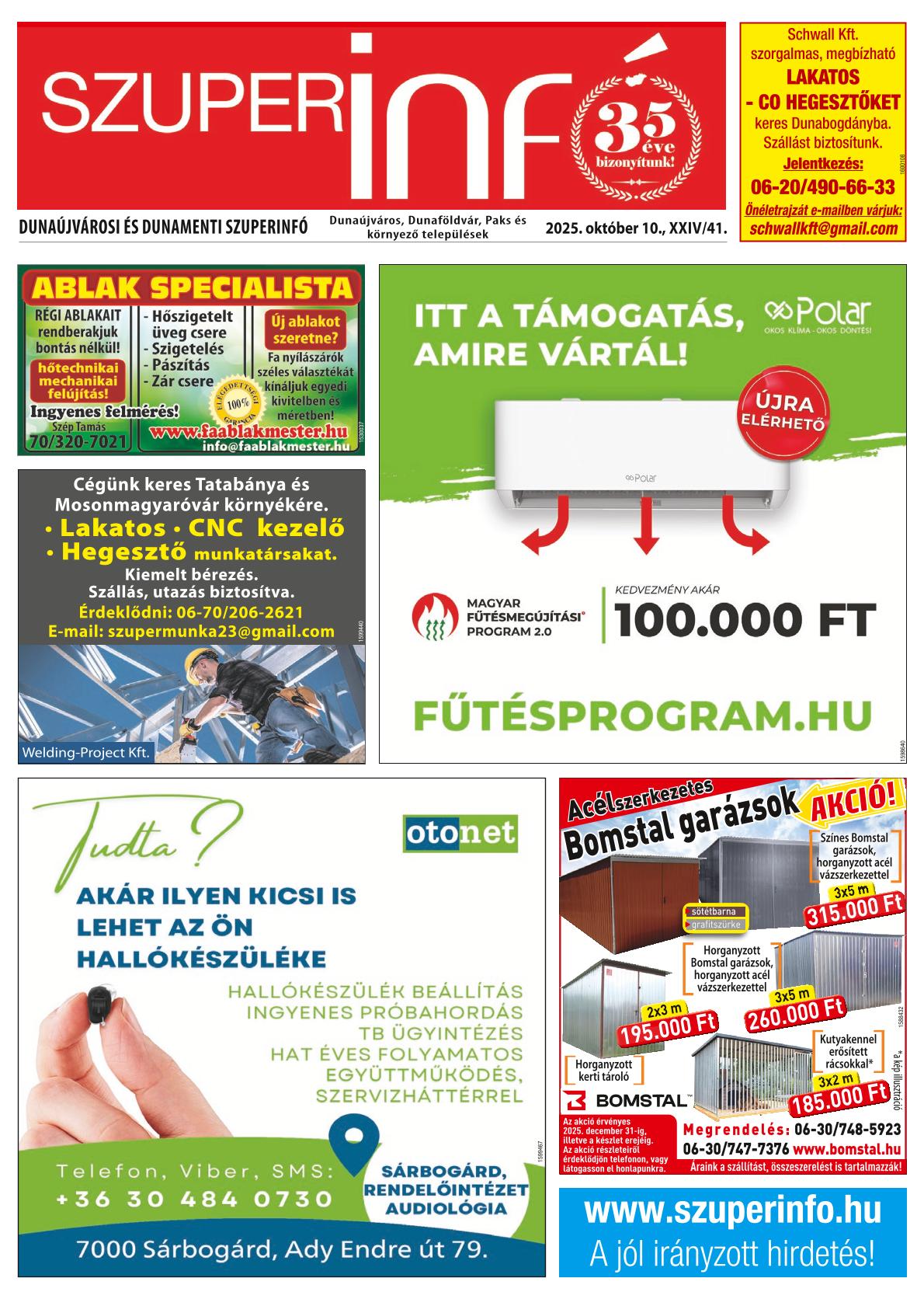 A SZUPERINFÓ online változatát már a hagyományos lap terjesztése előtt olvashatja telefonján vagy számítógépén!
