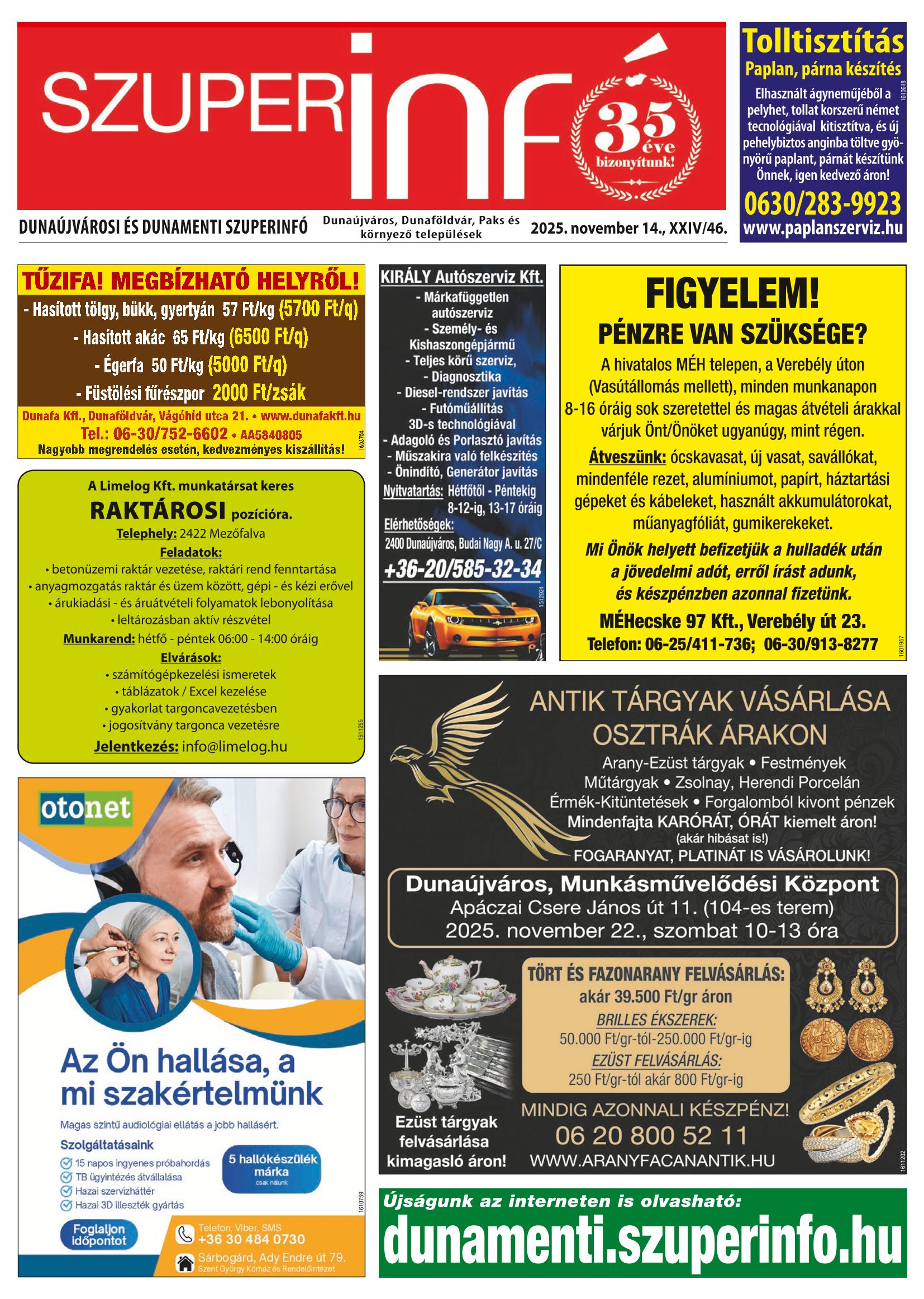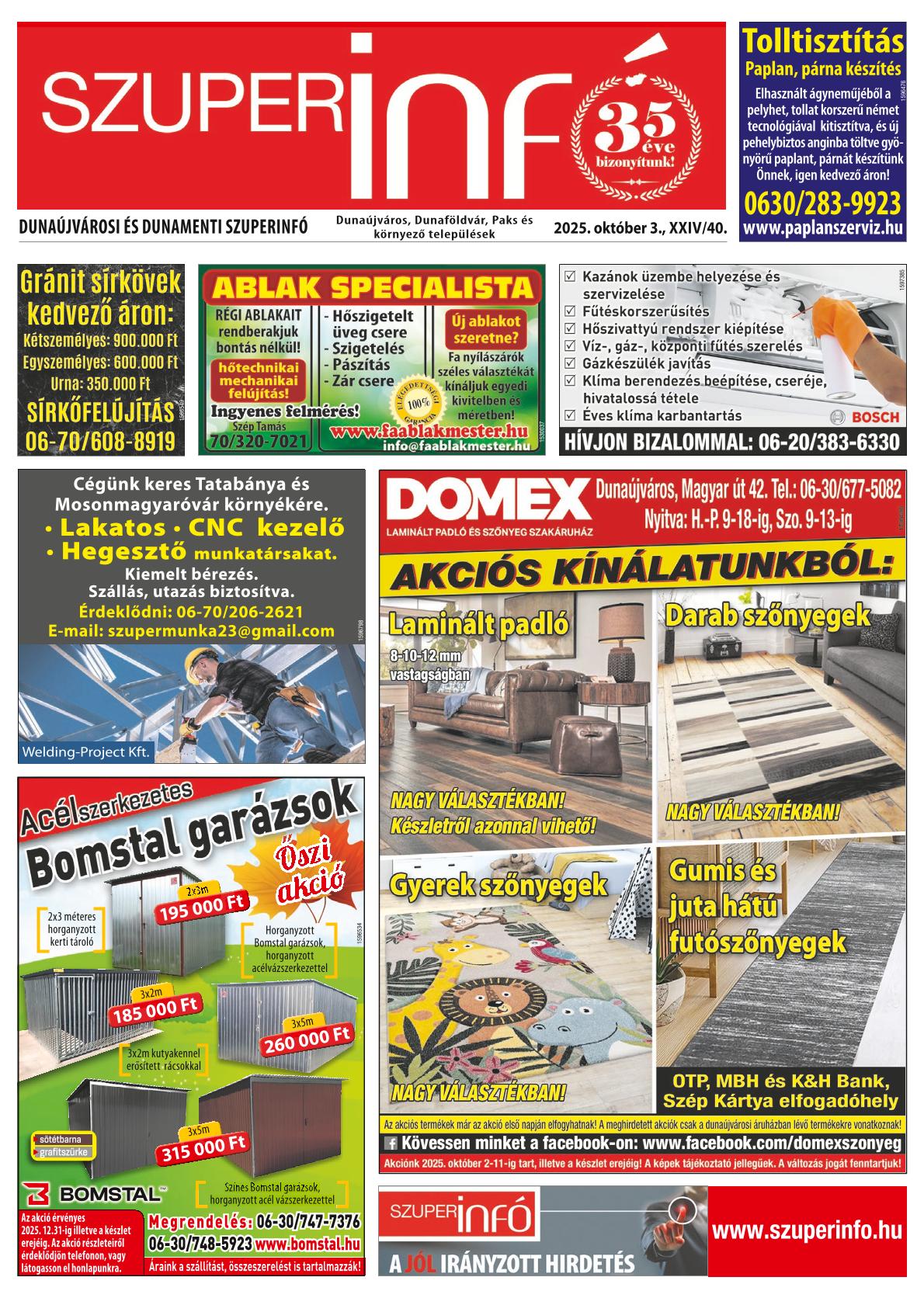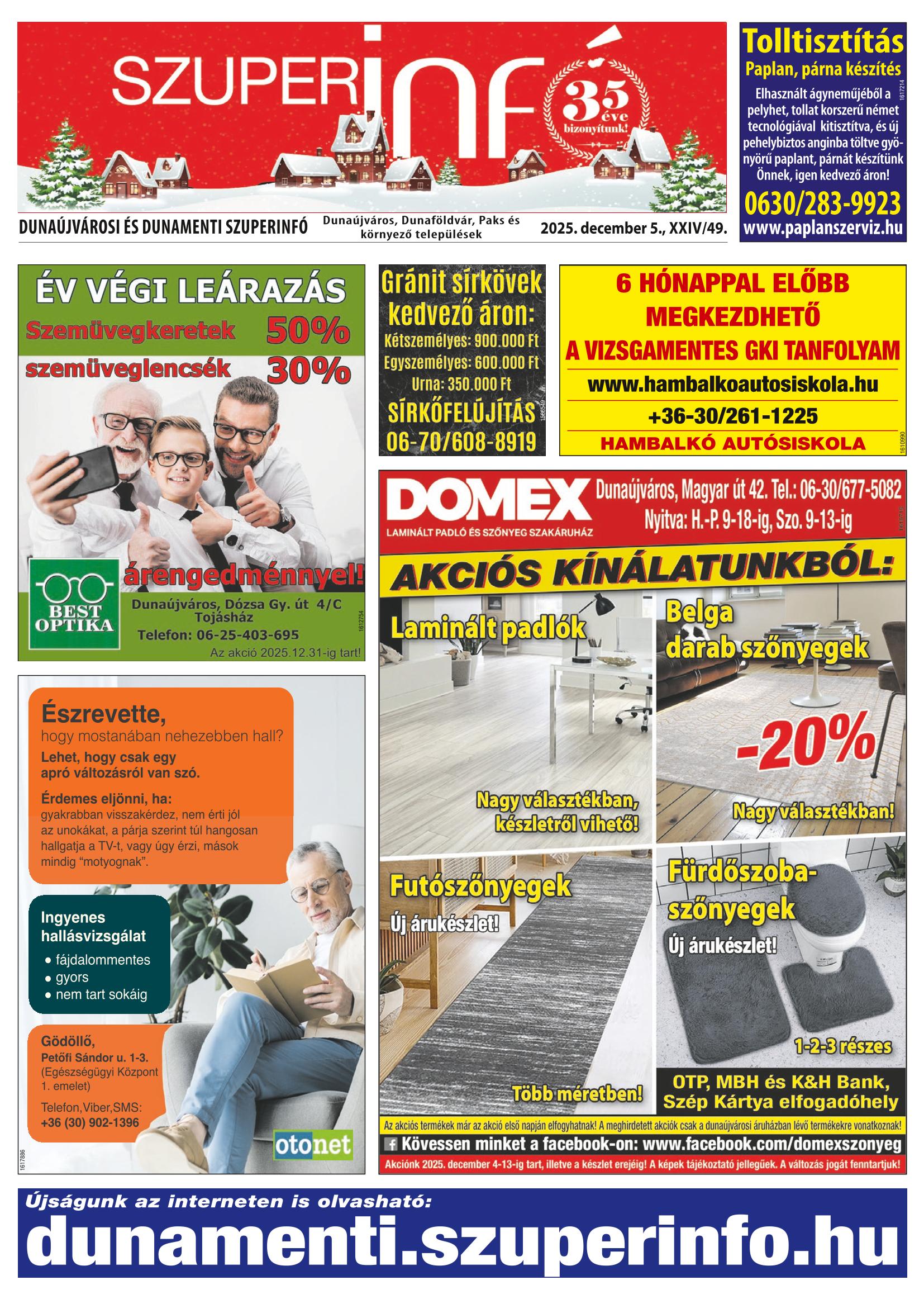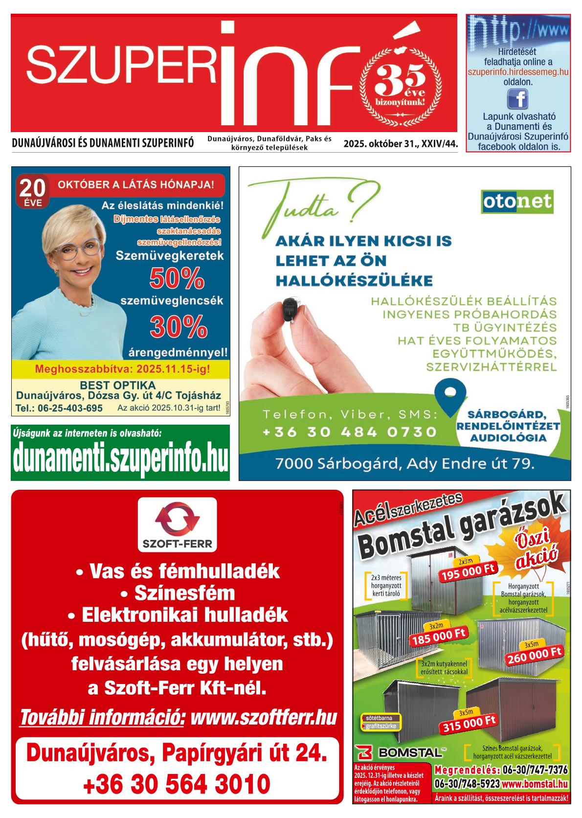 A SZUPERINFÓ online változatát már a hagyományos lap terjesztése előtt olvashatja telefonján vagy számítógépén!