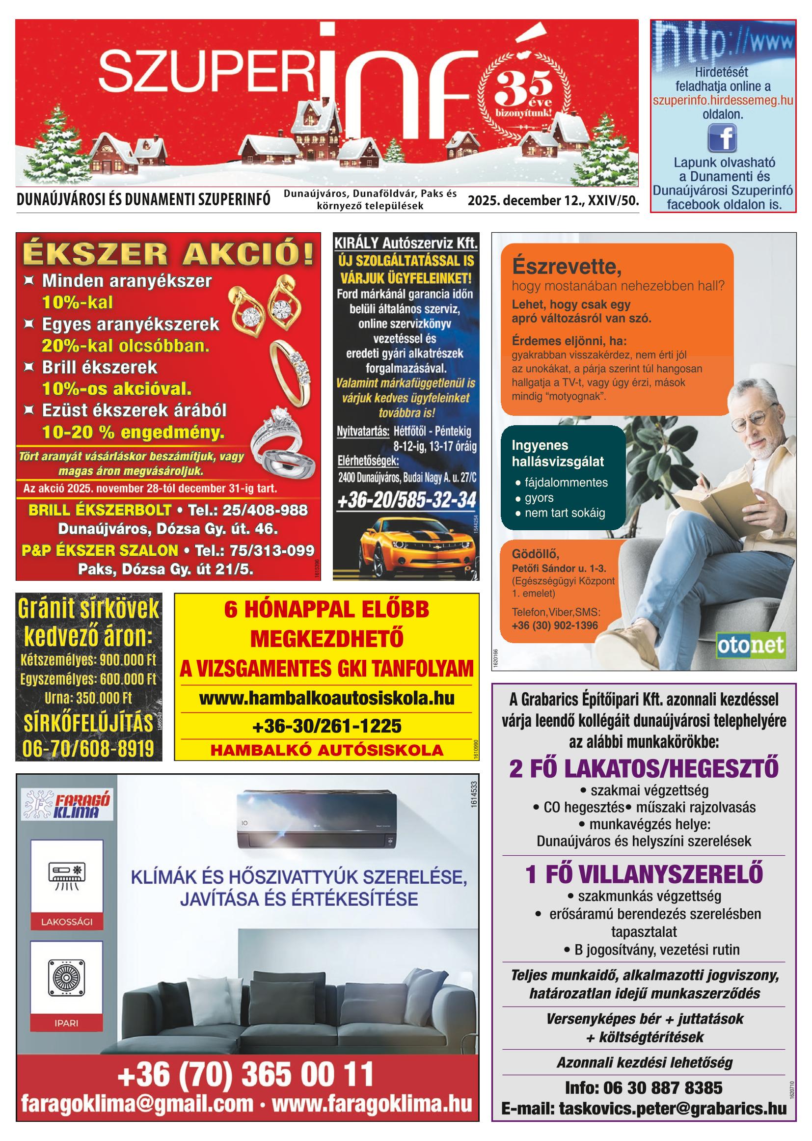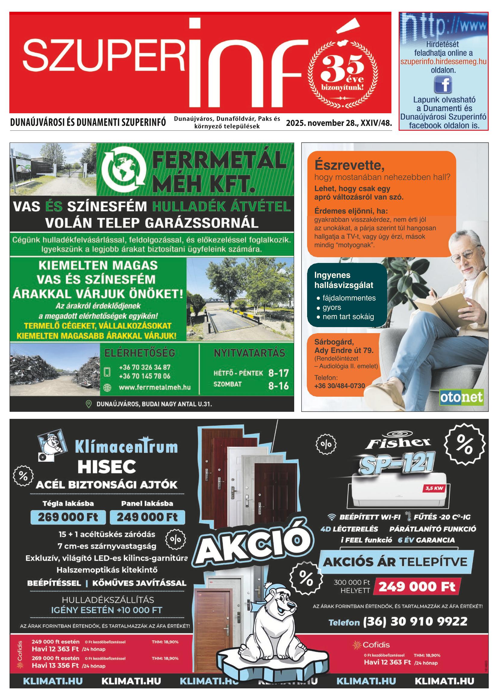 A SZUPERINFÓ online változatát már a hagyományos lap terjesztése előtt olvashatja telefonján vagy számítógépén!