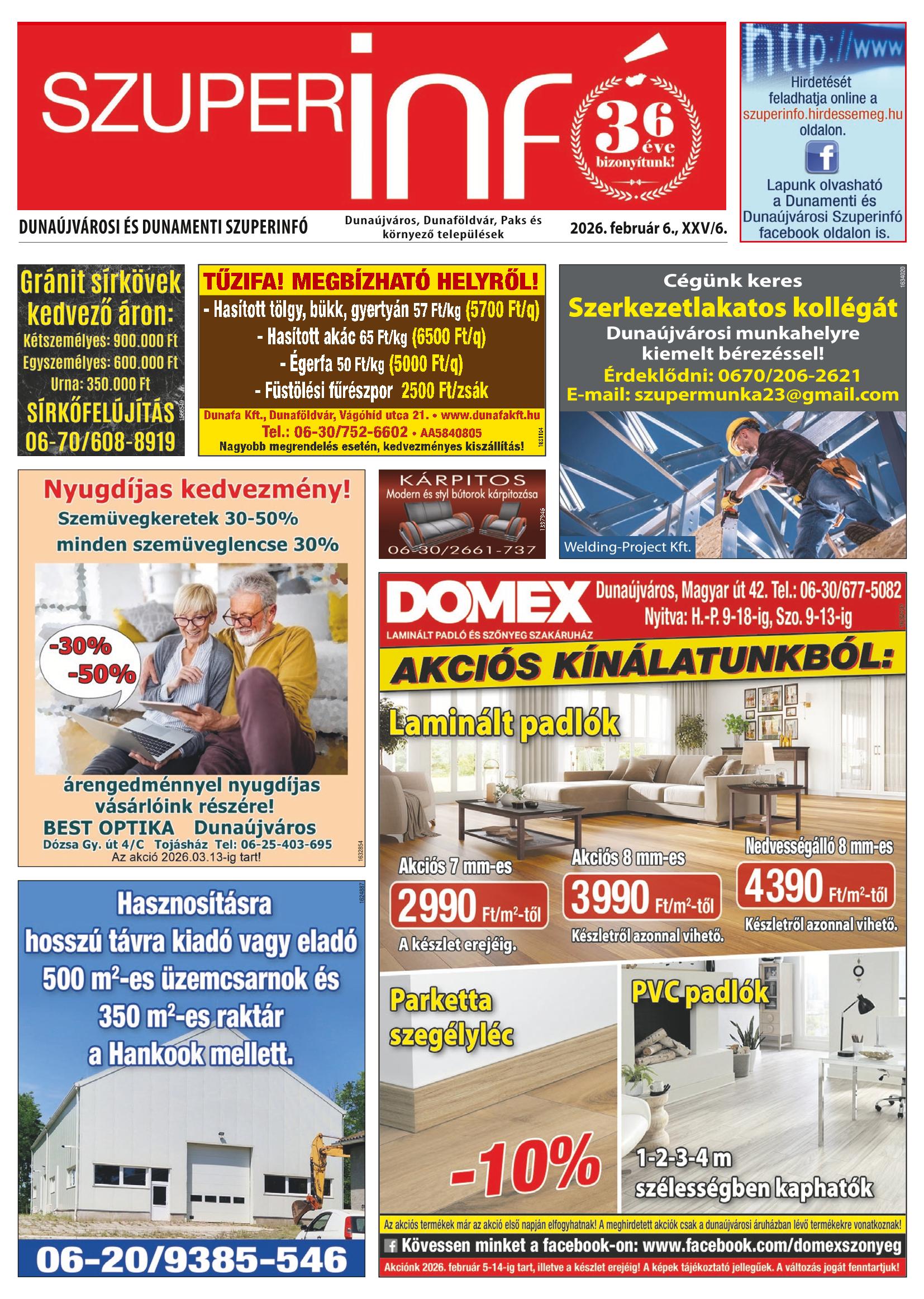 Iratkozzon fel, és megküldjük Önnek a FRISS SZUPERINFÓ újságot!