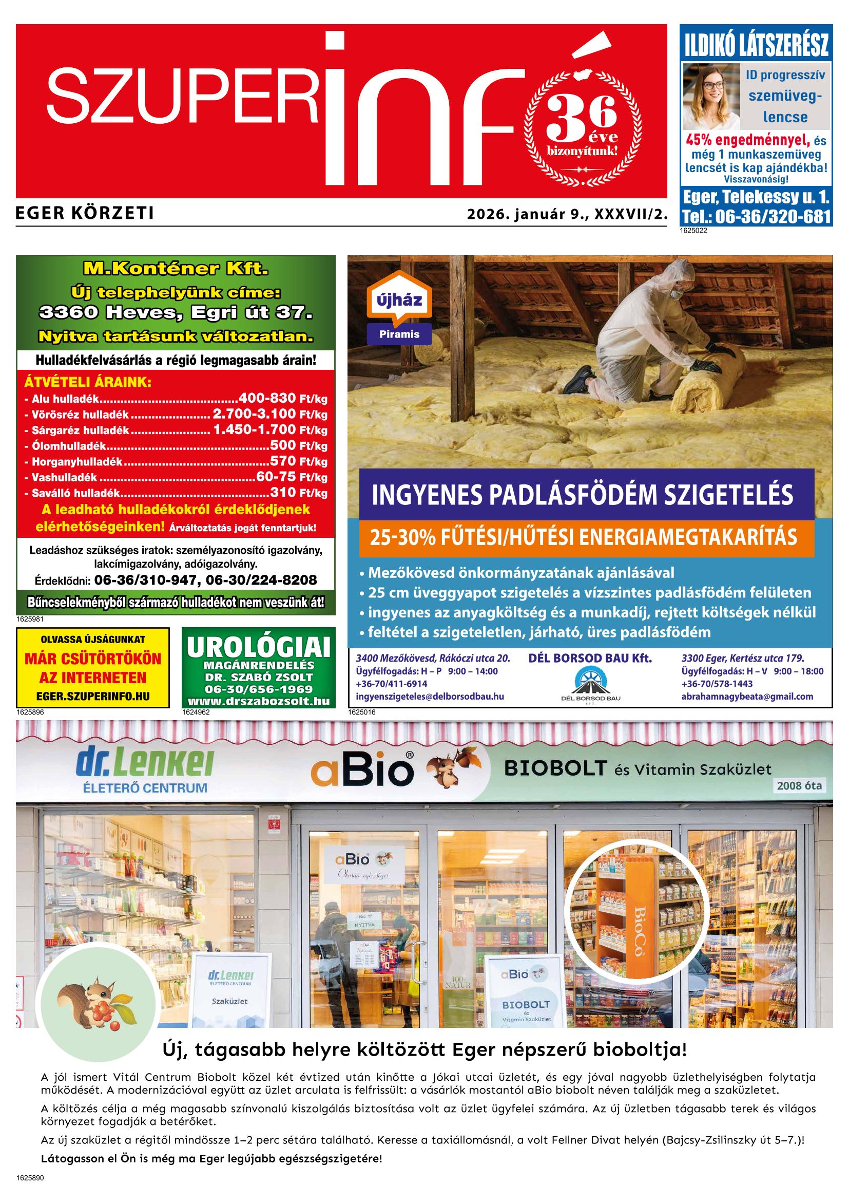 Iratkozzon fel, és megküldjük Önnek a FRISS SZUPERINFÓ újságot!