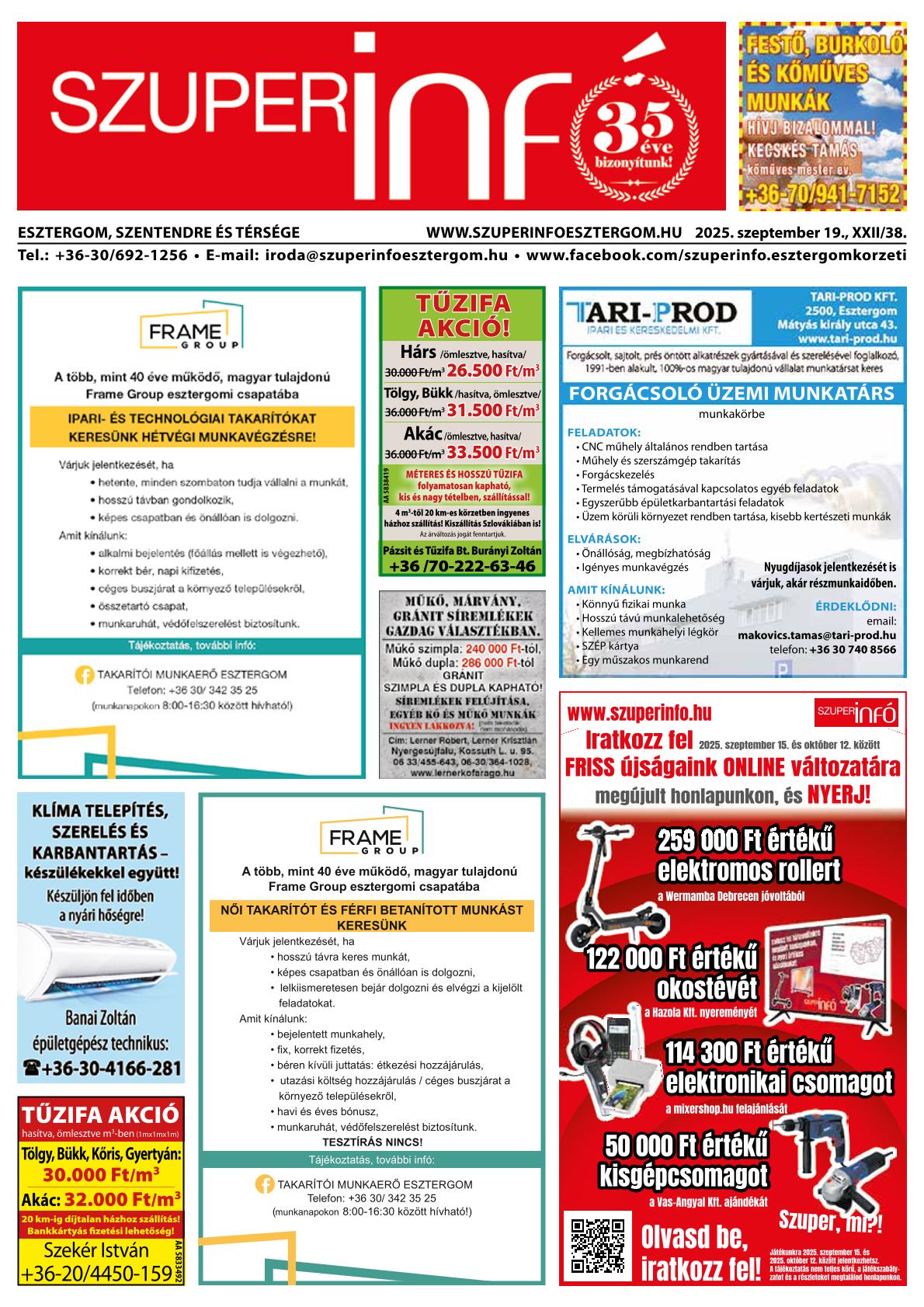 A SZUPERINFÓ online változatát már a hagyományos lap terjesztése előtt olvashatja telefonján vagy számítógépén!