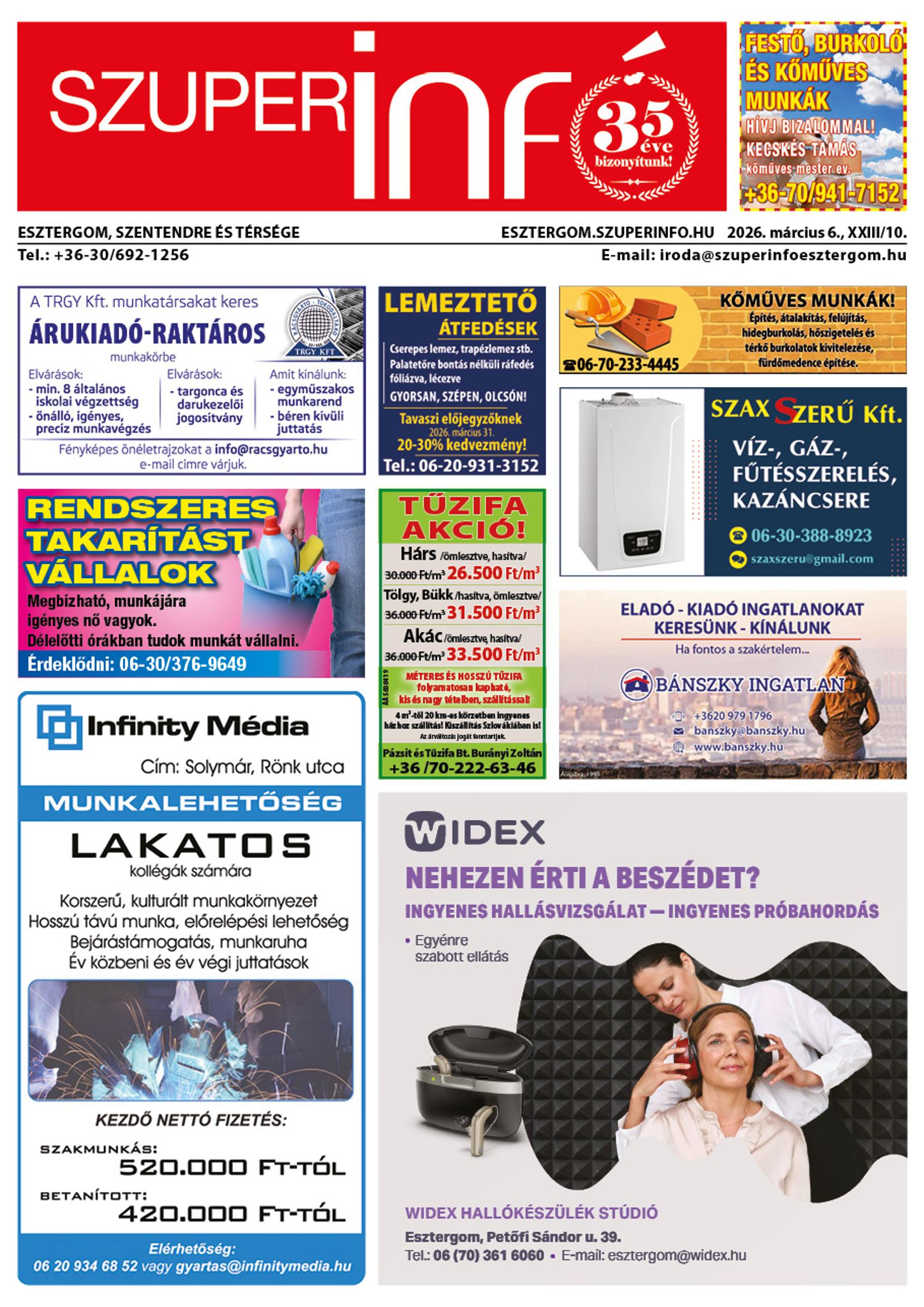 A SZUPERINFÓ online változatát már a hagyományos lap terjesztése előtt olvashatja telefonján vagy számítógépén!