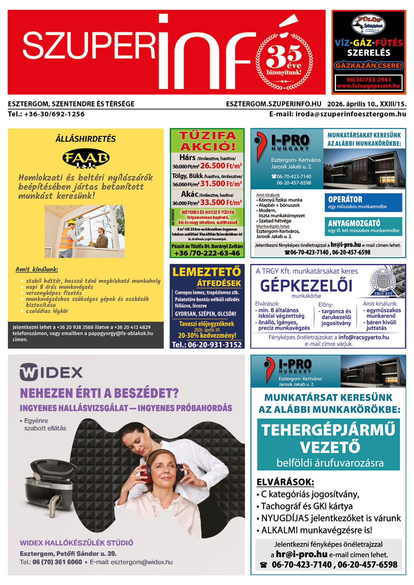 A SZUPERINFÓ online változatát már a hagyományos lap terjesztése előtt olvashatja telefonján vagy számítógépén!