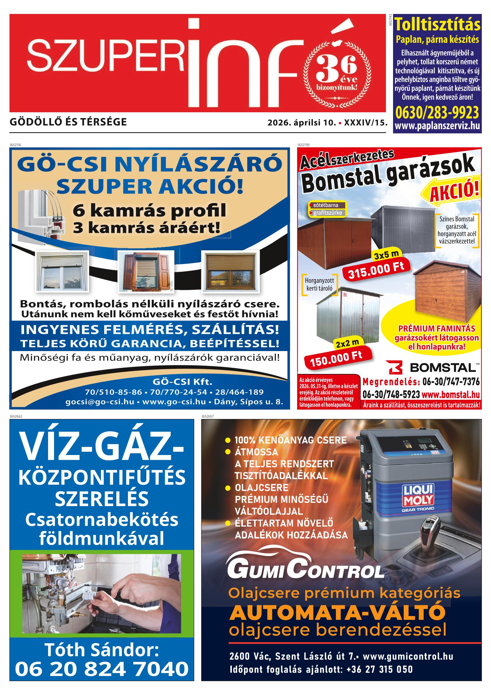 A SZUPERINFÓ online változatát már a hagyományos lap terjesztése előtt olvashatja telefonján vagy számítógépén!