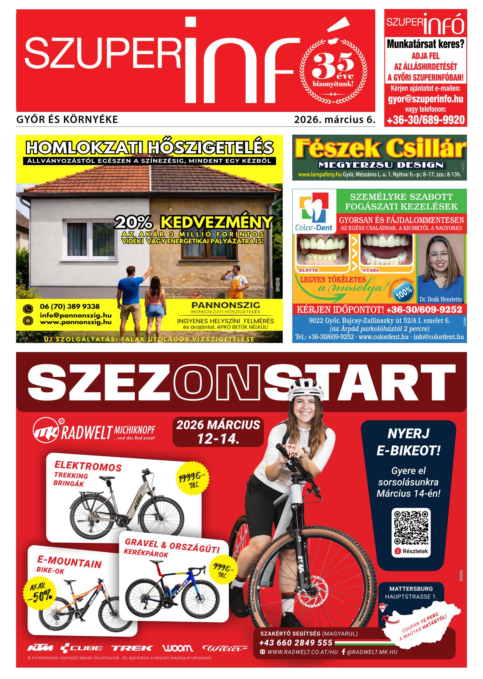 A SZUPERINFÓ online változatát már a hagyományos lap terjesztése előtt olvashatja telefonján vagy számítógépén!