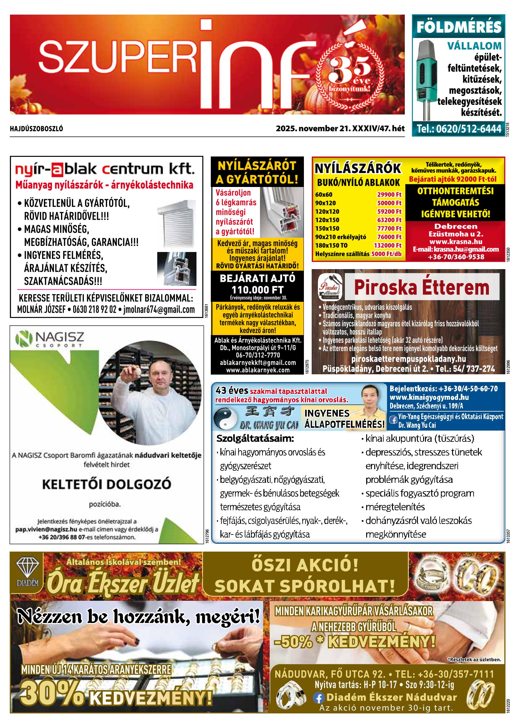 A SZUPERINFÓ online változatát már a hagyományos lap terjesztése előtt olvashatja telefonján vagy számítógépén!