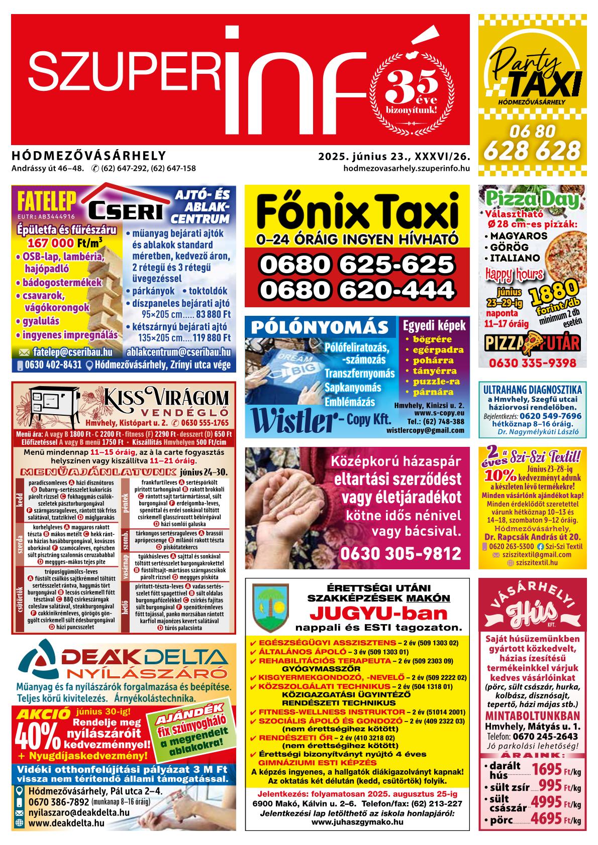 A SZUPERINFÓ online változatát már a hagyományos lap terjesztése előtt olvashatja telefonján vagy számítógépén!