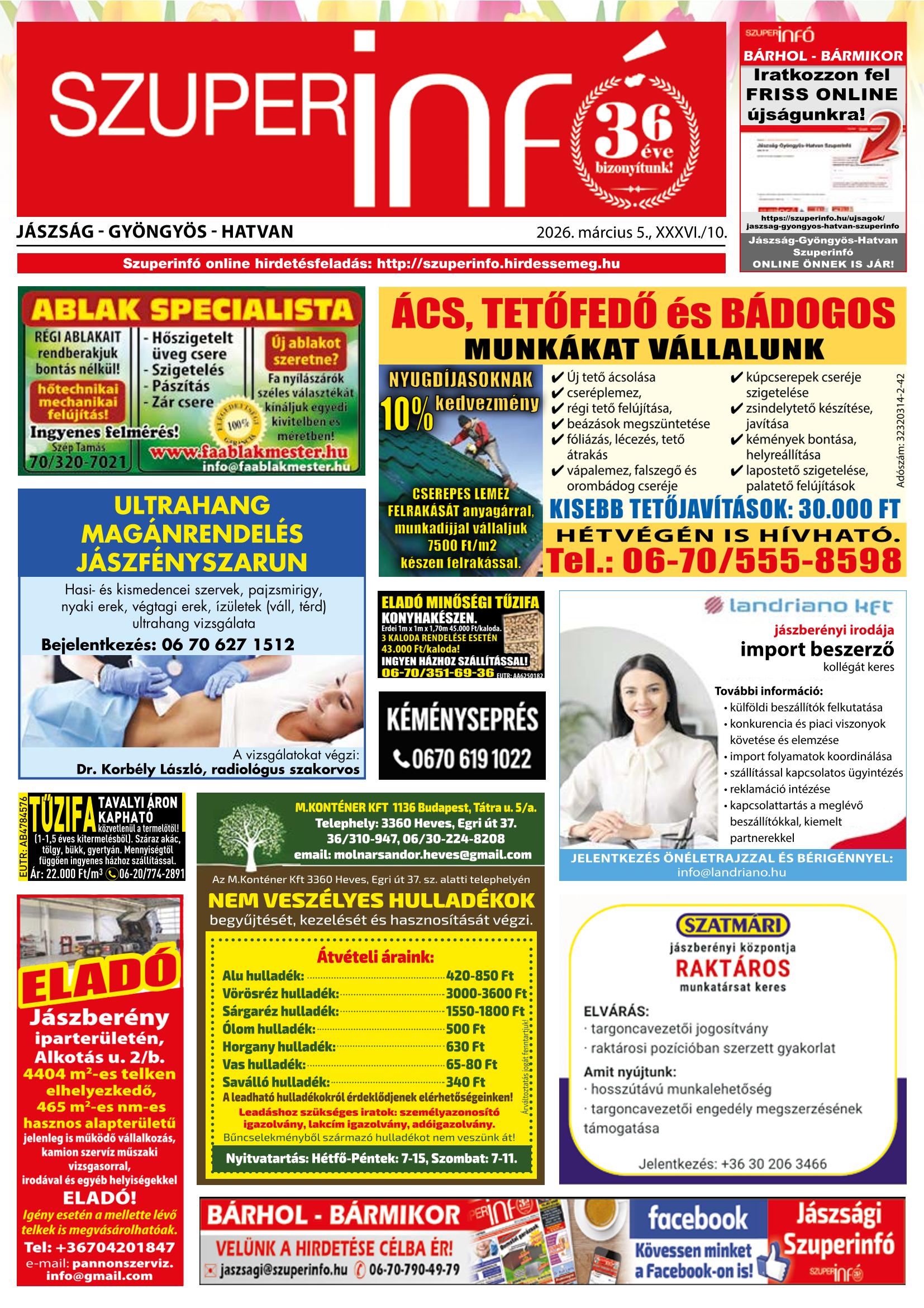 A SZUPERINFÓ online változatát már a hagyományos lap terjesztése előtt olvashatja telefonján vagy számítógépén!