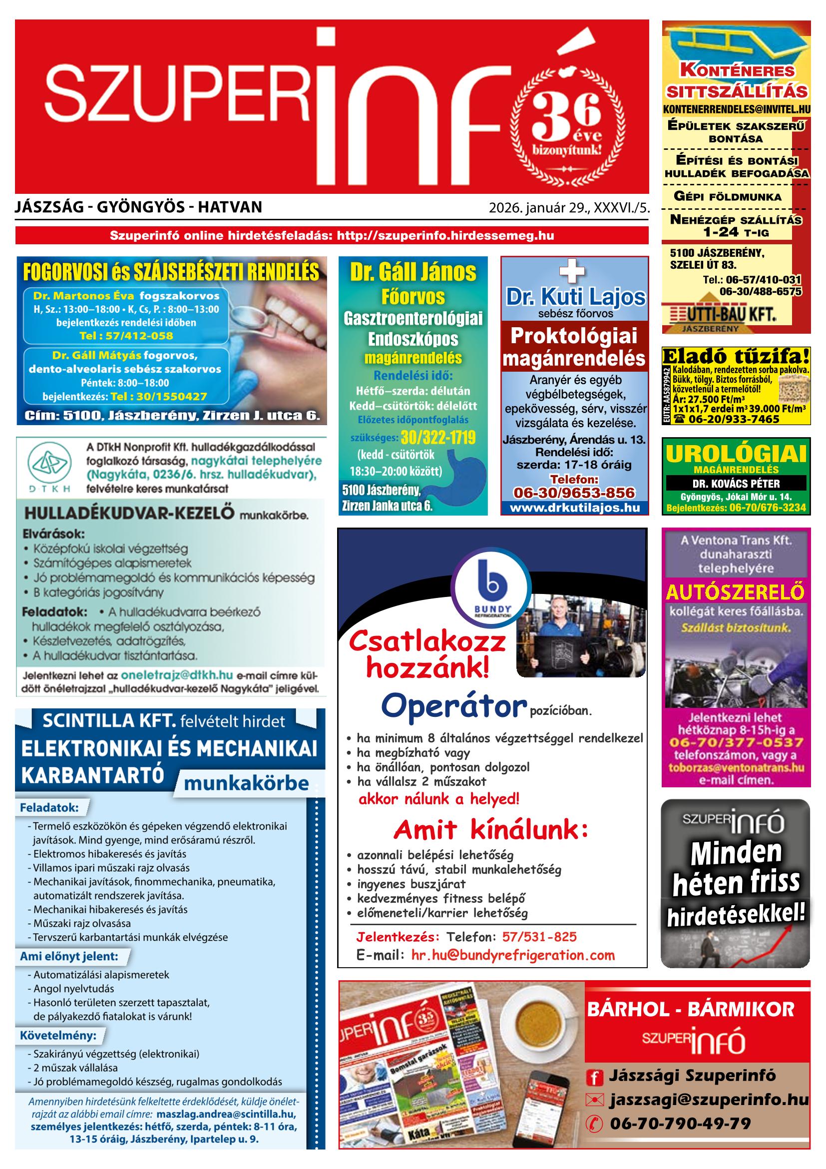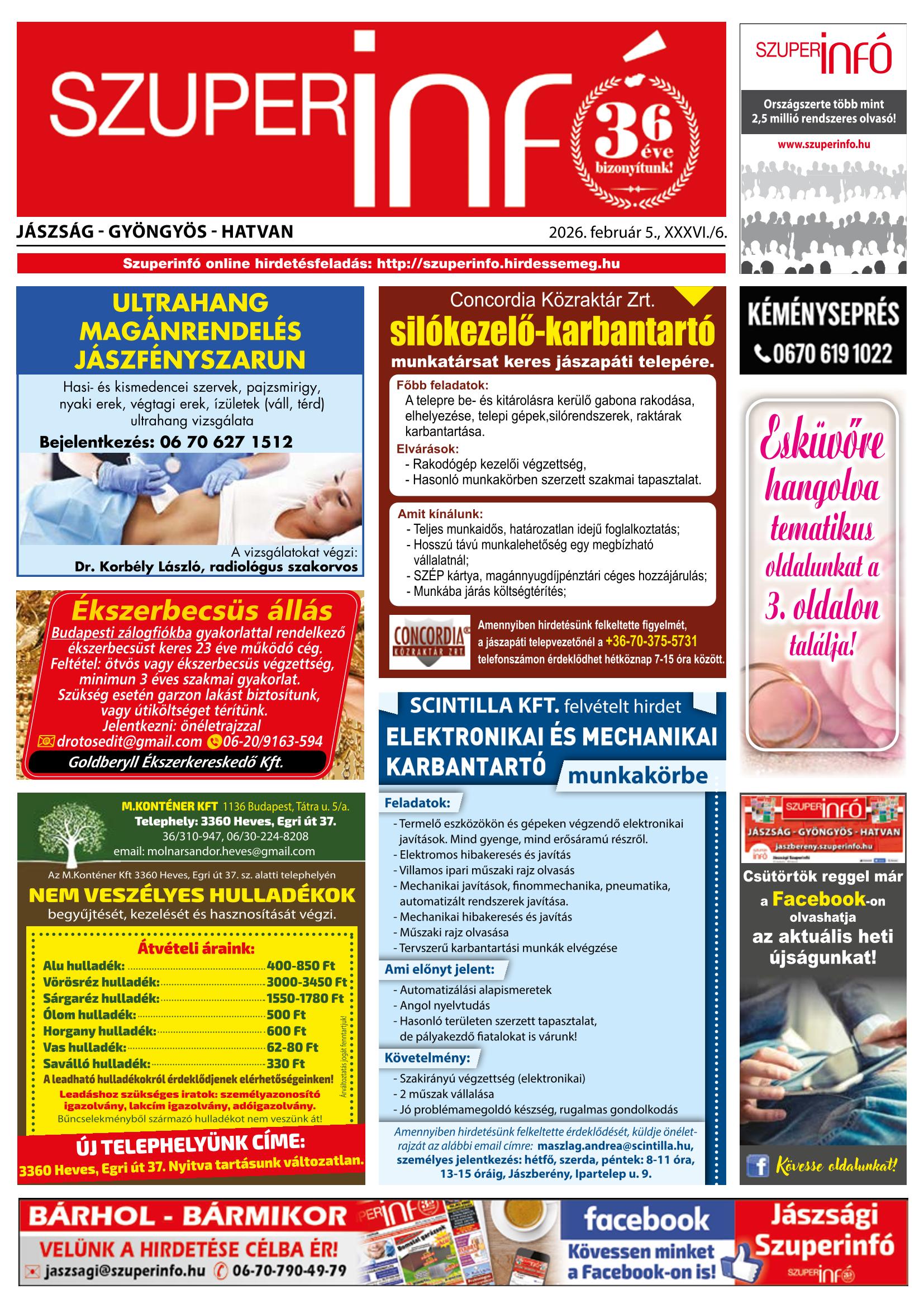 A SZUPERINFÓ online változatát már a hagyományos lap terjesztése előtt olvashatja telefonján vagy számítógépén!