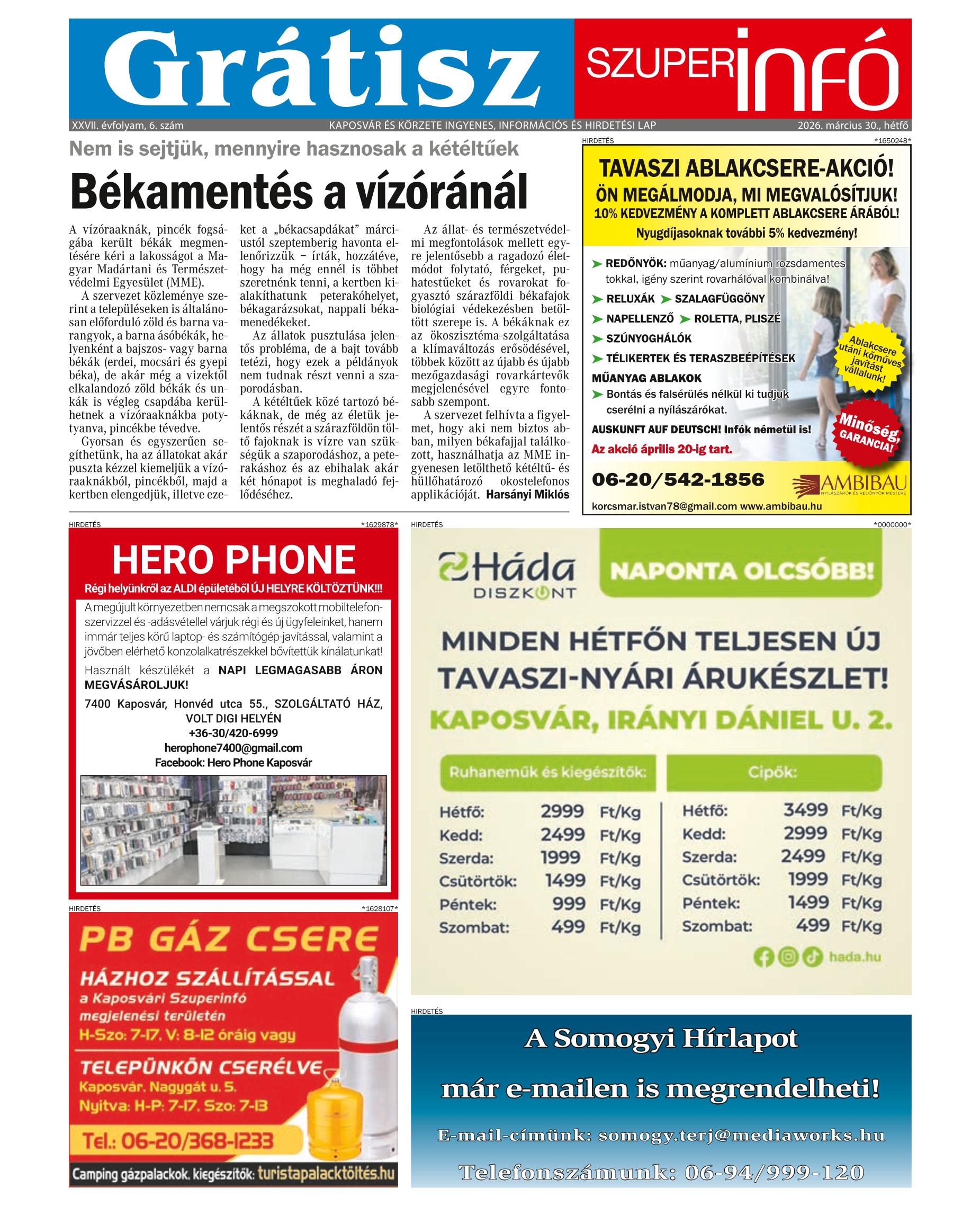 A SZUPERINFÓ online változatát már a hagyományos lap terjesztése előtt olvashatja telefonján vagy számítógépén!