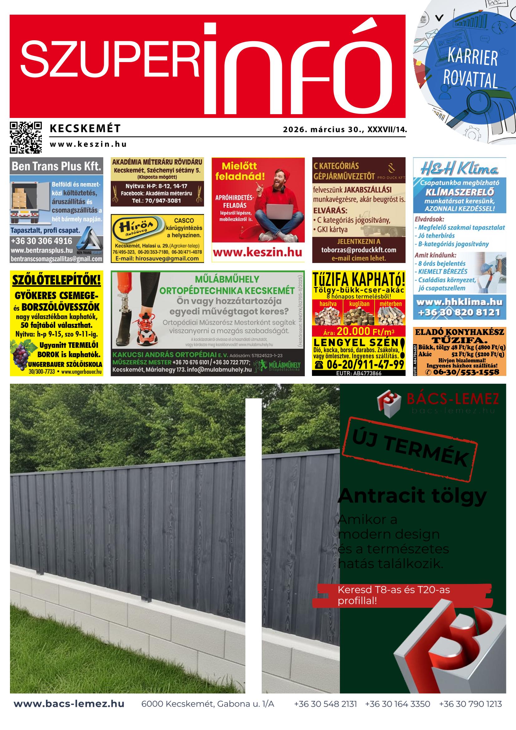 A SZUPERINFÓ online változatát már a hagyományos lap terjesztése előtt olvashatja telefonján vagy számítógépén!
