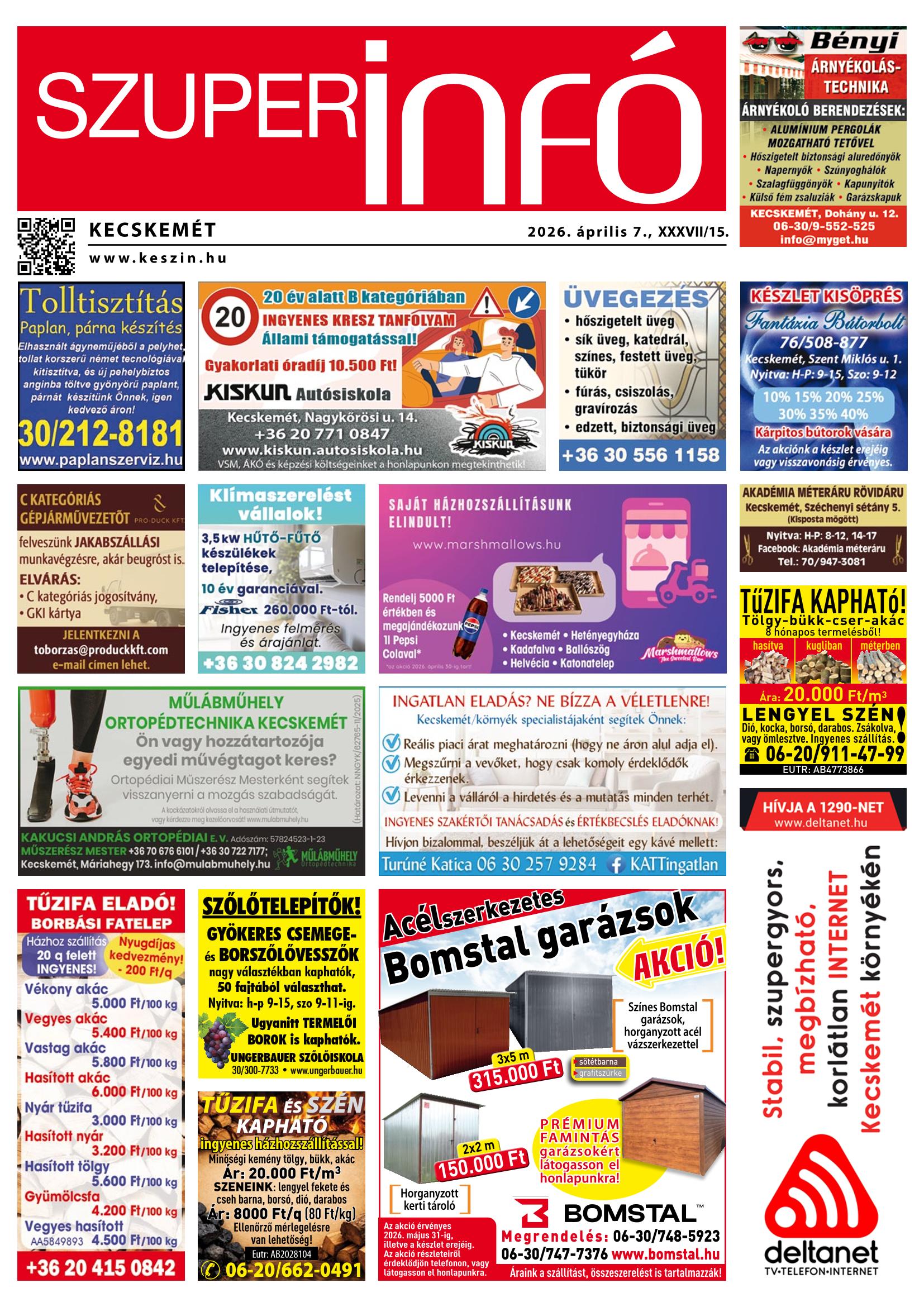 A SZUPERINFÓ online változatát már a hagyományos lap terjesztése előtt olvashatja telefonján vagy számítógépén!